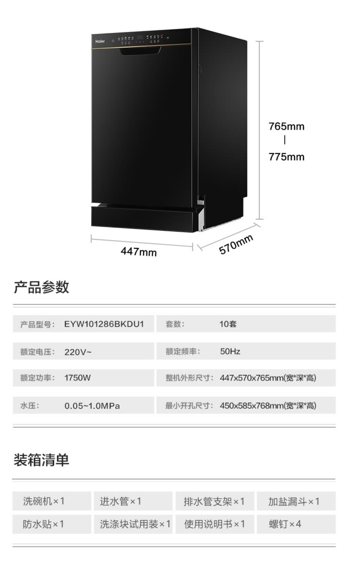 海尔(Haier)洗碗机 EYW101286BKDU1