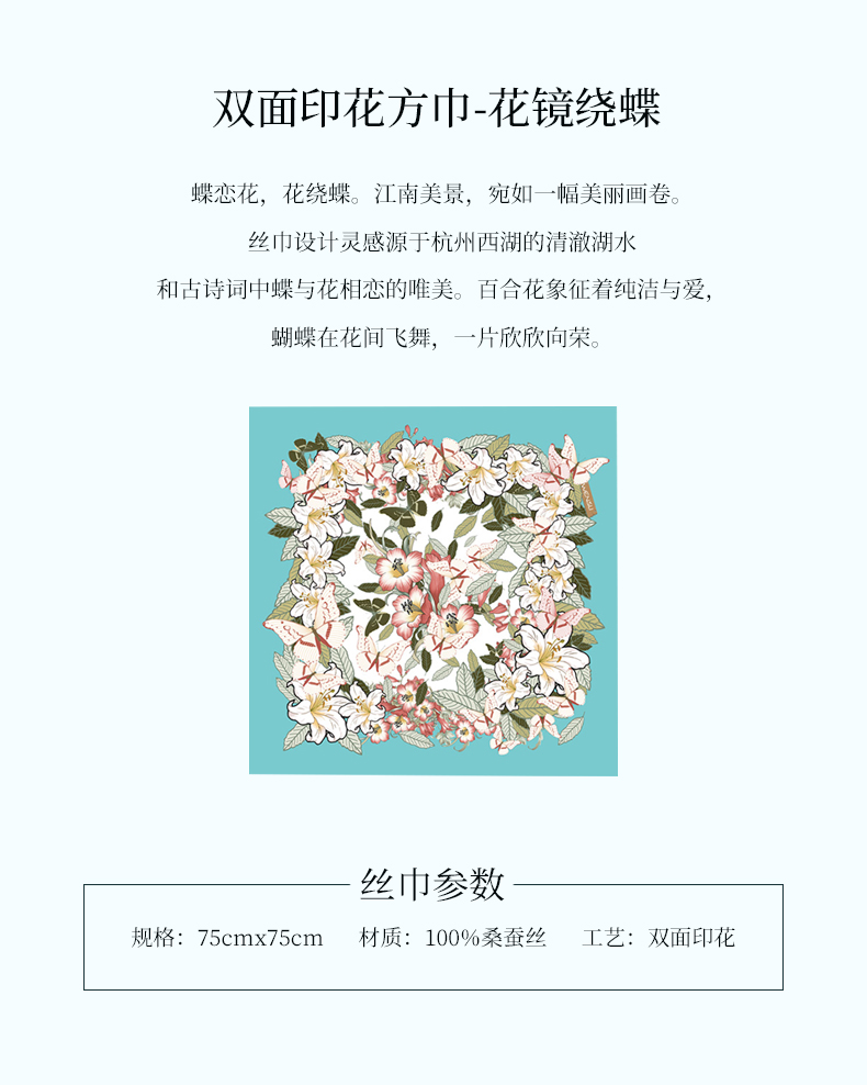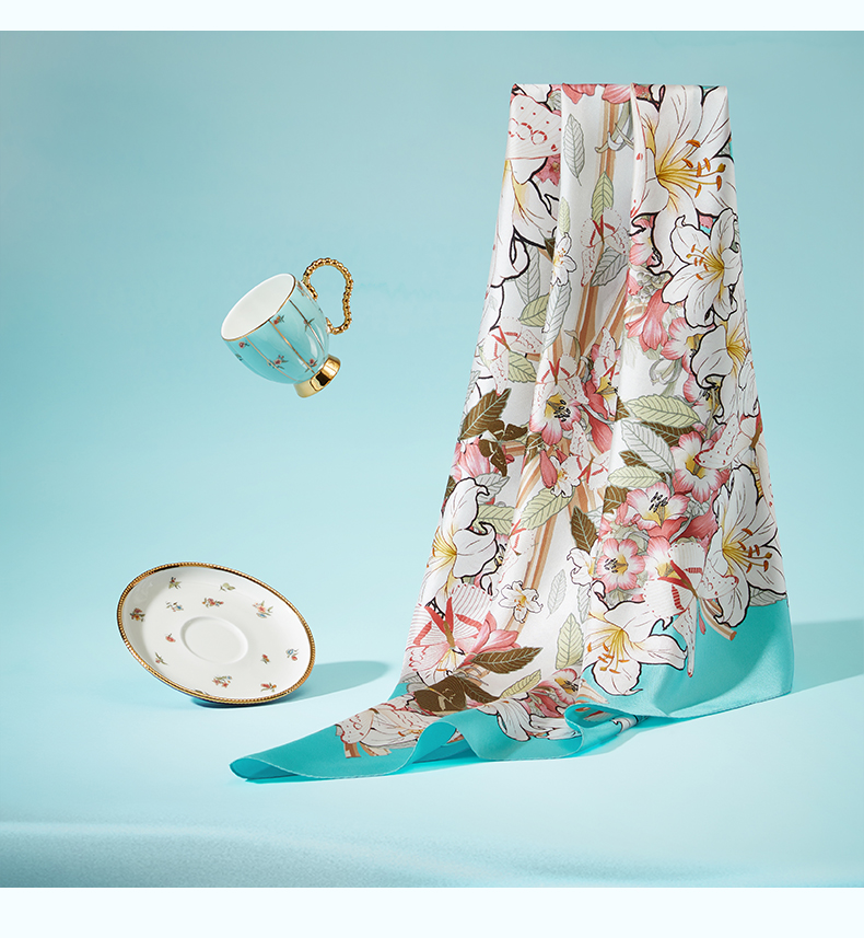 万事利“玉兰赋”63厘米双面印花真丝中方巾