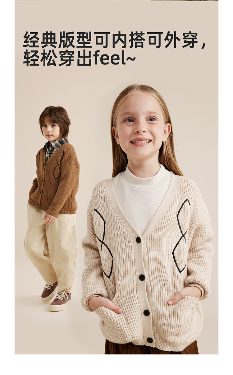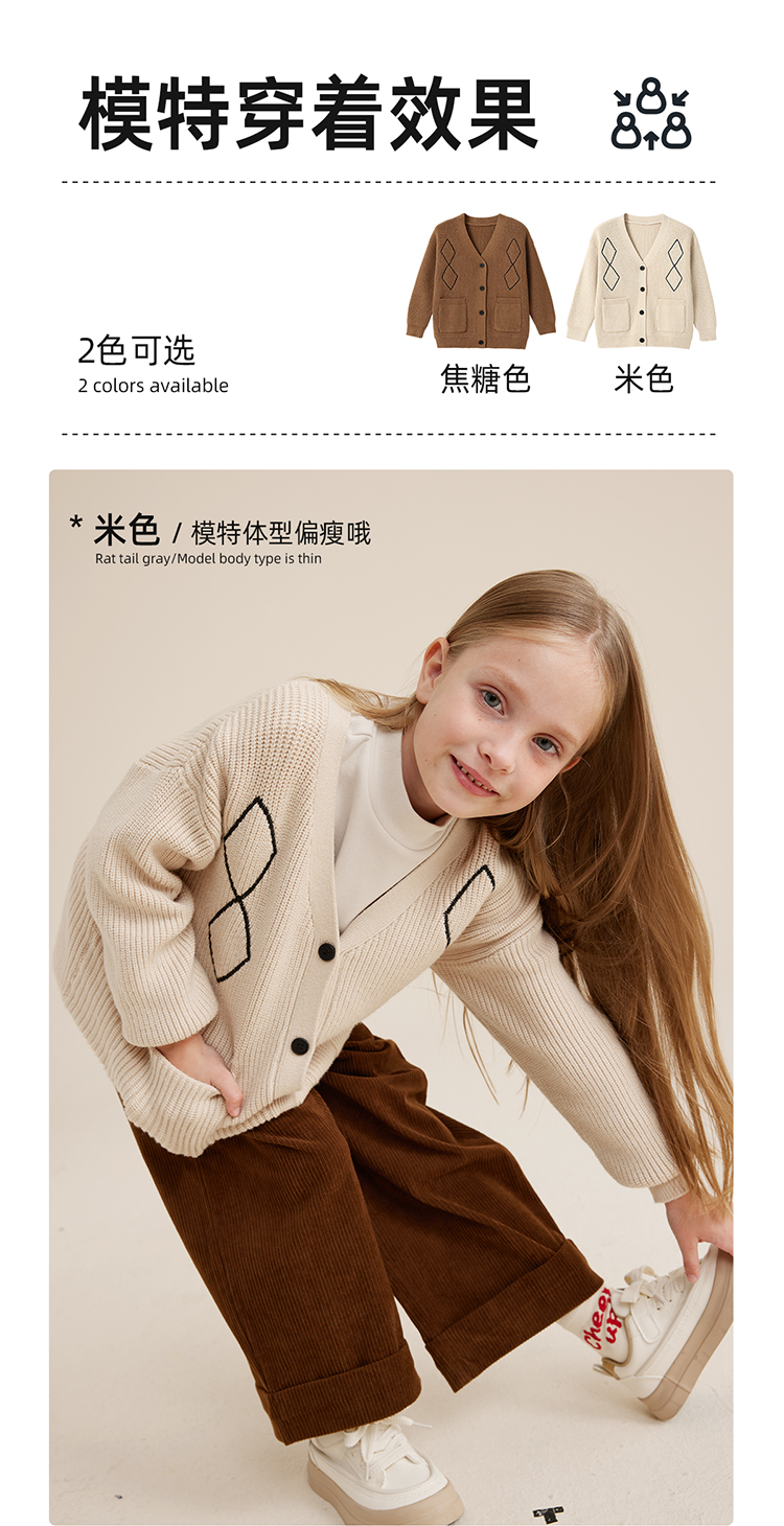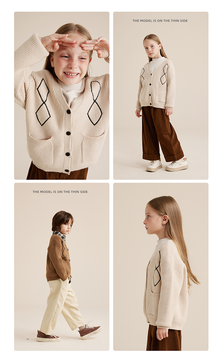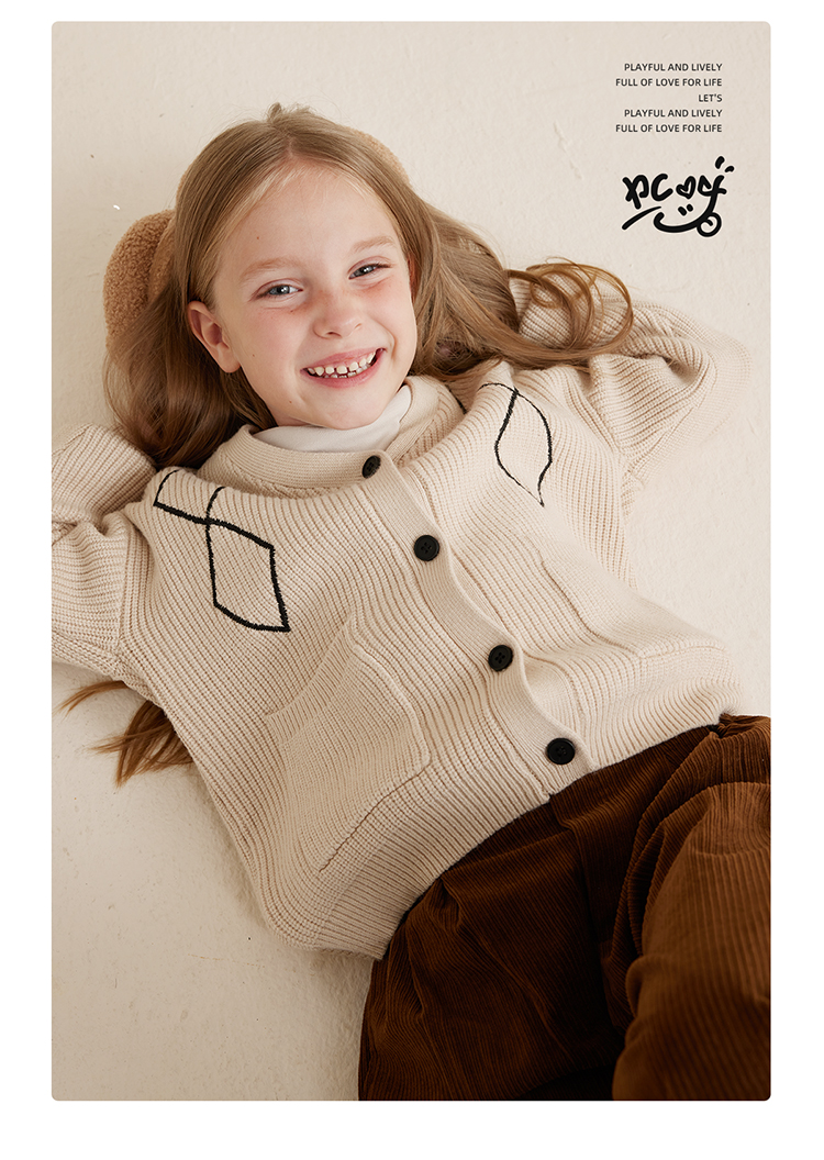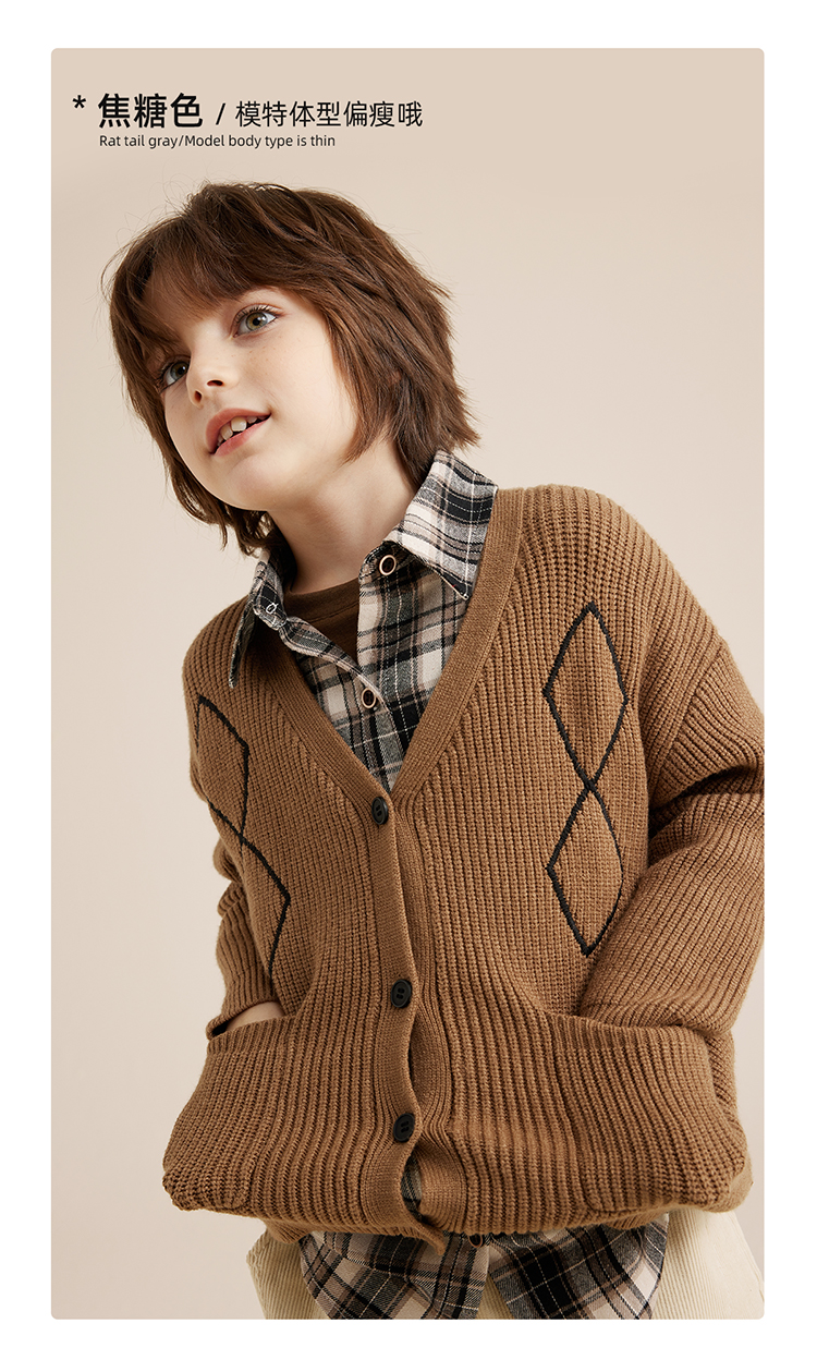 【高弹包芯纱】儿童百搭菱格提花毛衣开衫PQMY2310