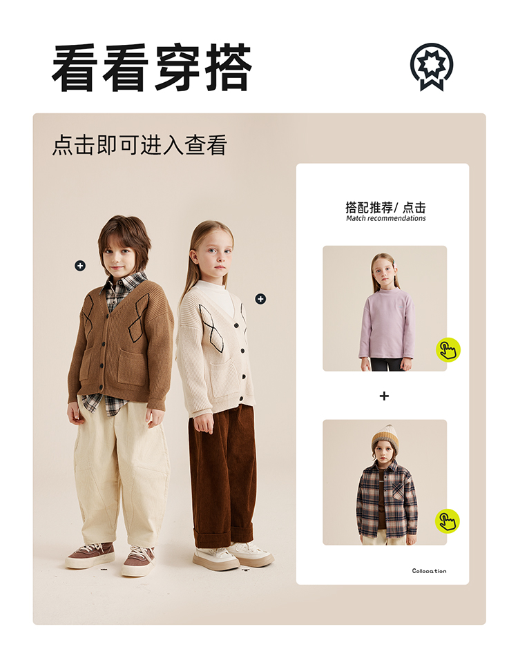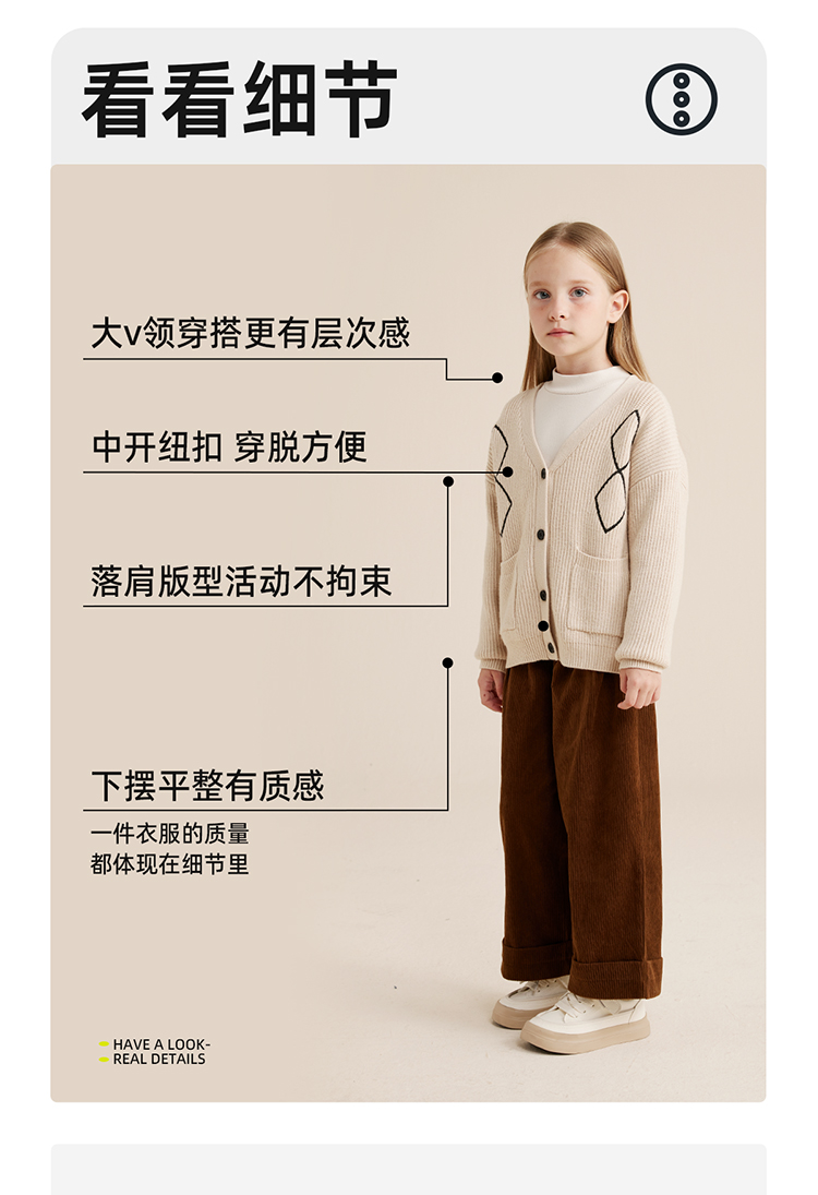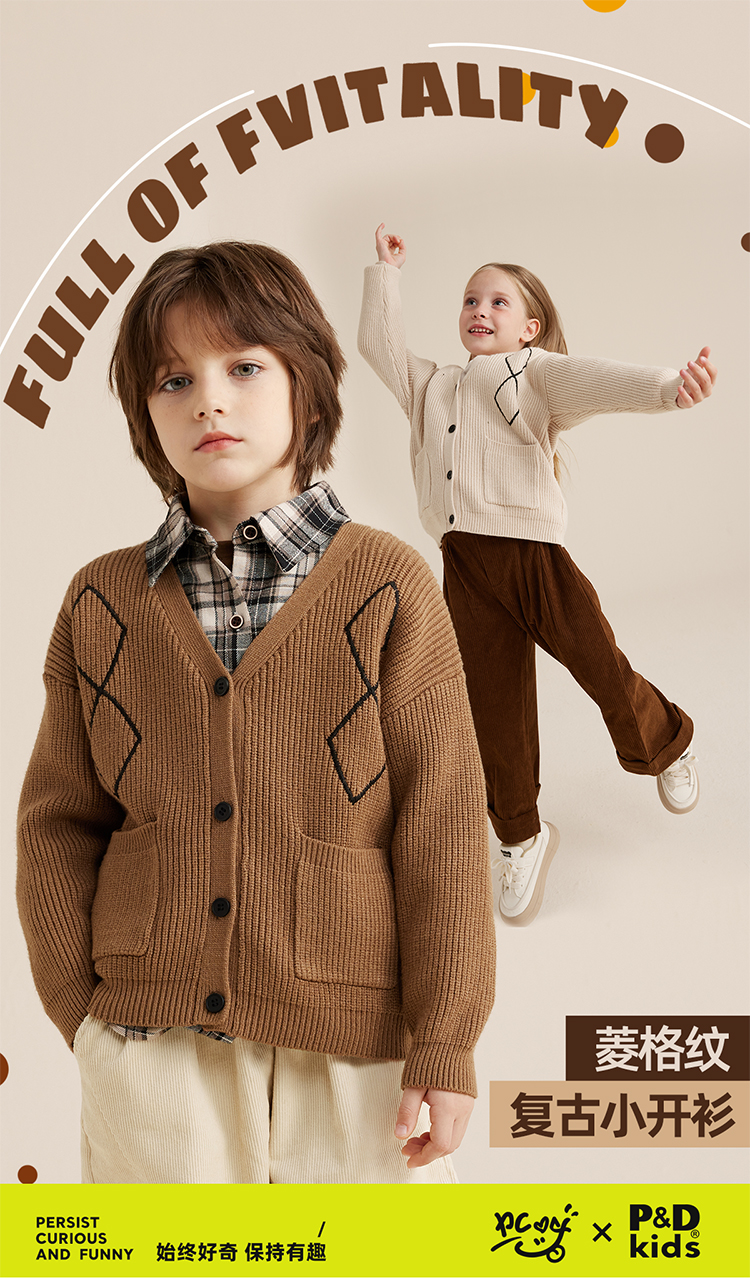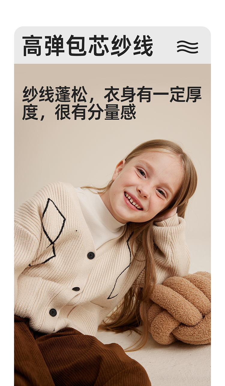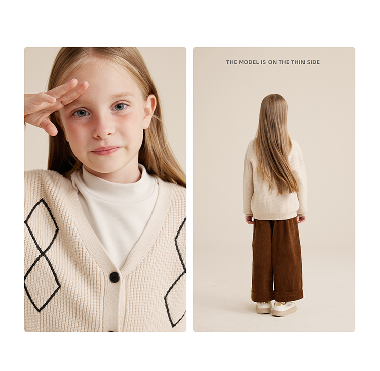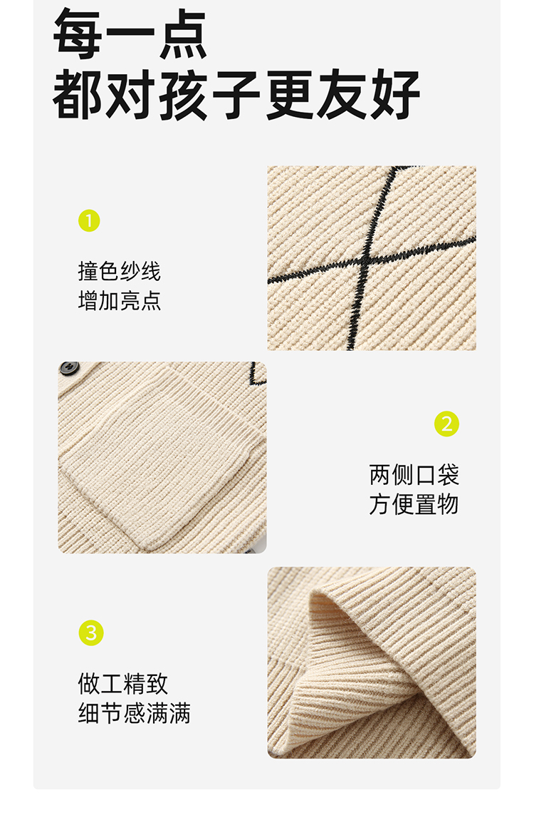 【高弹包芯纱】儿童百搭菱格提花毛衣开衫PQMY2310