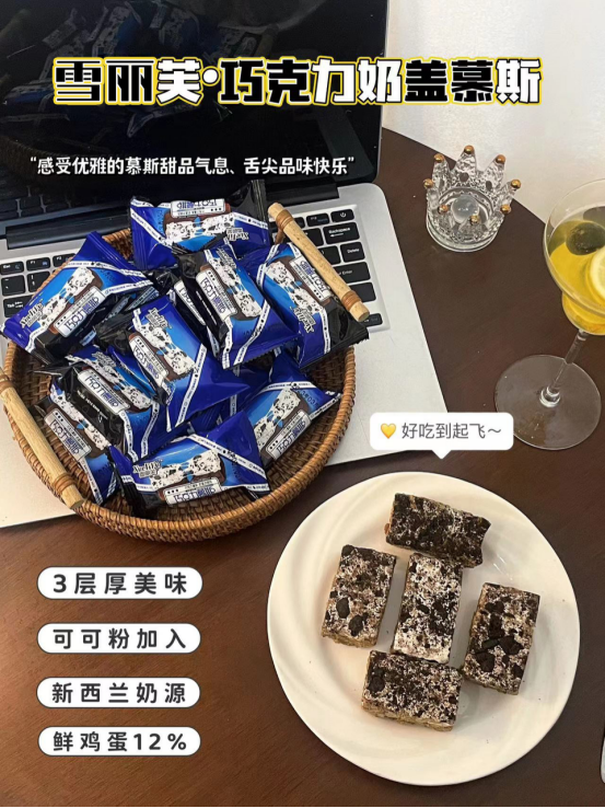 雪丽芙巧克力!!慕斯奶盖沙琪玛,不含色素,非油炸,非常符合当下人们对零食健康的要求,老人、小孩都能吃