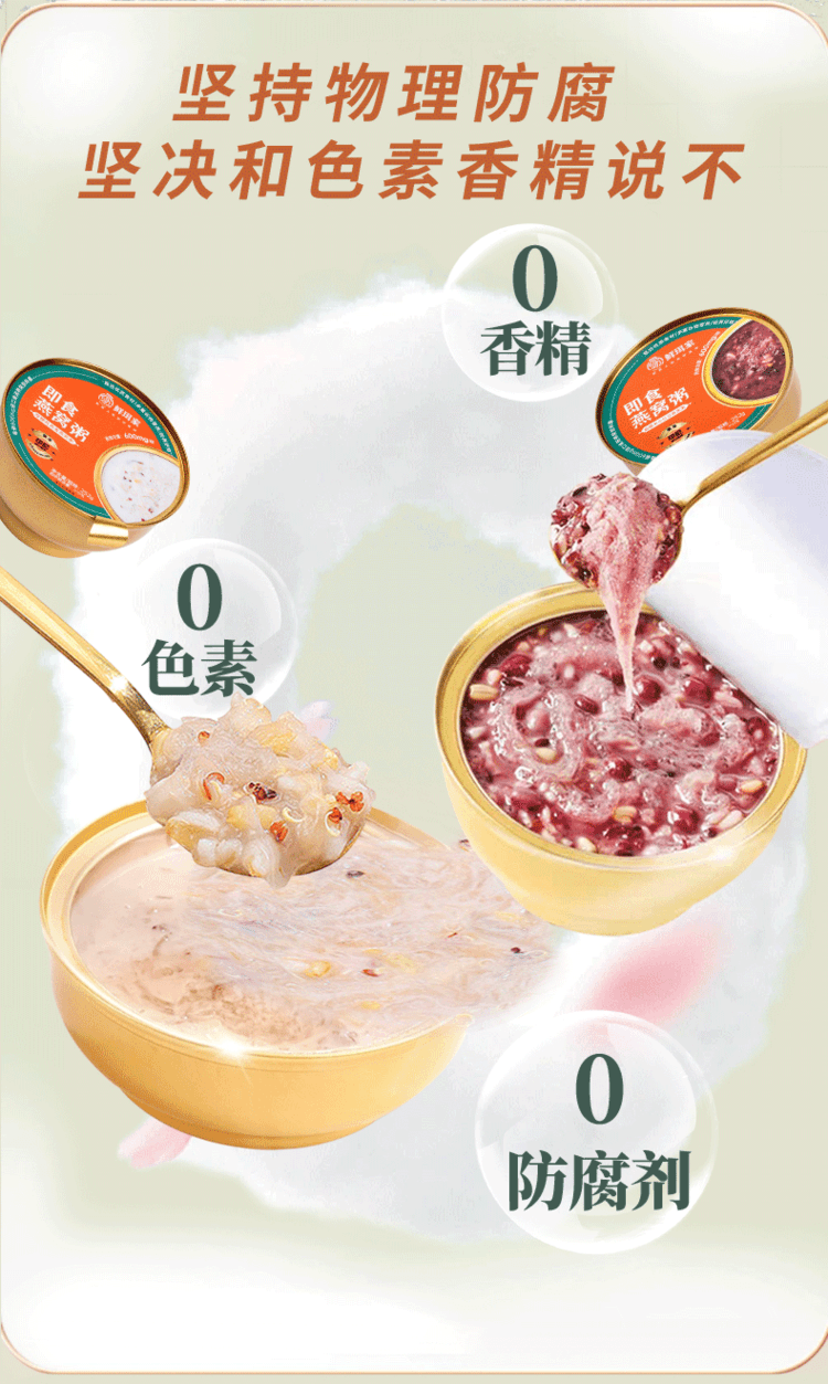 ✅不仅作为传统甜点的搭配也是为了打造一款营养全面的滋补粥✅我们关注大家口味口感的同时,更加注重健康安全问题。✅我们生产的每一碗,必须经过121°高温杀菌,采用智能控温,分级炖煮工艺,在最大程度锁住营养不流失,口感不变的情况下,包装产品的干净卫生。✅0防腐,0香精,0色素,仅靠制作工艺就能达到6个月的超长保质期