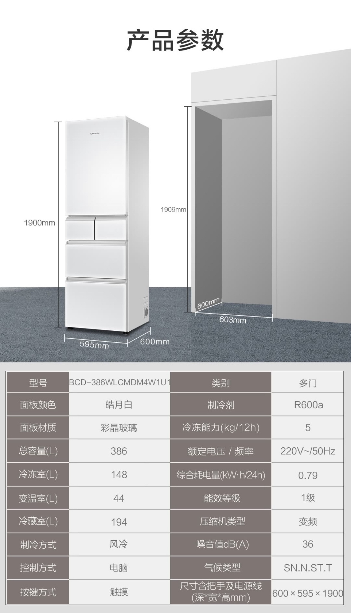 卡萨帝(Casarte)冰箱BCD-386WLCMDM4W1U1
