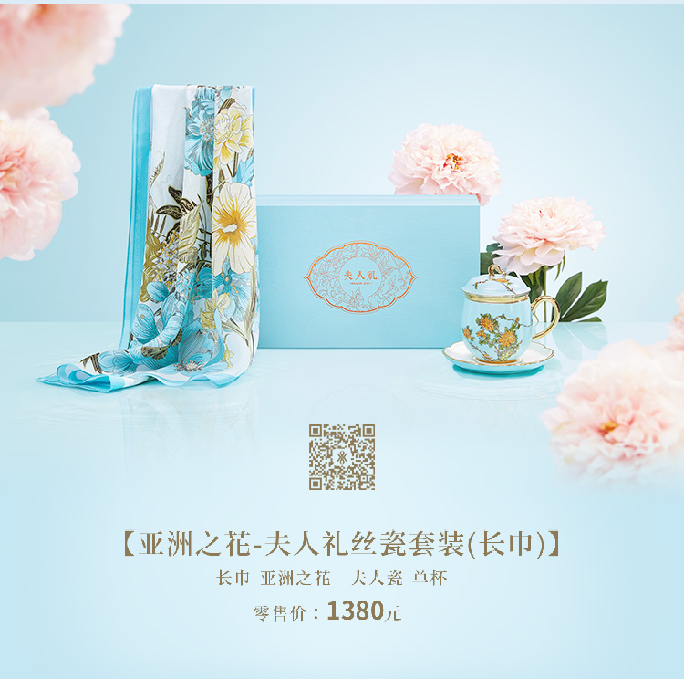 万事利“亚洲之花”夫人礼丝瓷套装礼盒(长巾)