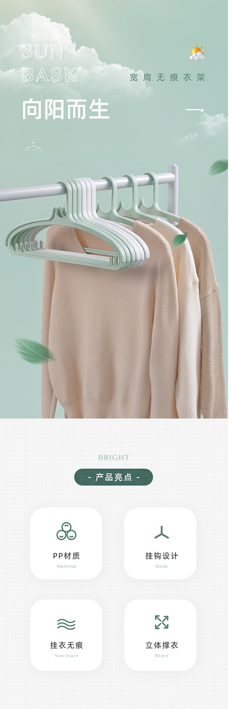 茶花晾衣架 宽肩无痕衣挂架衣服架 成人儿童衣服衣架小衣架防风
