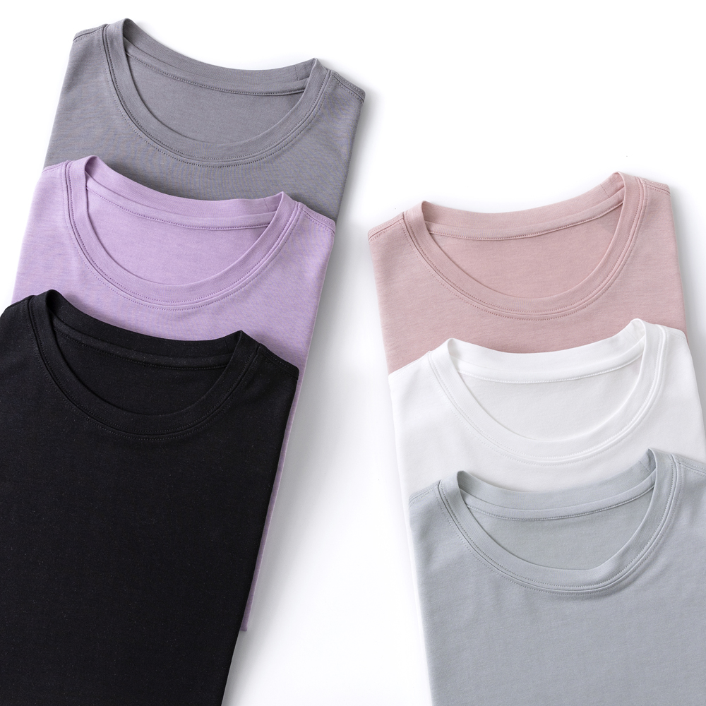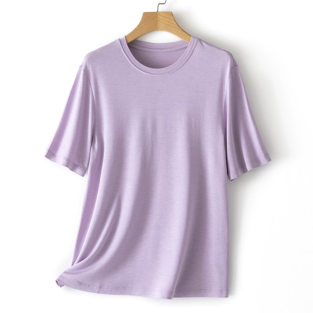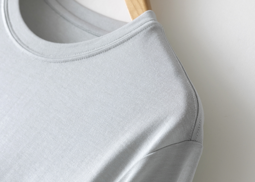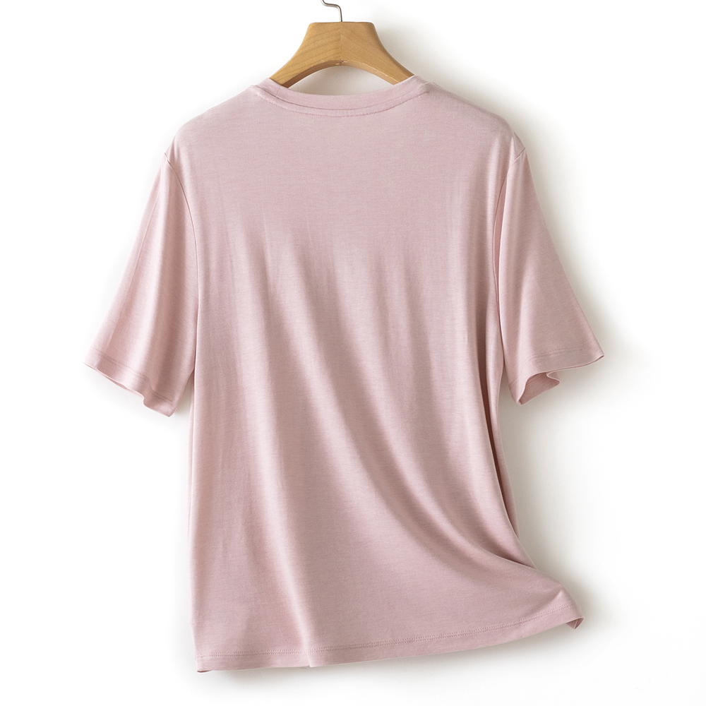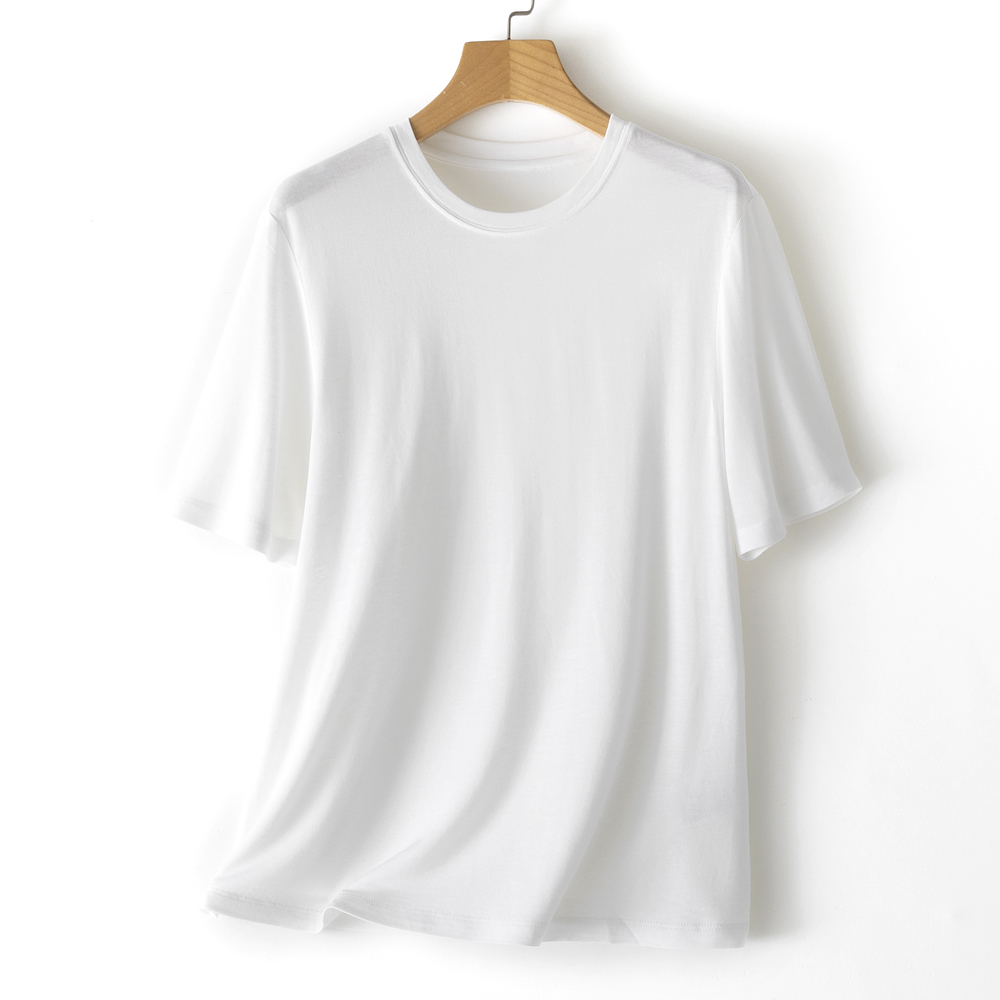 真丝醋酸纤维圆领T恤 水柔工艺,衣橱BI有它一席之地。 有时候就想要那么一件没有过多装饰的基础款T恤,这件真的不一样,面料摸上去软软糯糯 柔滑亲肤。