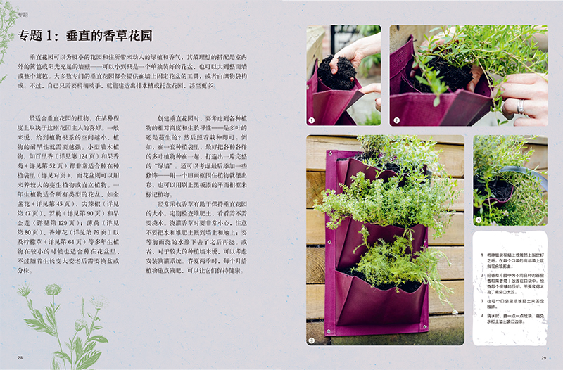 本书精选的常见的香草包括:柠檬草、山葵、茴香、月桂、英国薰衣草、罗勒、紫苏、胡椒、鼠尾草、迷迭香、百里香......既有家庭种植建议,也有打造香草花园的妙招,既能满足多种植物竞相绽放的造景,也能规划一年四季不同品种交替开放的盛景,总有一款适合你的窗台或花园,一起来打造心仪的香草花园吧!