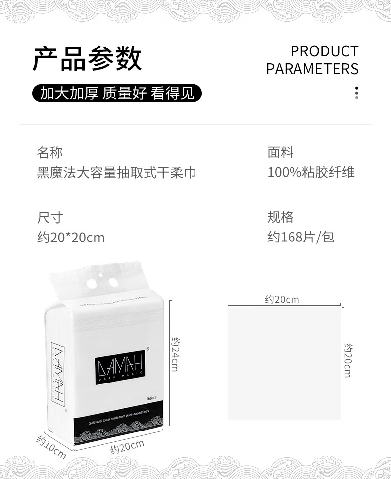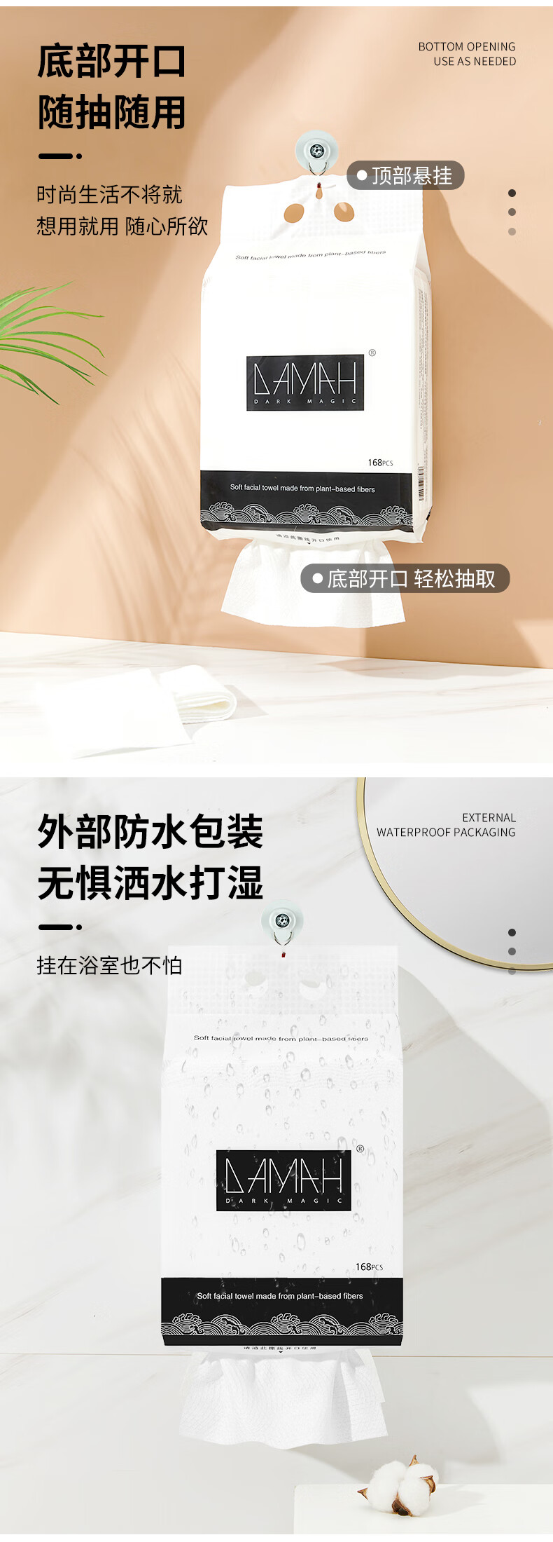 【一般贸易】DAMAH韩国黑魔法一次性洗脸巾悬挂式大容量(约168片)