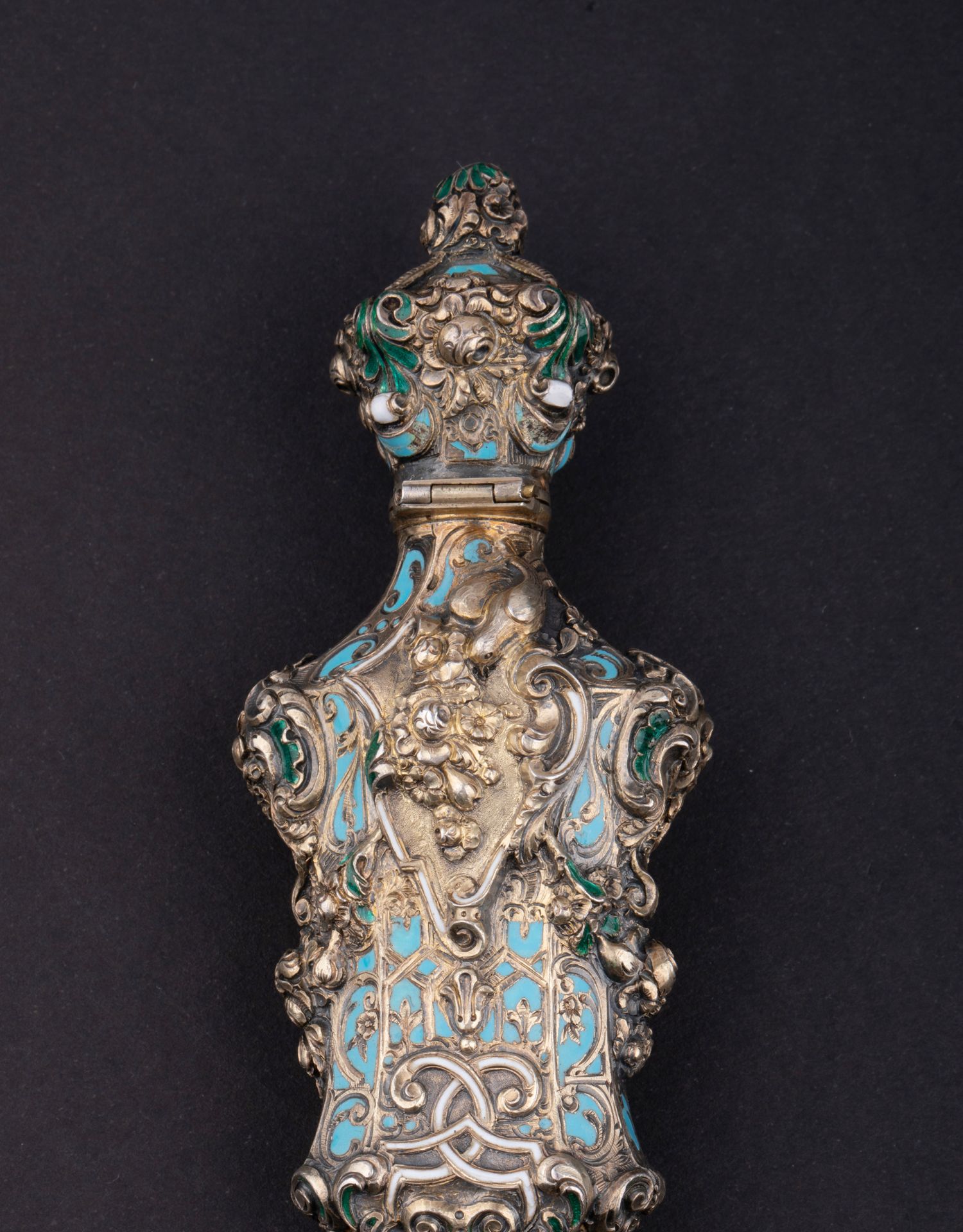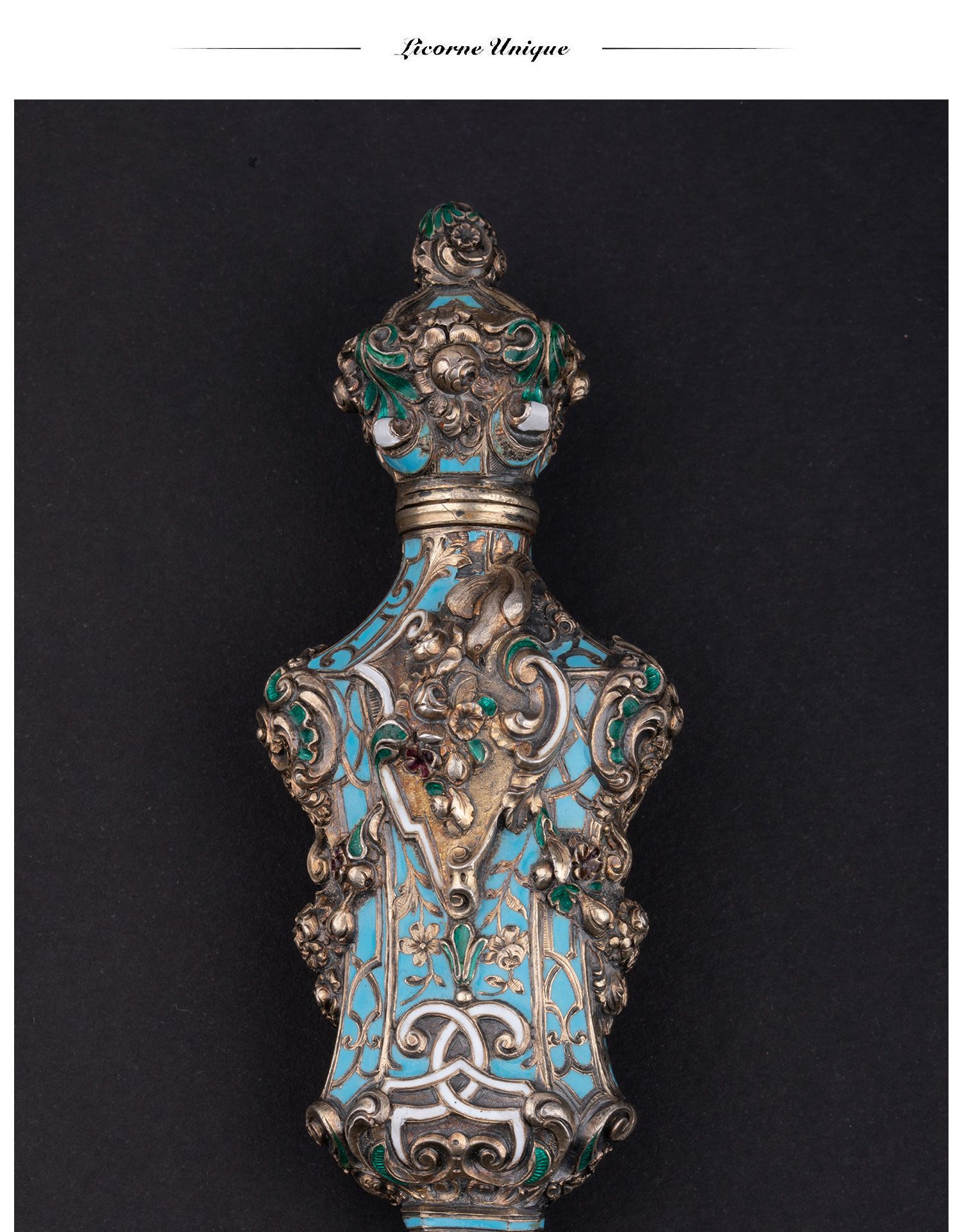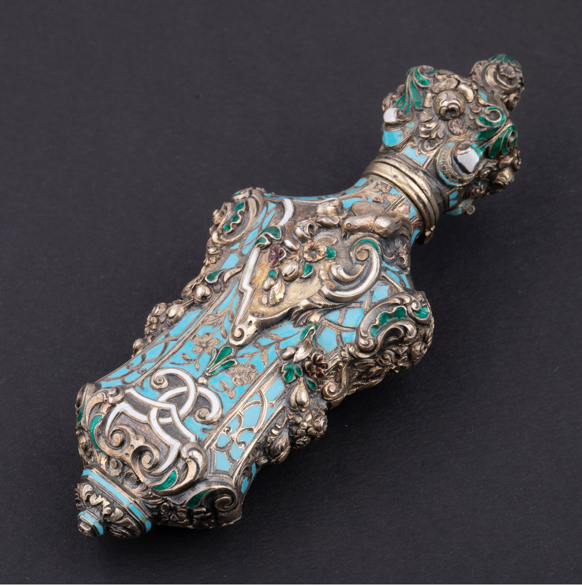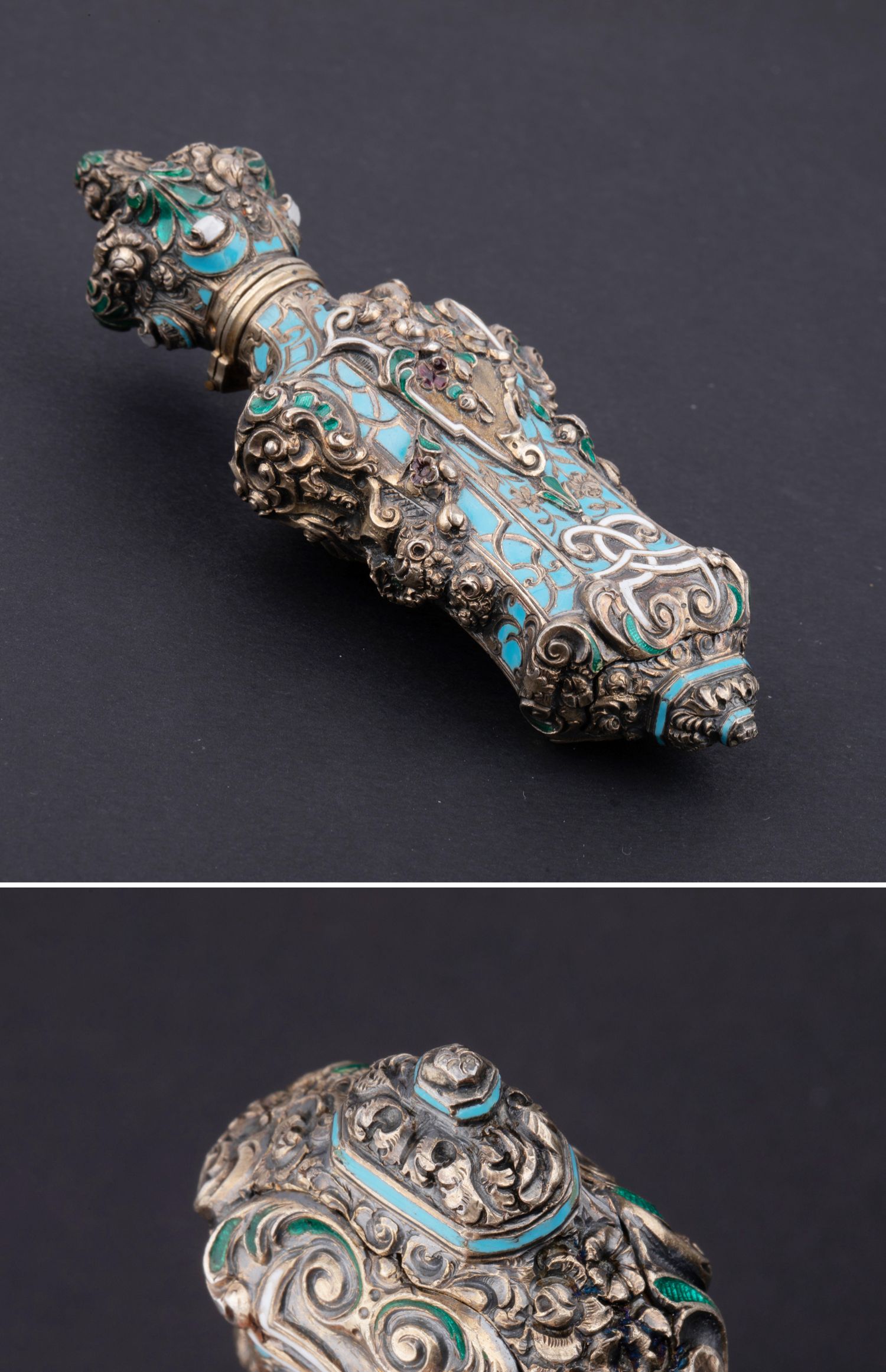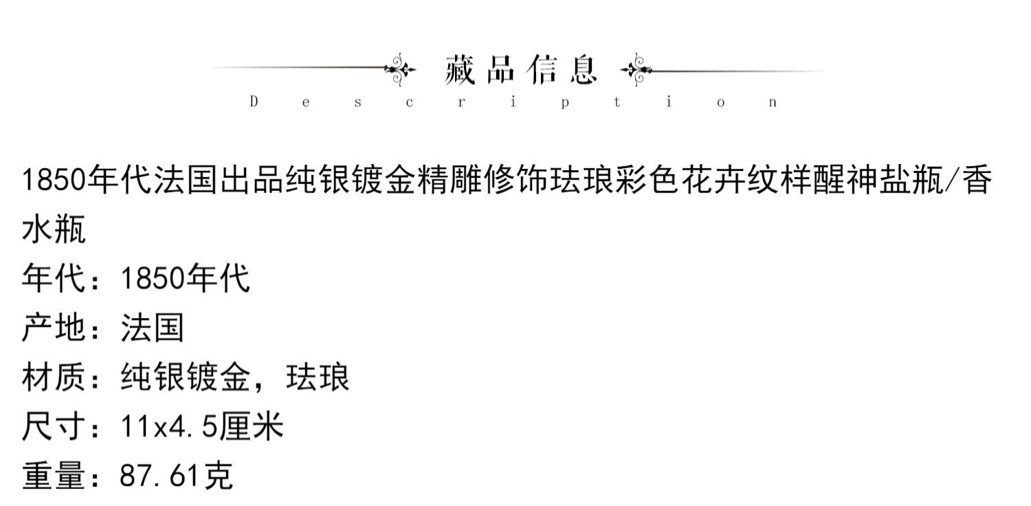 独角鹿西洋古董纯银镀金精雕修饰珐琅彩色花卉纹样醒神盐瓶香水瓶