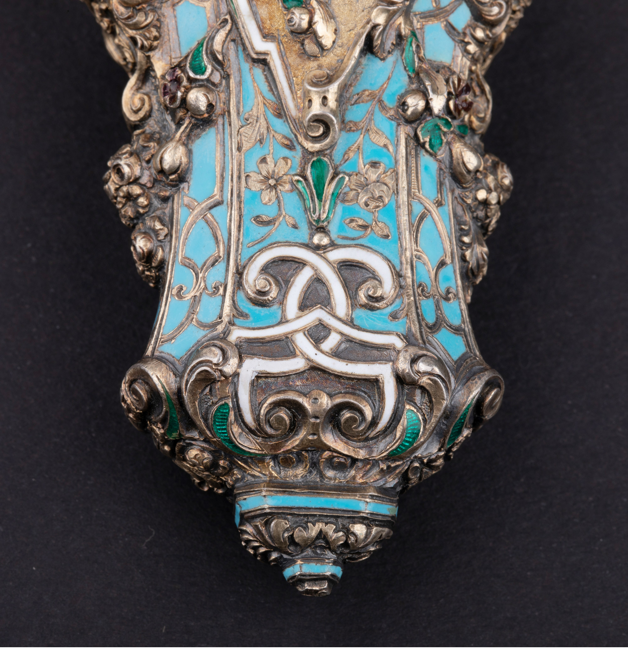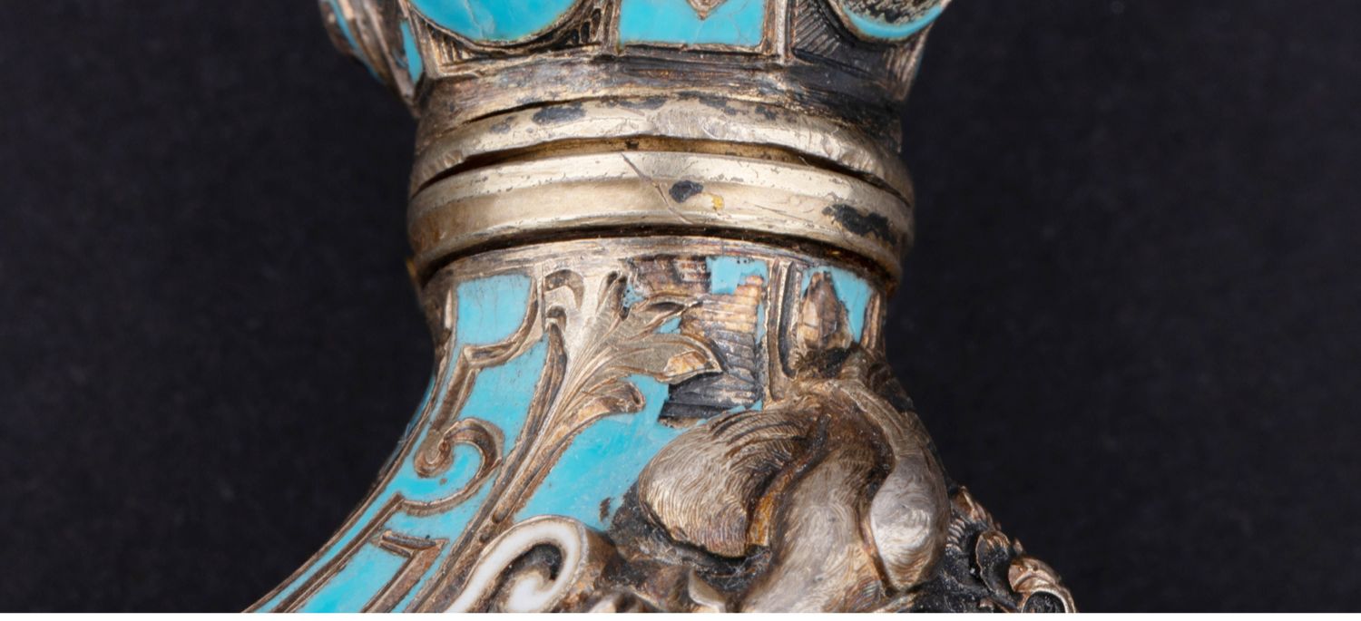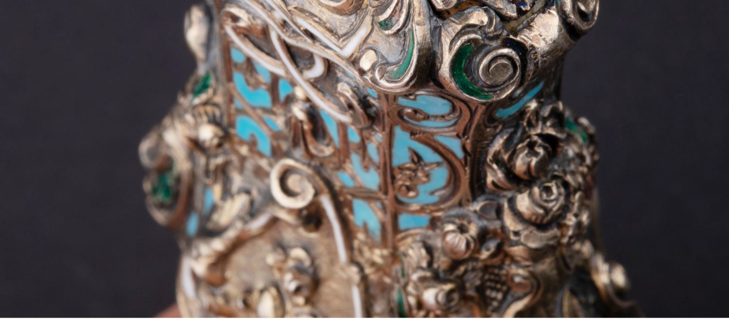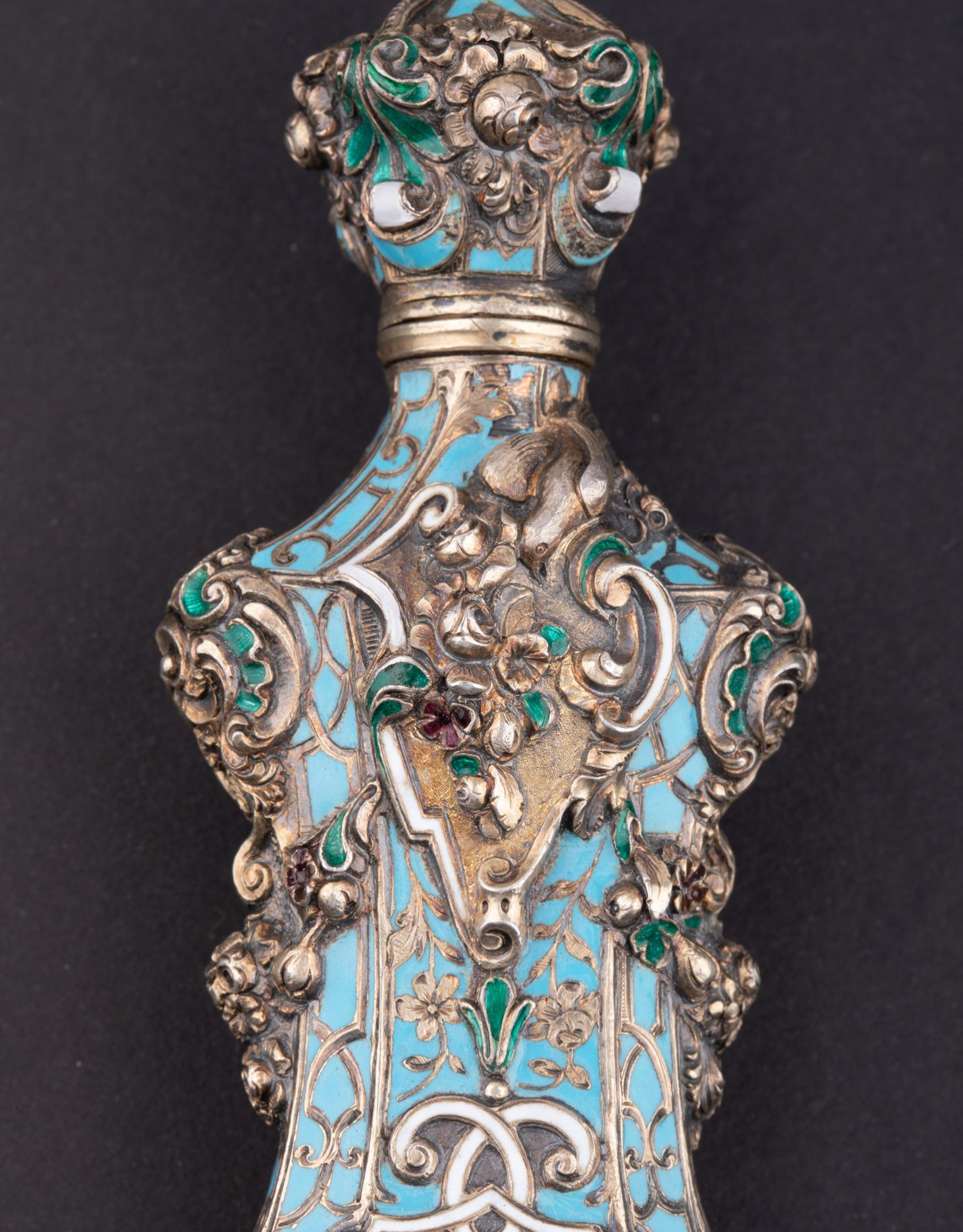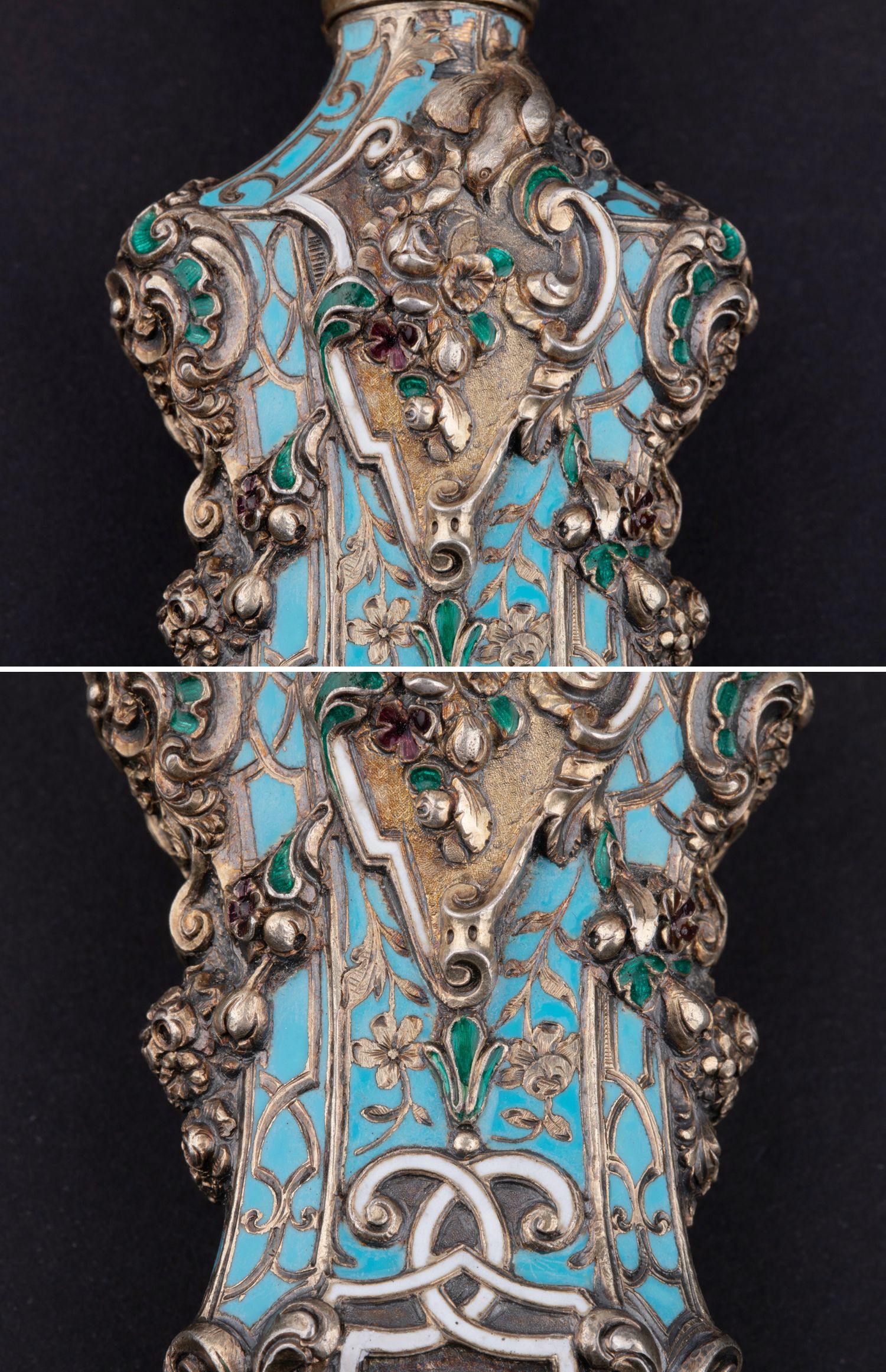独角鹿西洋古董纯银镀金精雕修饰珐琅彩色花卉纹样醒神盐瓶香水瓶