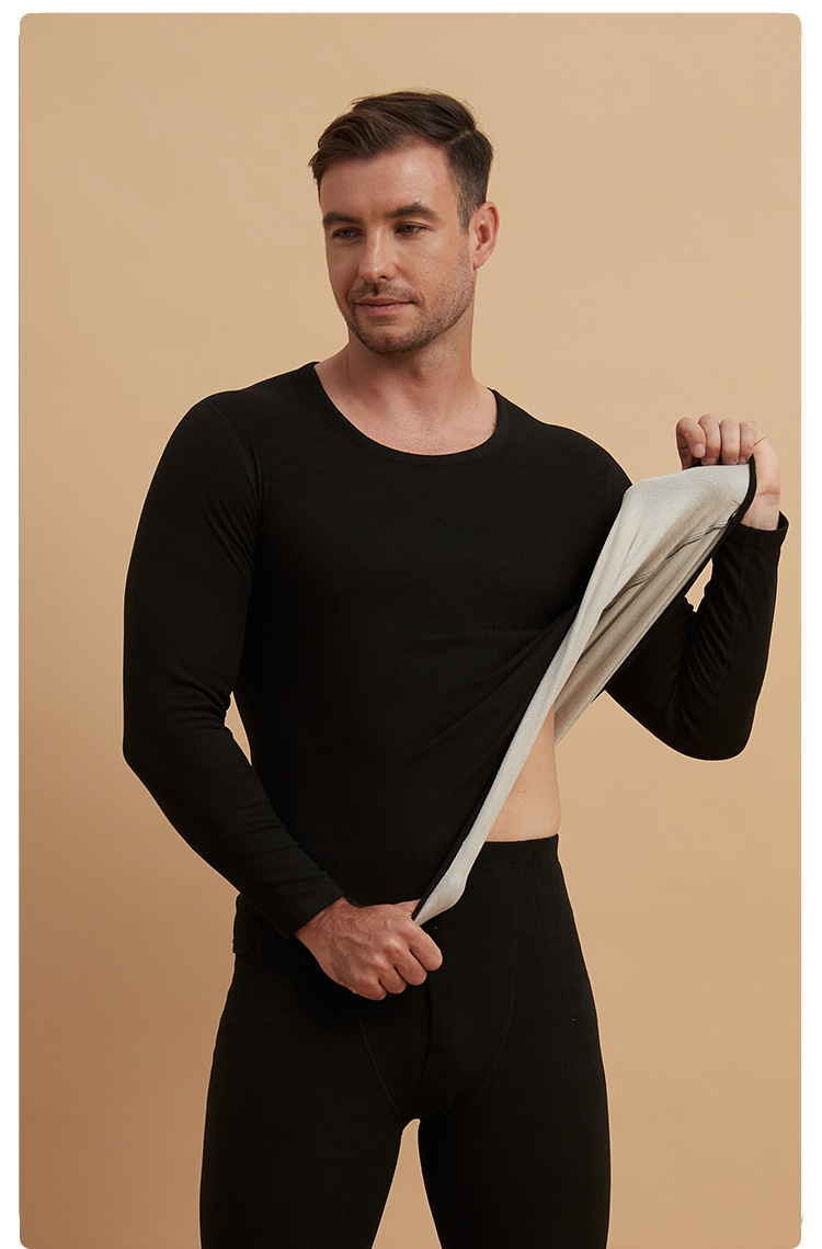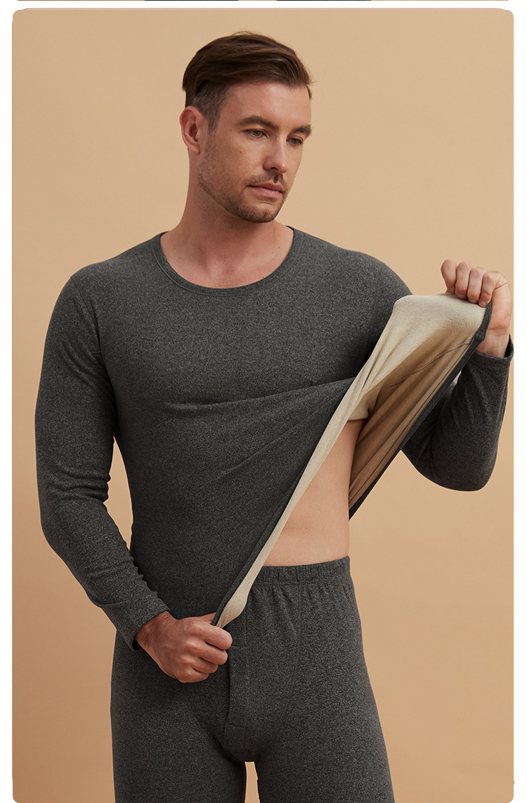 【GZ】无忧购秋冬季男士羊绒德绒修身打底保暖内衣套装加厚磨毛轻薄秋衣秋裤(截单后3-5天发货)