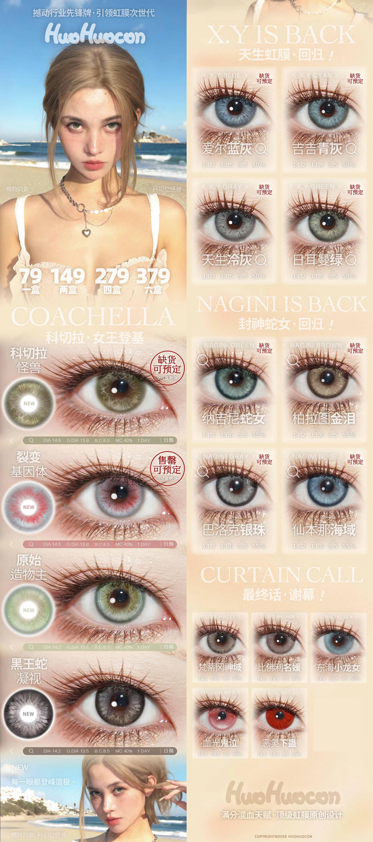huohuocon 日抛 活动合集【纳吉尼蛇女/柏拉图金泪/巴洛克银珠/仙本那海域/熊猫噗噗水雾奶油/妈生色】
