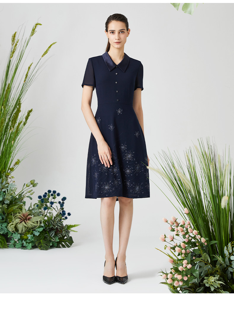 皮尔卡丹女装年夏季新款法式优雅知性端庄连衣裙P1225D1047F0