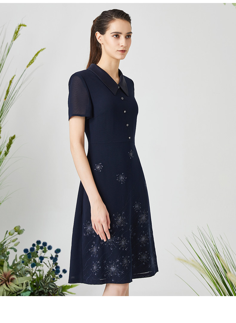 皮尔卡丹女装年夏季法式高腰优雅A字短袖连衣裙P1237D1102R5