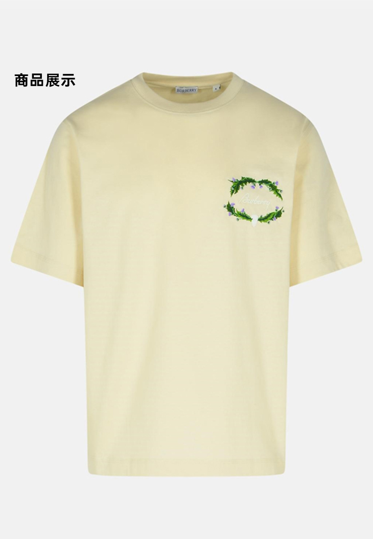 BURBERRY 巴宝莉 女士蓟花图案徽标棉质圆领短袖T恤 米色 8097844 C1409
