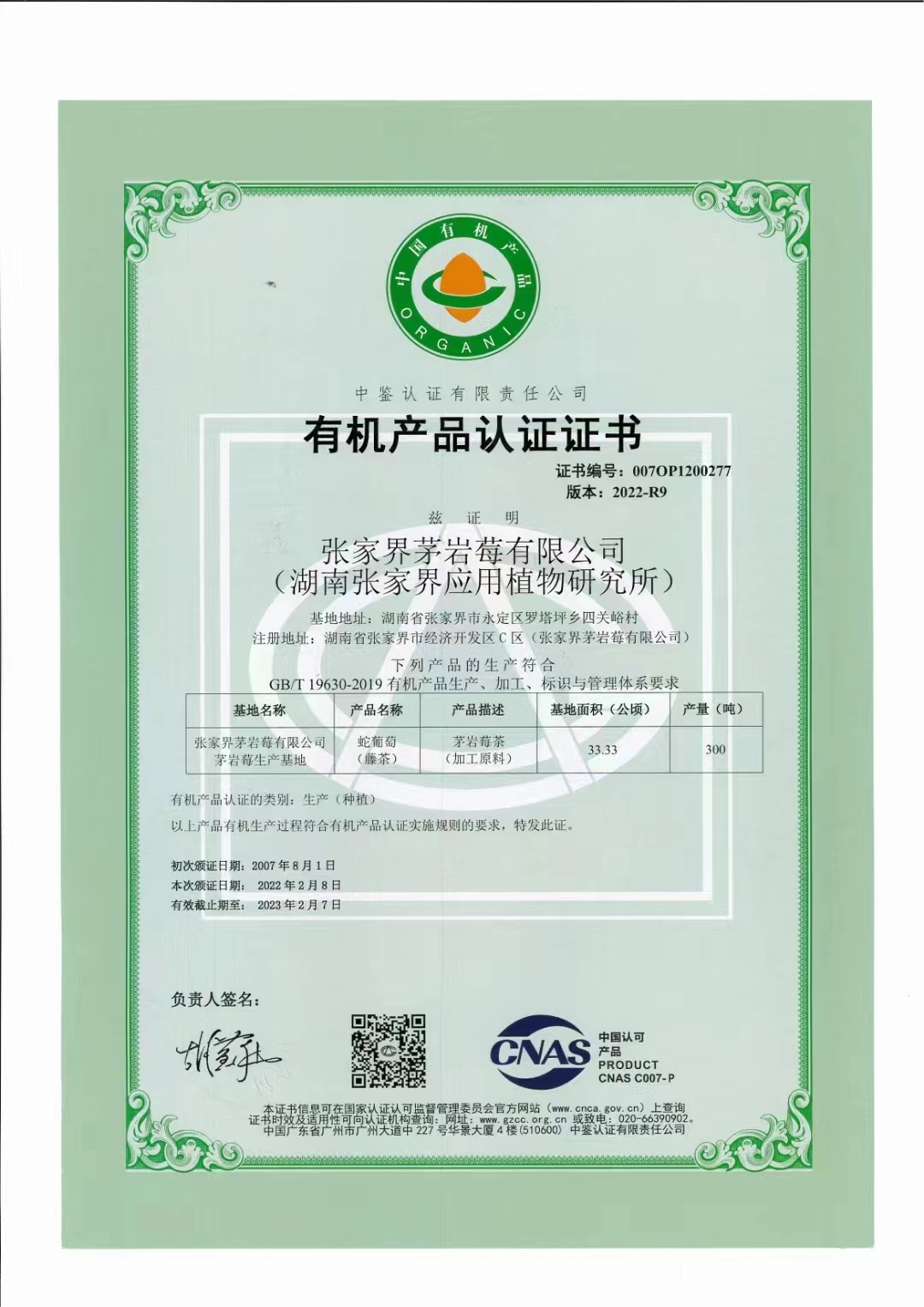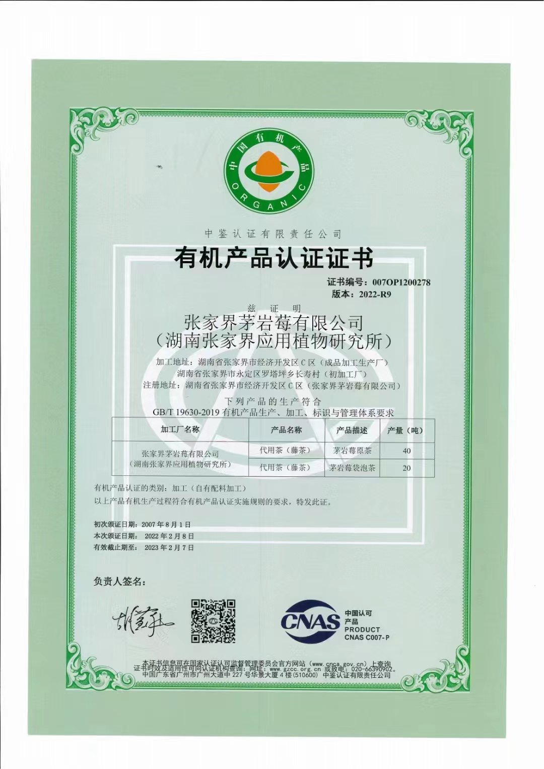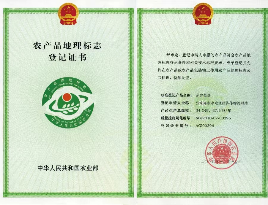 2010年11月15日,原中华人民共和国农业部批准对“茅岩莓茶”实施农产品地理标志登记保护。