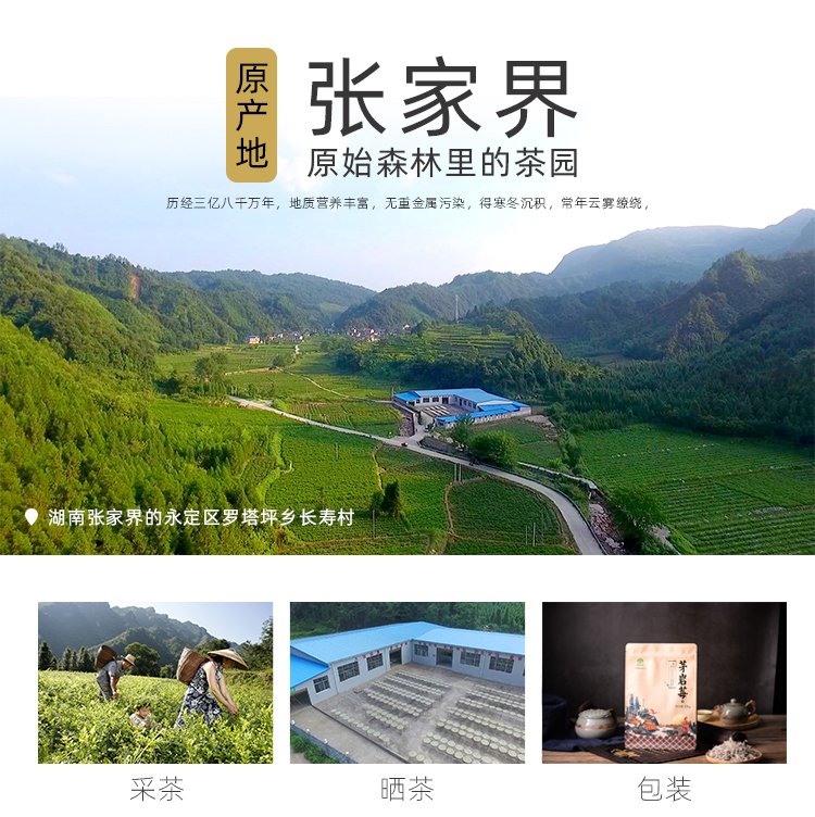 湖南省张家界市永定区茅岩莓茶产区位于洞庭湖源头支流之一——澧水河上游,产地水质好,无任何工业污染源。产区位于武陵山脉腹地,产地地貌以山岳地貌为主,地势是南、北部高往澧水倾斜,中部低洼。绝对海拔812—1507米。