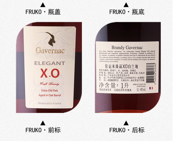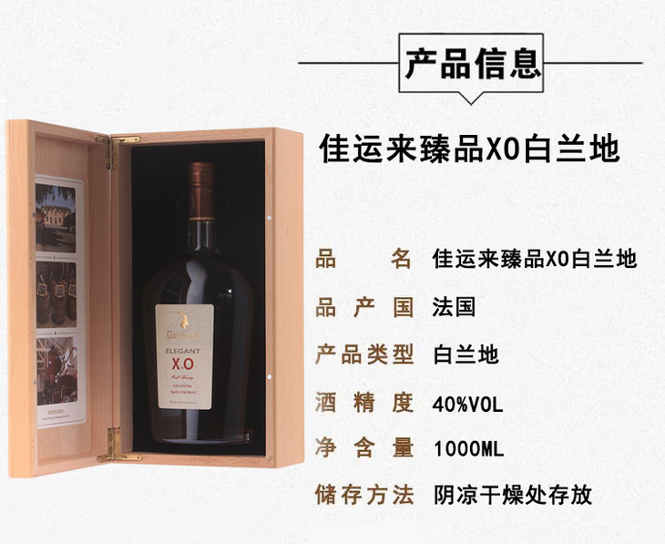 法国进口 佳运来臻品XO白兰地1000ml /1瓶/2瓶