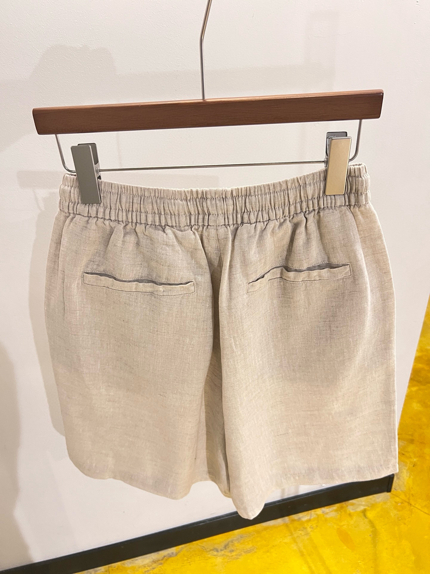 100%全亚麻材质,表面肌理感清晰。这个短裤是那种很细致的亚麻精纺哈,贴肤完全无压力,上身凉爽舒适,有很好的稳固性和挺括感,透气吸湿,不闷不热!~