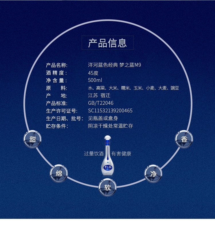 【实体商超版非电商版】洋河梦之蓝(M9) 500ml 45%单瓶装 /整箱4瓶发 全国包邮 s11js jjnhjjs nhjjs