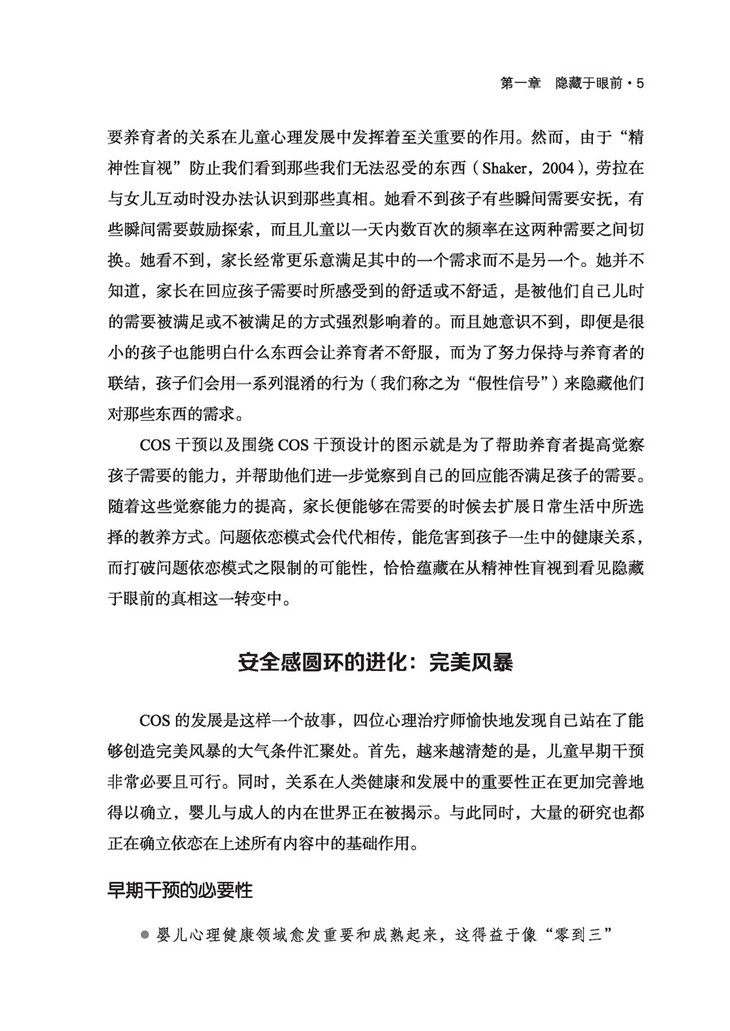 COS是建立在依恋理论和坚实的研究基础之上的。这本书将简洁性、临床实用性与学术严谨性融为一体,有效地告诉读者儿童在安全依恋中有哪些需要,并明确指出可能是什么会妨碍家长对这些需要做出回应。对临床医生和学生而言,这本书把国际上认为是早期亲子干预计划的前沿成果变成了现实!