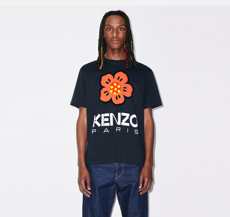 【二】KENZO 高田贤三 男士棉质 BOKE花朵印花 系列圆领短袖T恤 蓝色 FD55 TS445 4SO 77