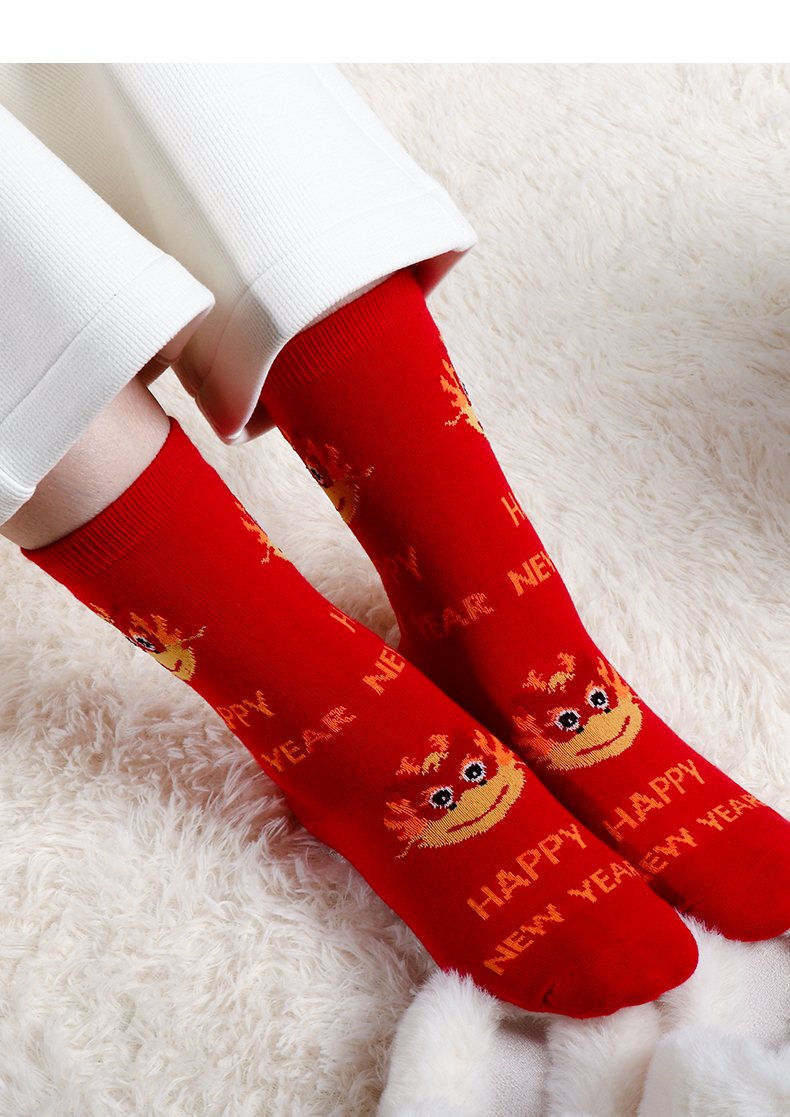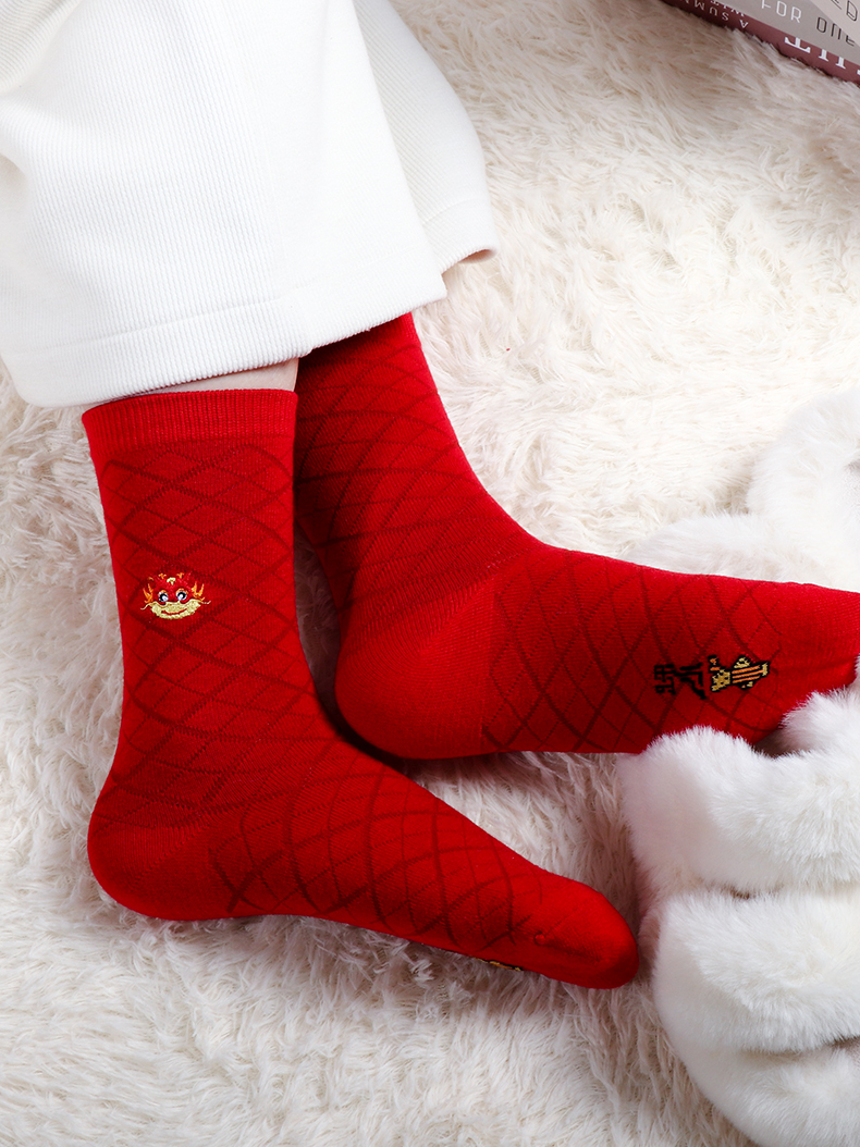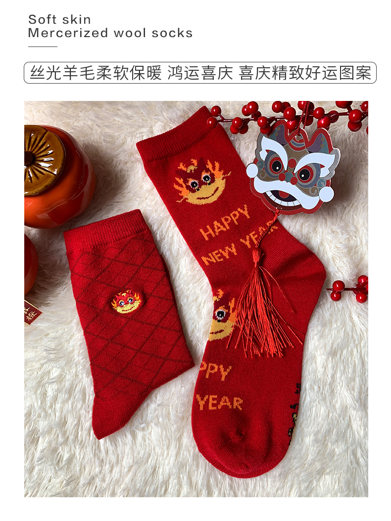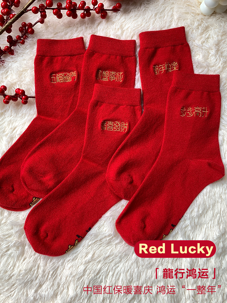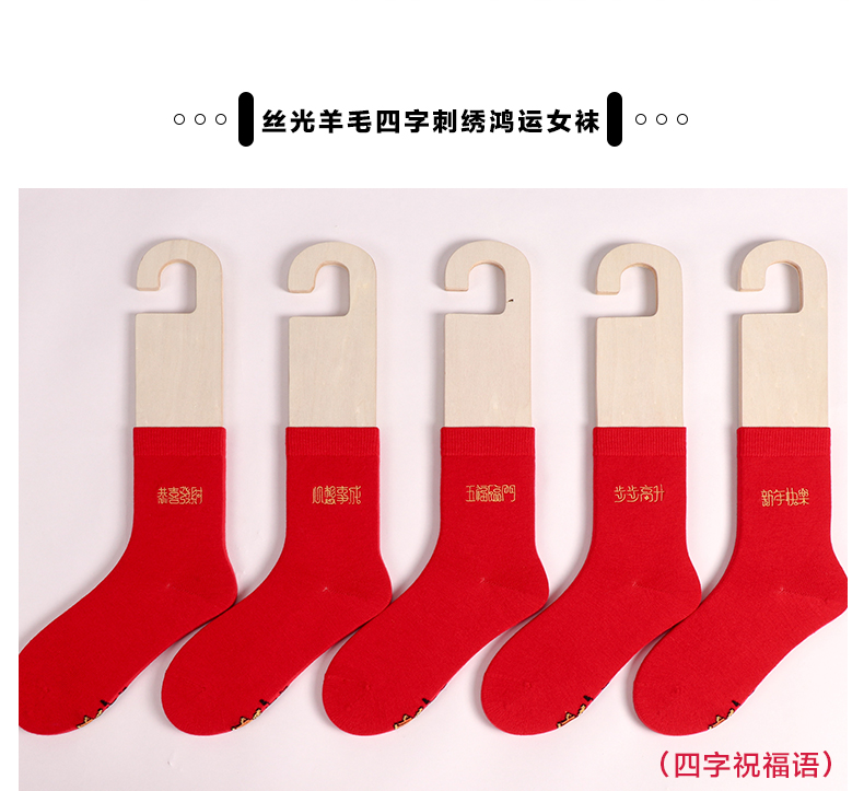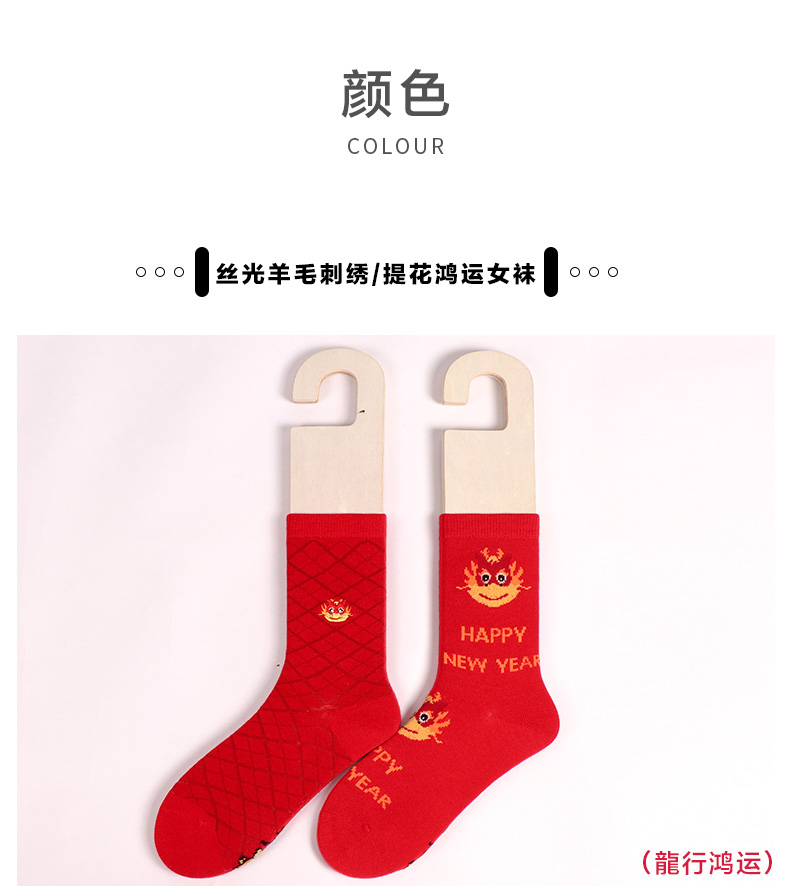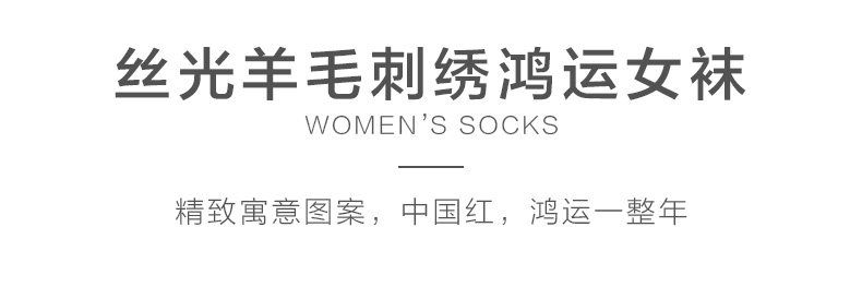 足装秀新品女士中筒龙年红运袜子丝光羊毛保暖送礼刺绣提花女袜