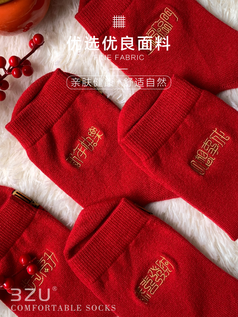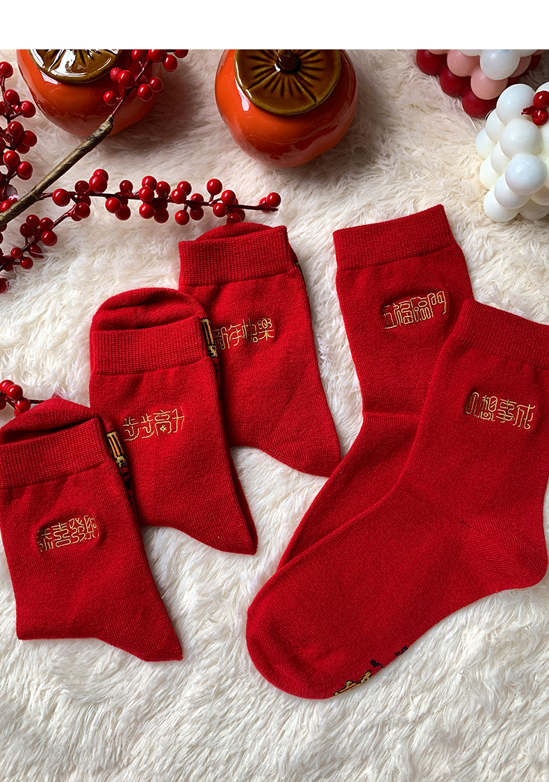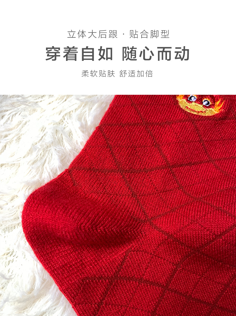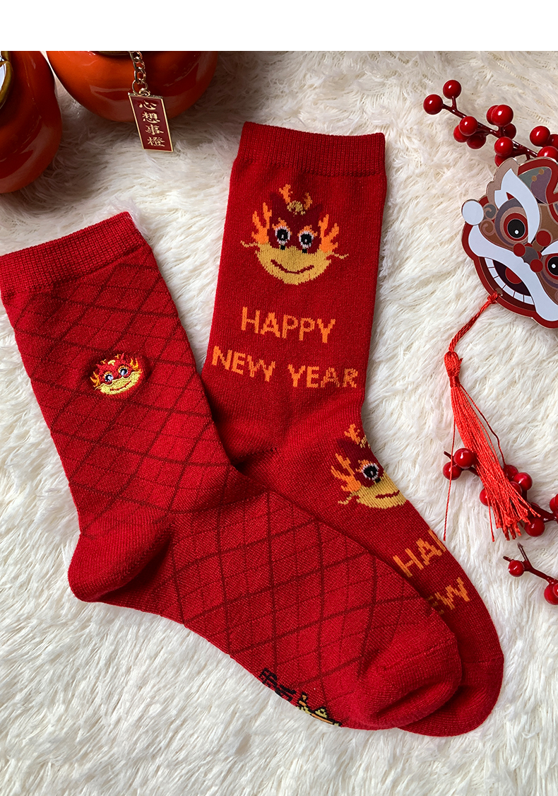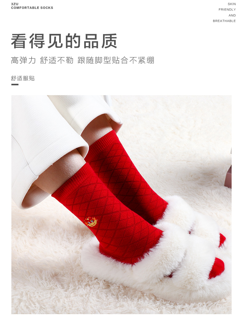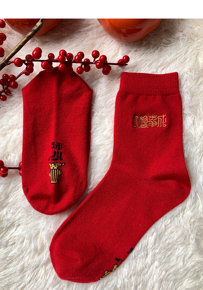 足装秀新品女士中筒龙年红运袜子丝光羊毛保暖送礼刺绣提花女袜