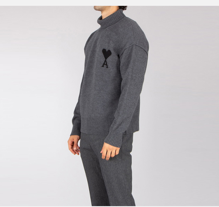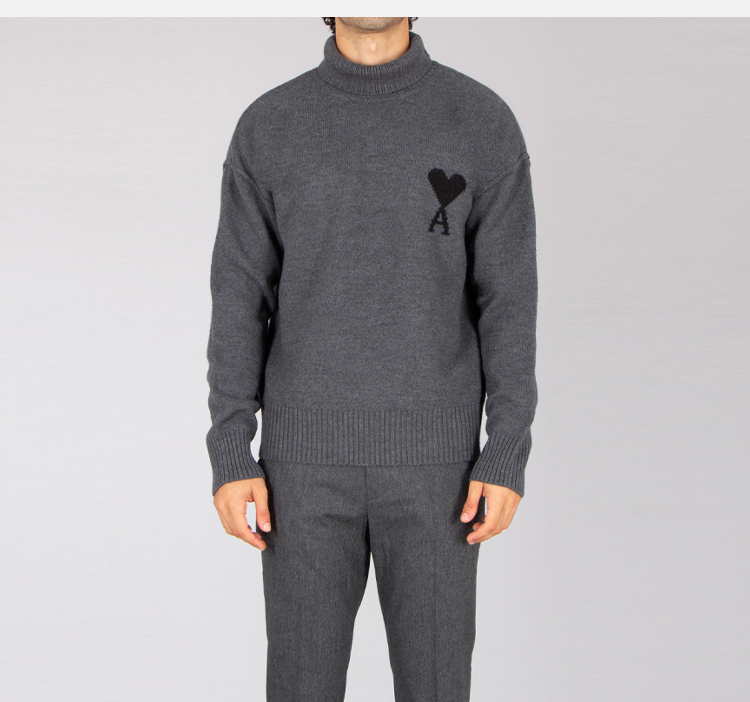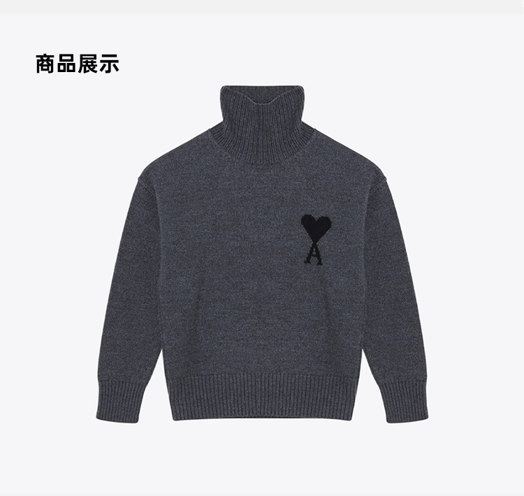 AMI 男女同款心形徽标刺绣嵌花羊毛针织衫 深灰色 UKS839 018 0504