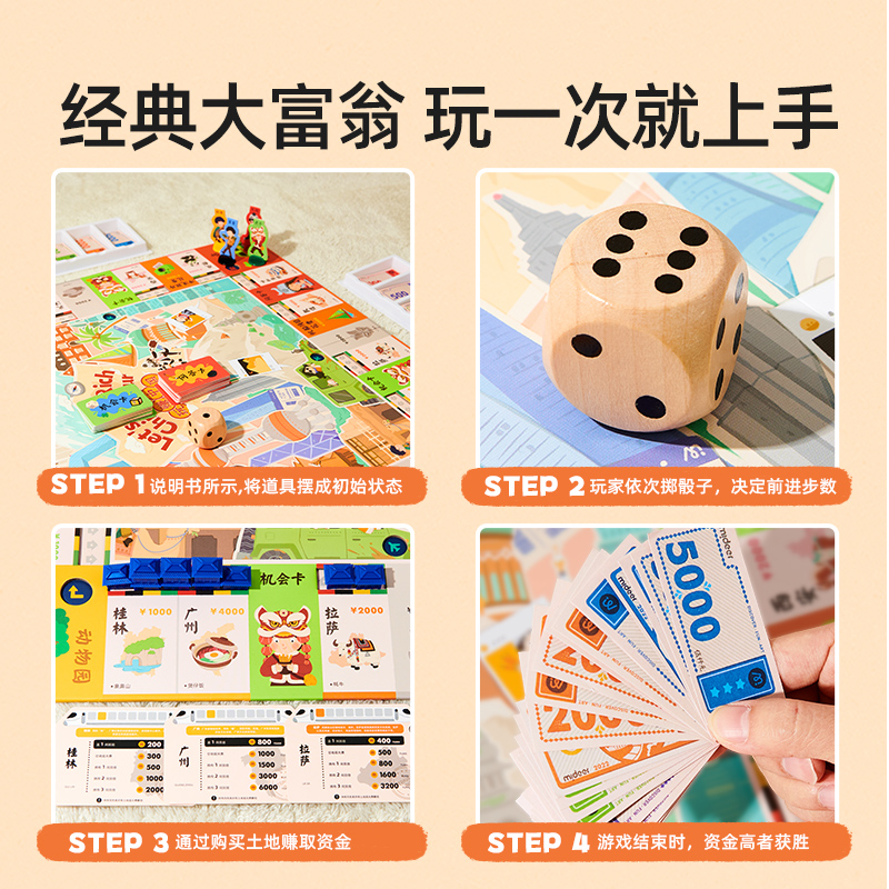 弥鹿儿童大富翁世界之旅中国多人超大游戏棋卡牌豪华版亲子桌游戏