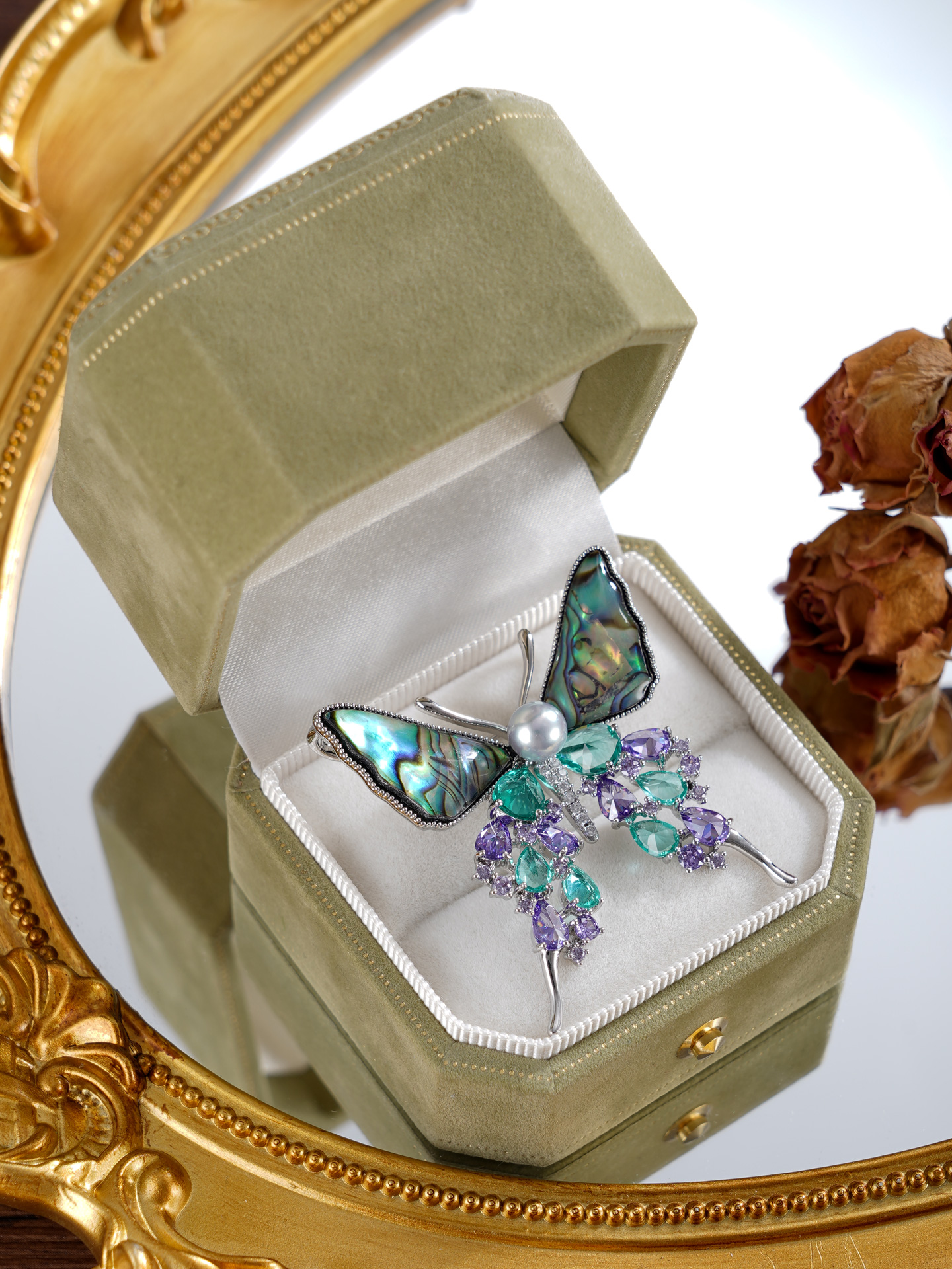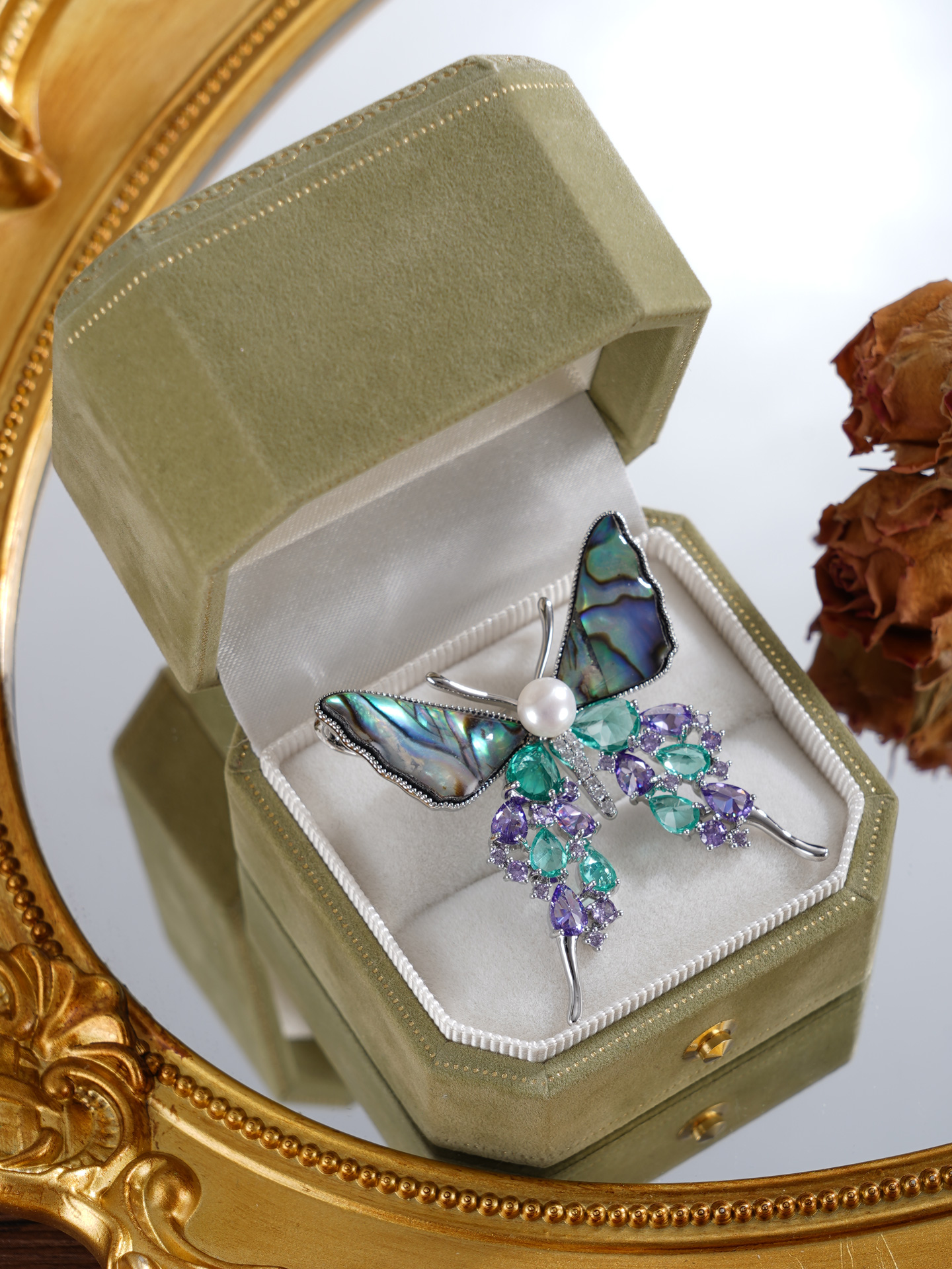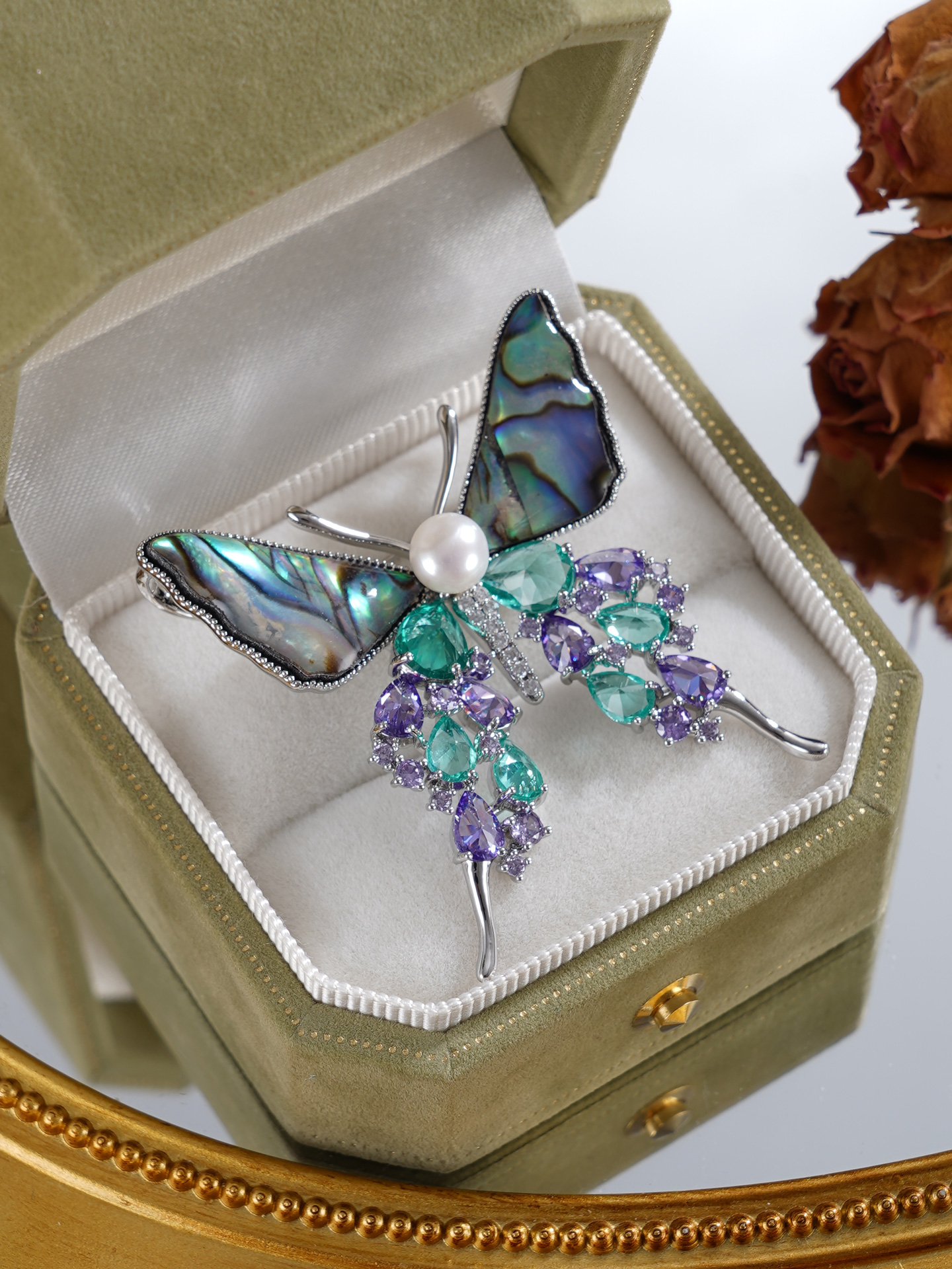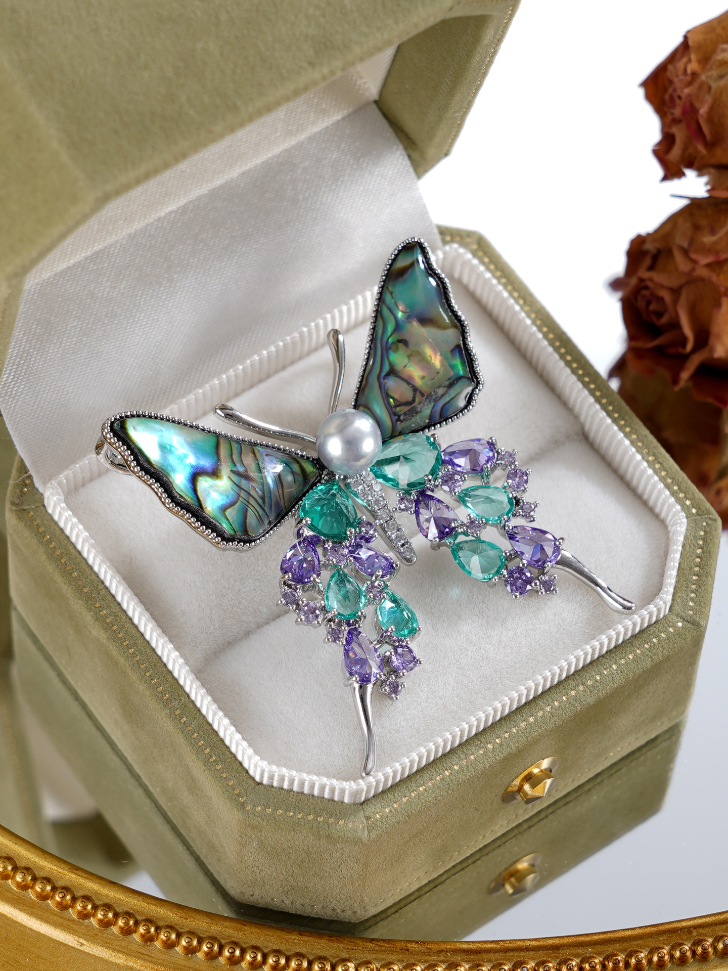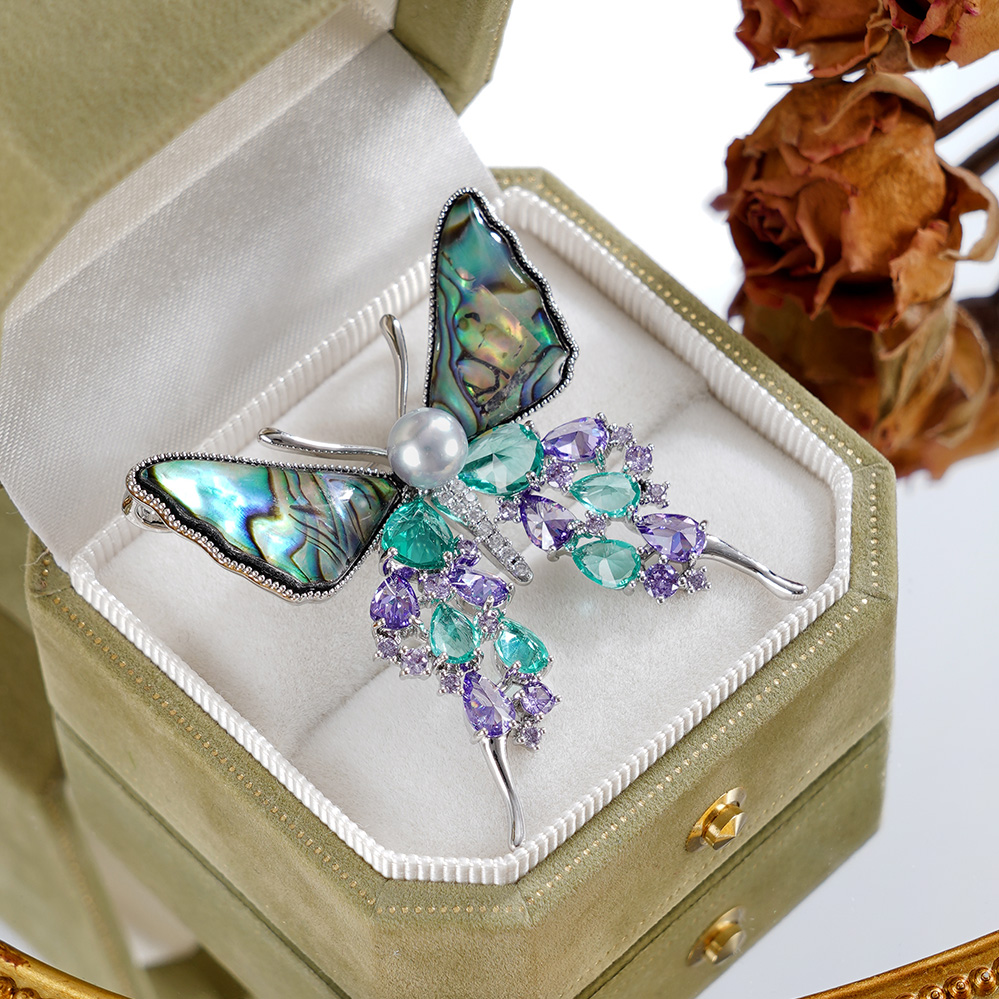 子佩集【碧海灵蝶】珍珠惜王妃胸针【XXXZ232】6mm双色珠螺钿蝴蝶2601