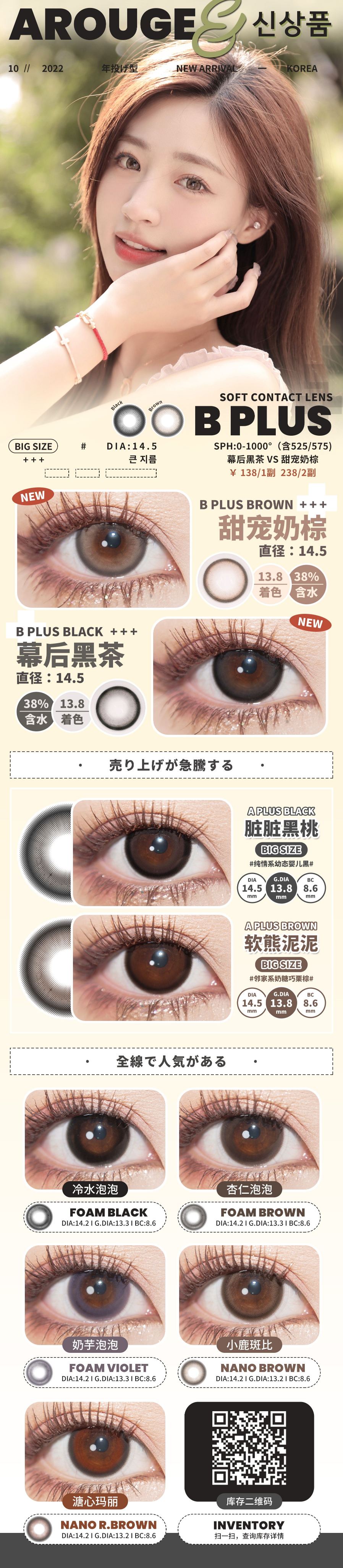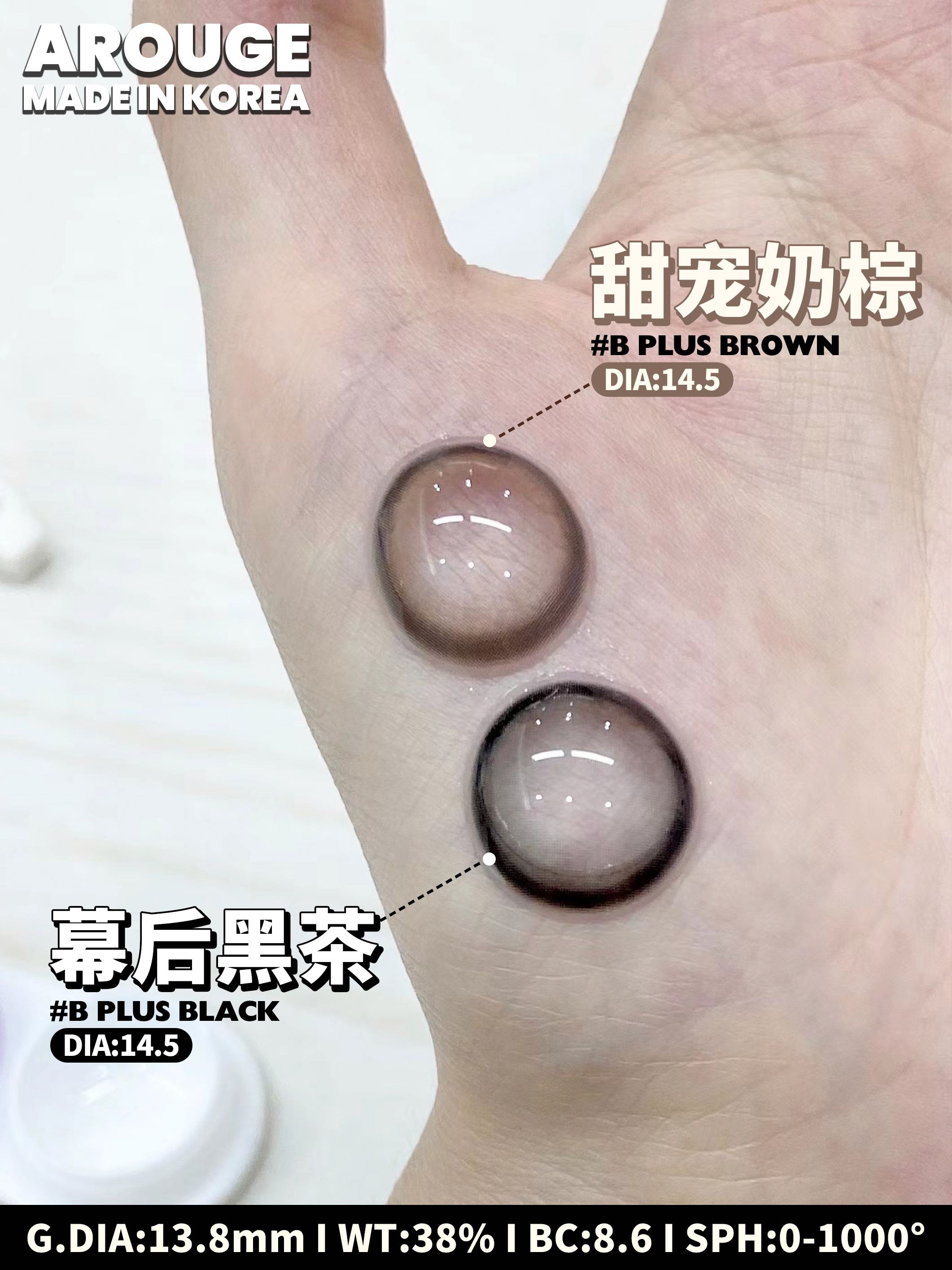 【小红书推荐款】arouge 甜宠奶棕,半年抛/直径14.5/着色13.8, 138/一副,238/两副(商品详情任选,最高度数有1000)