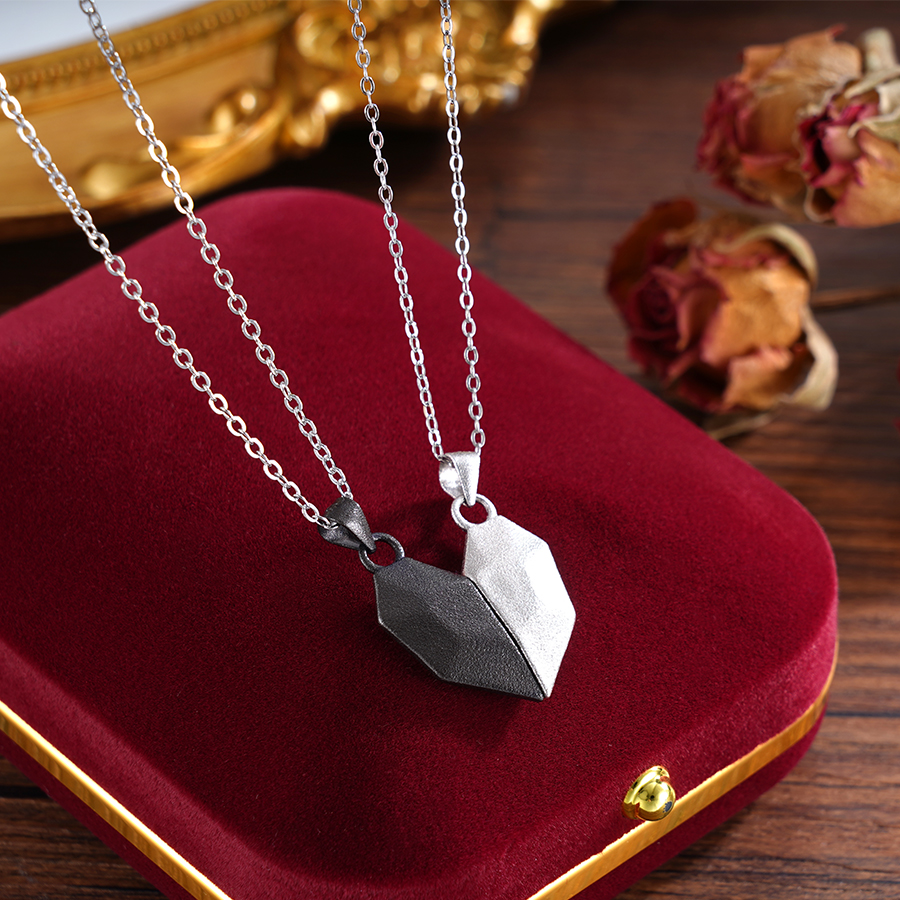 子佩集S925银【许愿相吸】套链【P000021】纯银时尚项链黑白爱心磁吸2502