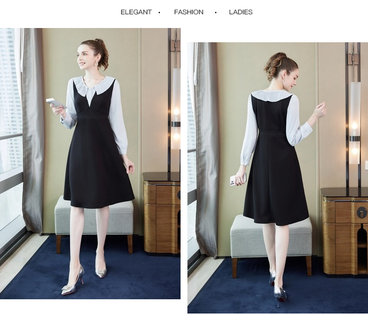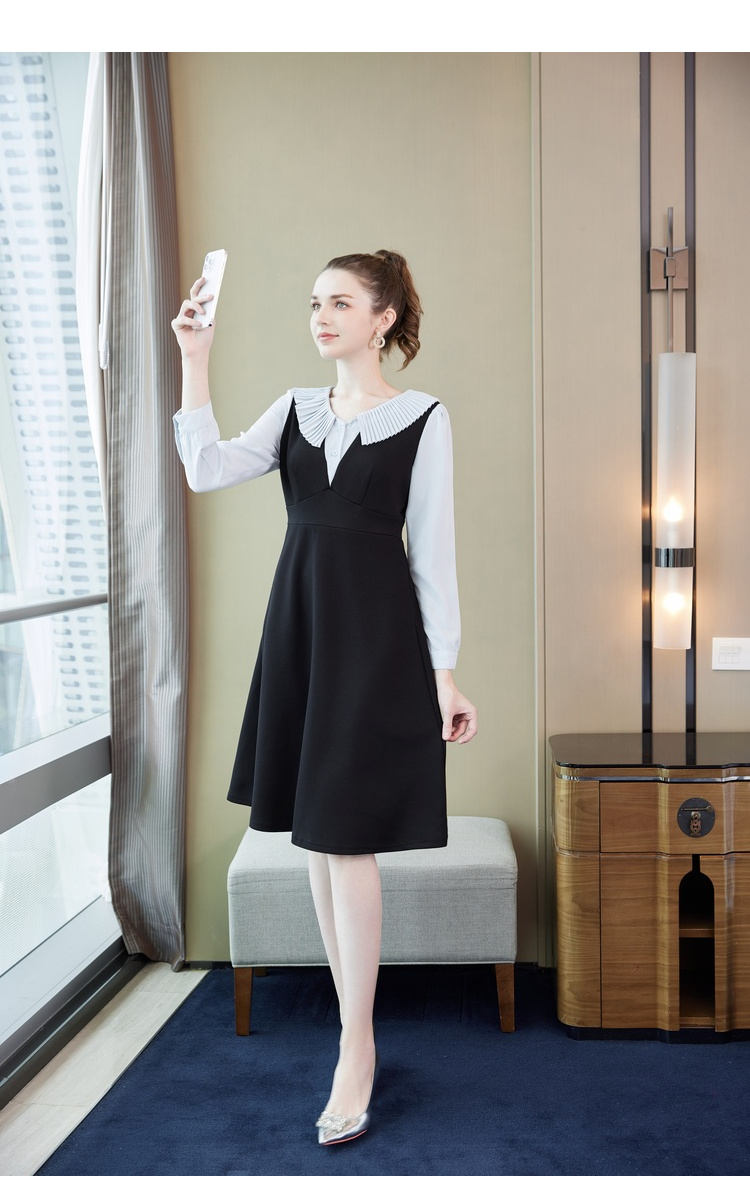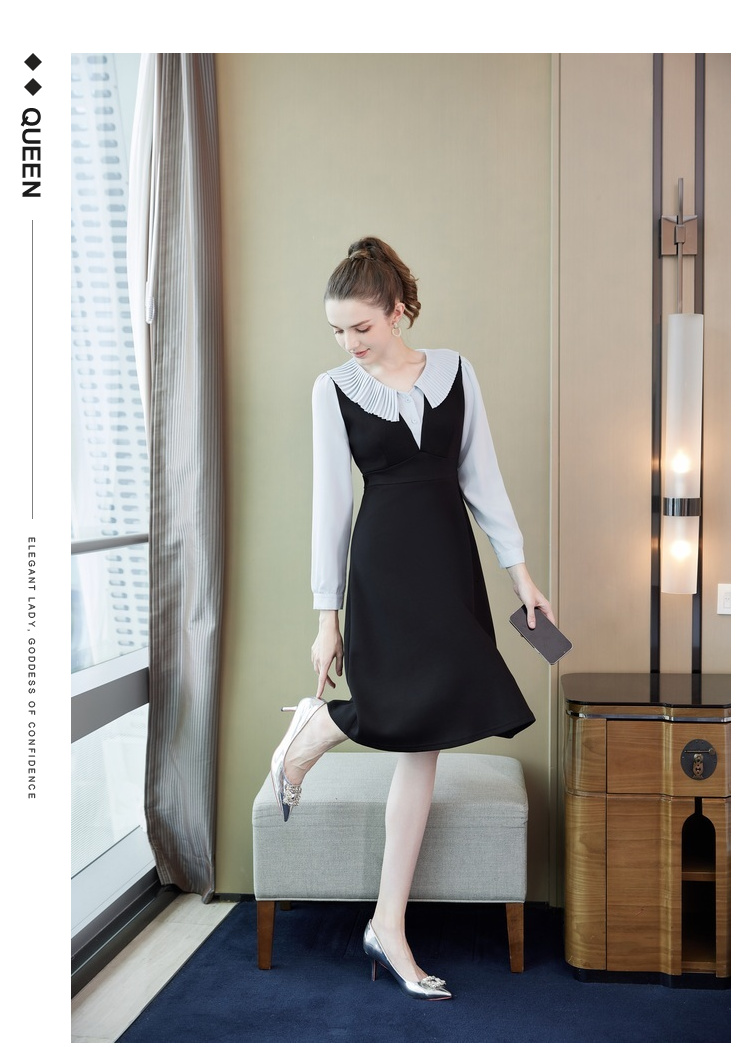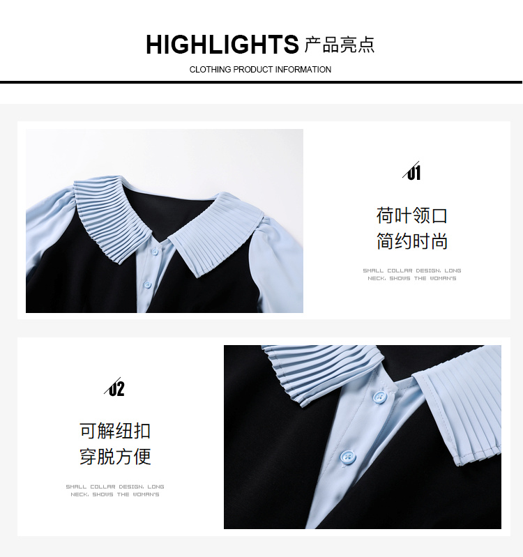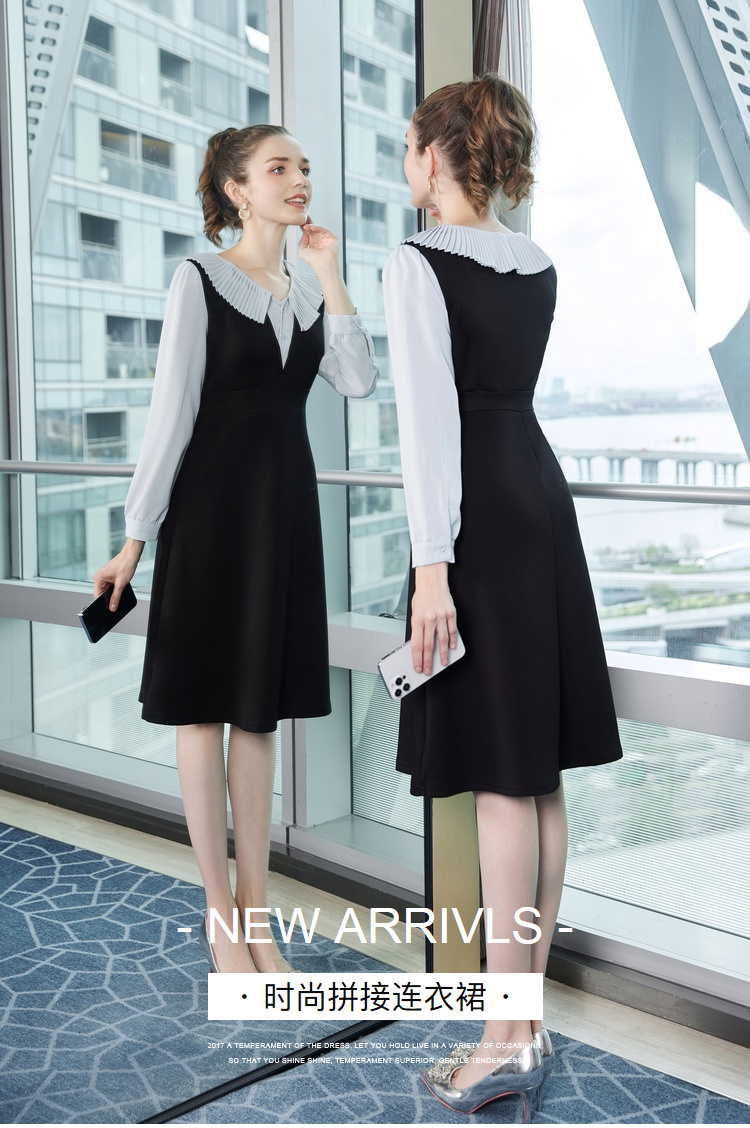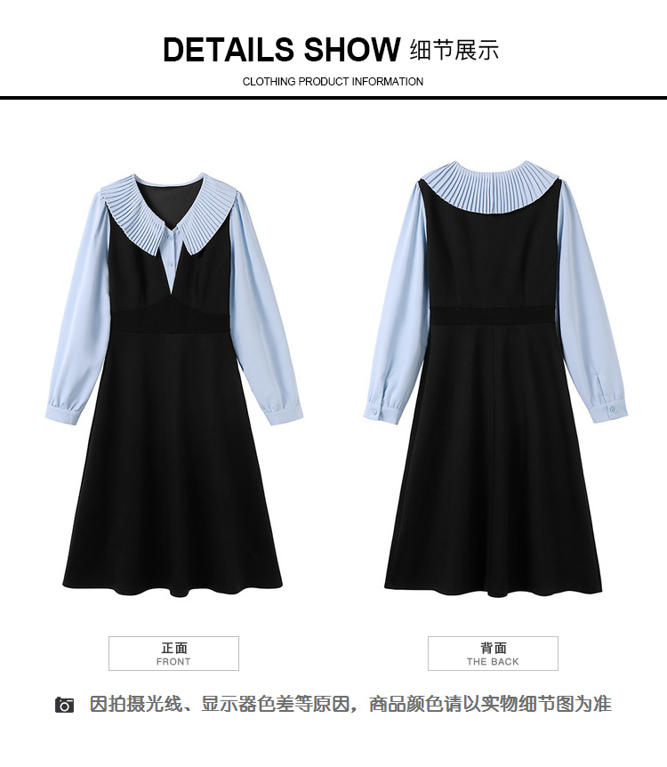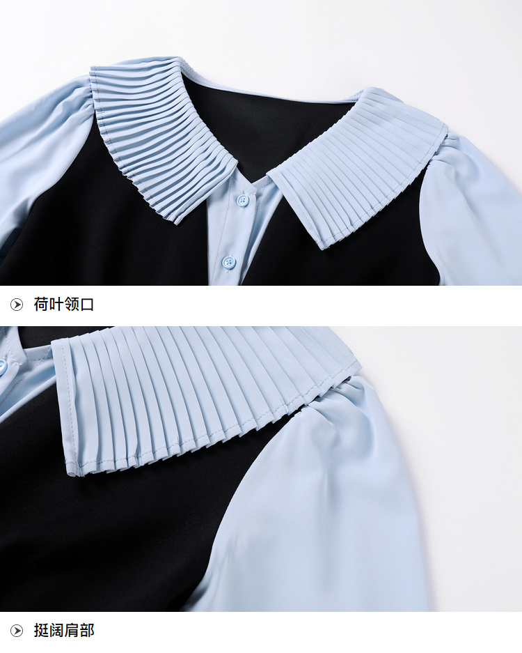 奢姿2025年秋季新款大码女装压褶荷叶领时尚裙子胖妹妹拼接连衣裙9933891155