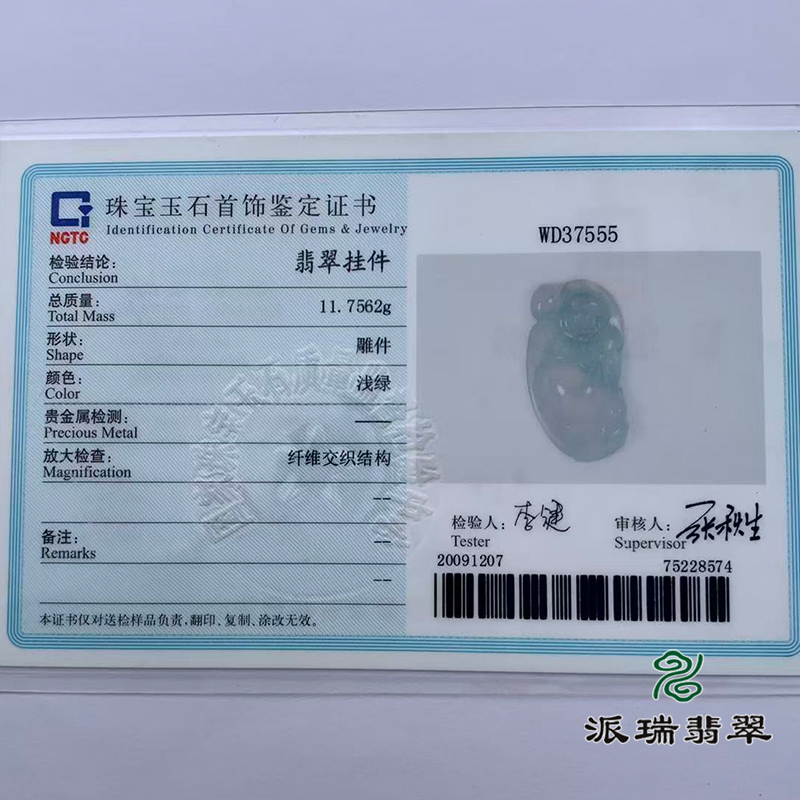派瑞翡翠 18k金翡翠吊坠 糯种 绿色
