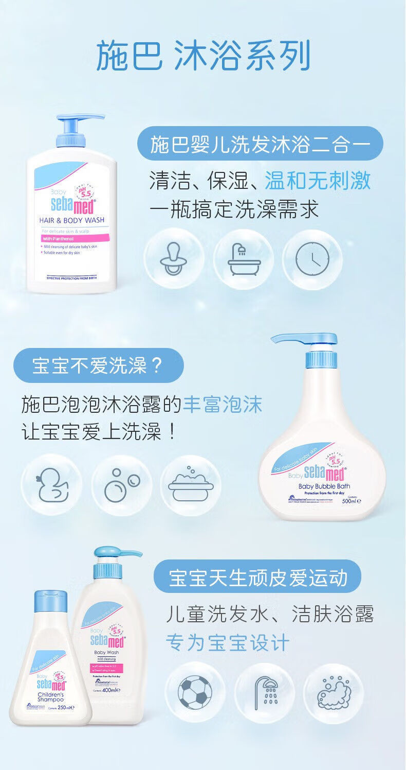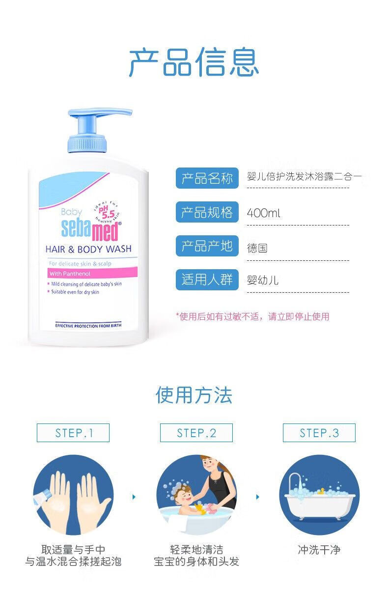 施巴婴幼儿童倍护洗发沐浴露二合一温和清洁保湿400ml