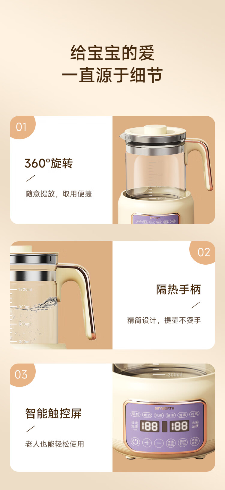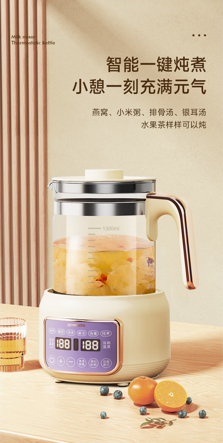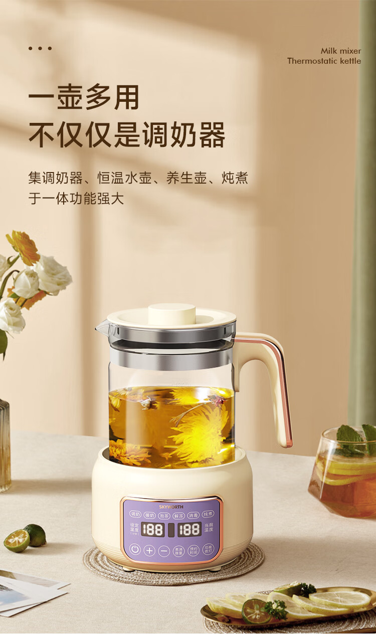 创维(Skyworth) S157养生壶 1.3L多功能婴儿冲泡奶粉热水壶 温奶暖奶器玻璃水壶 S157养生壶