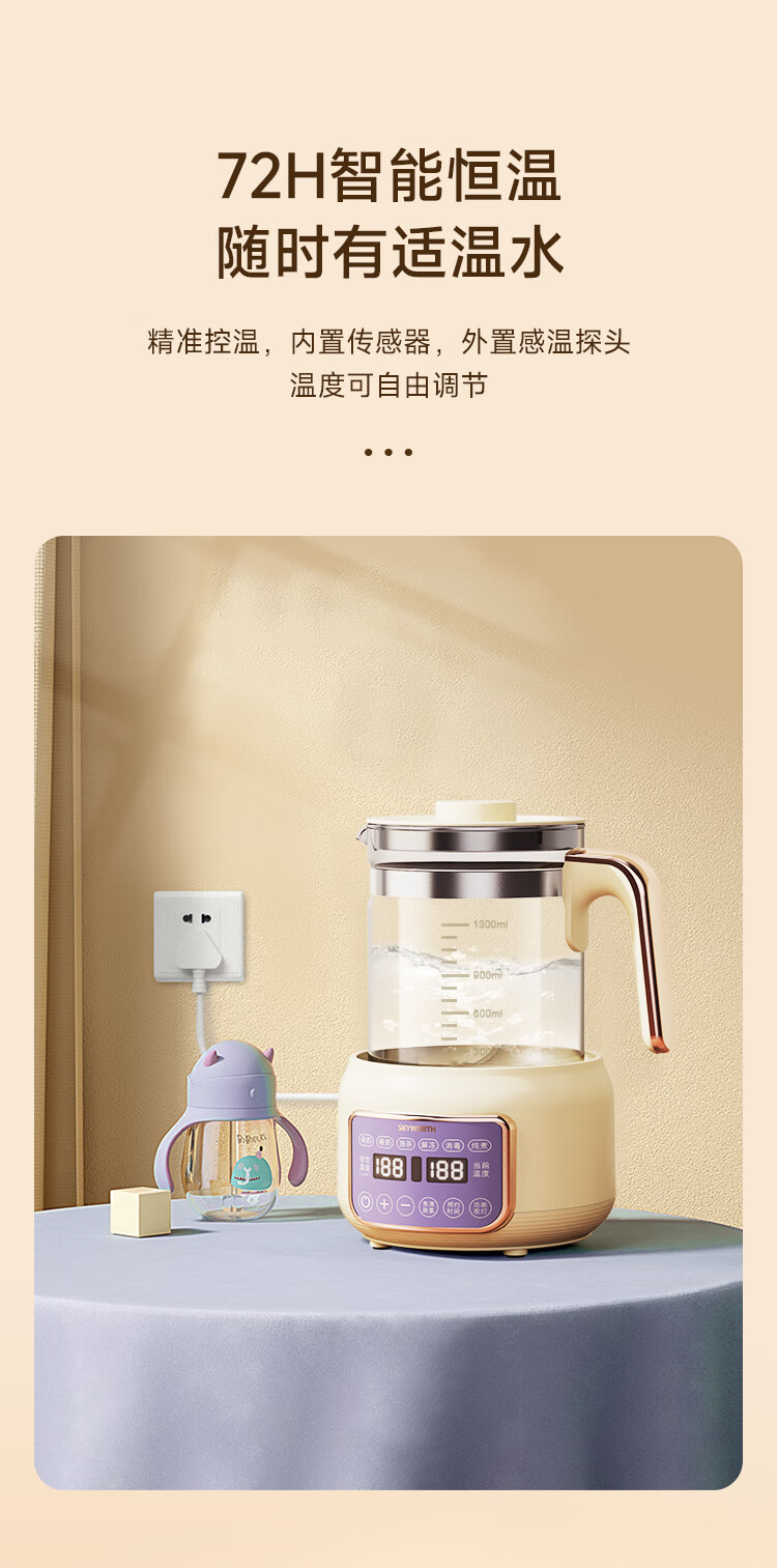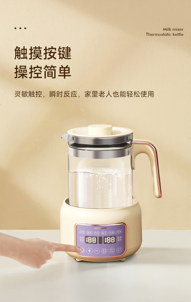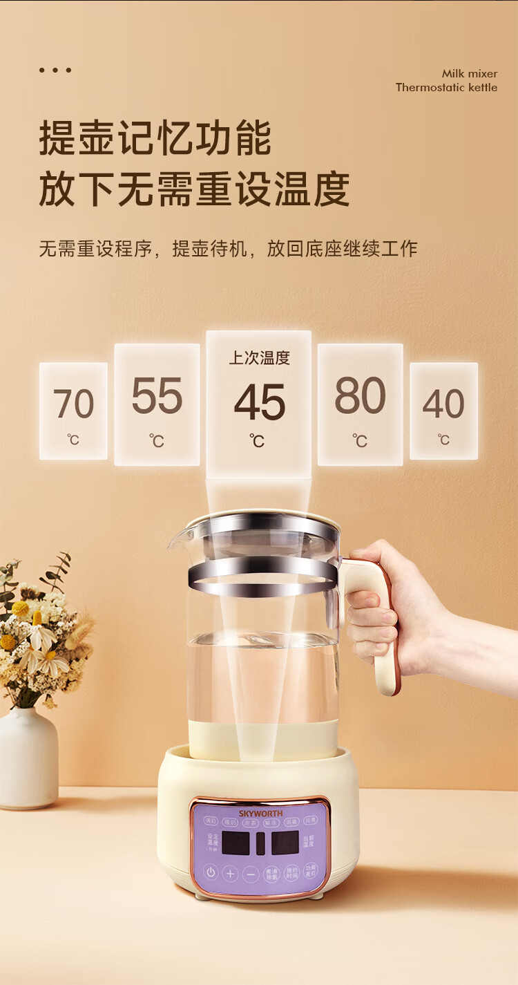 创维(Skyworth) S157养生壶 1.3L多功能婴儿冲泡奶粉热水壶 温奶暖奶器玻璃水壶 S157养生壶