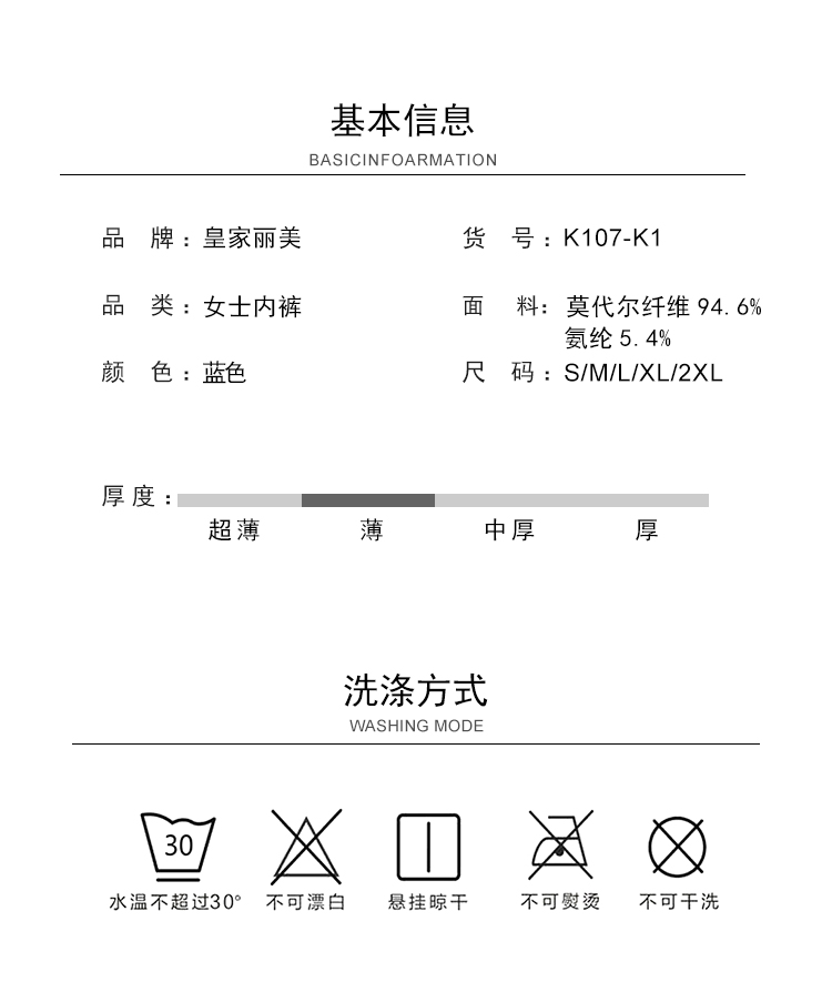 皇家丽美竹炭底档亲肤内裤k080-k1