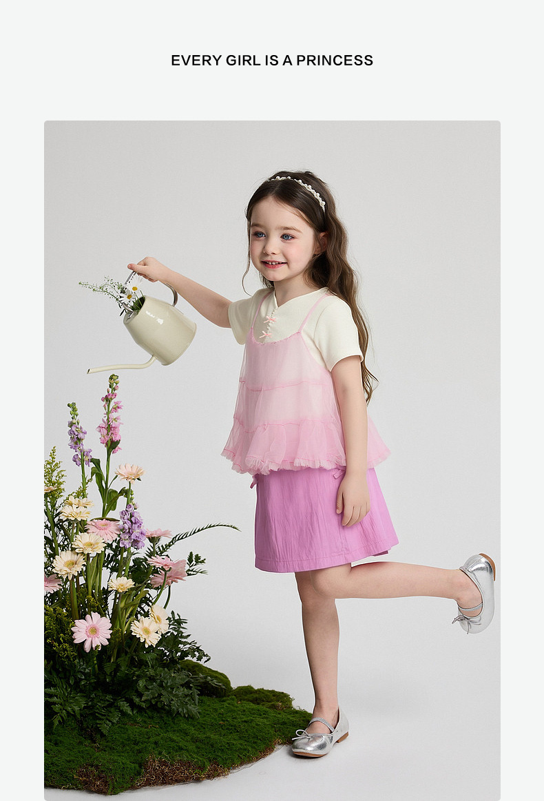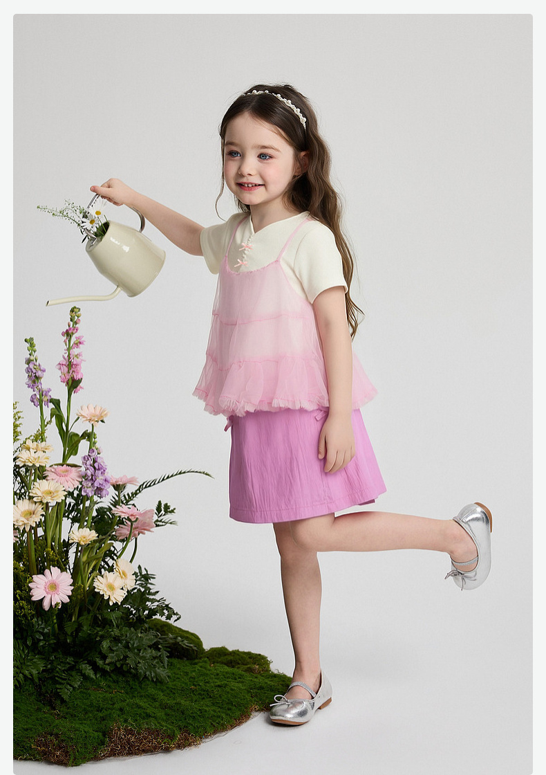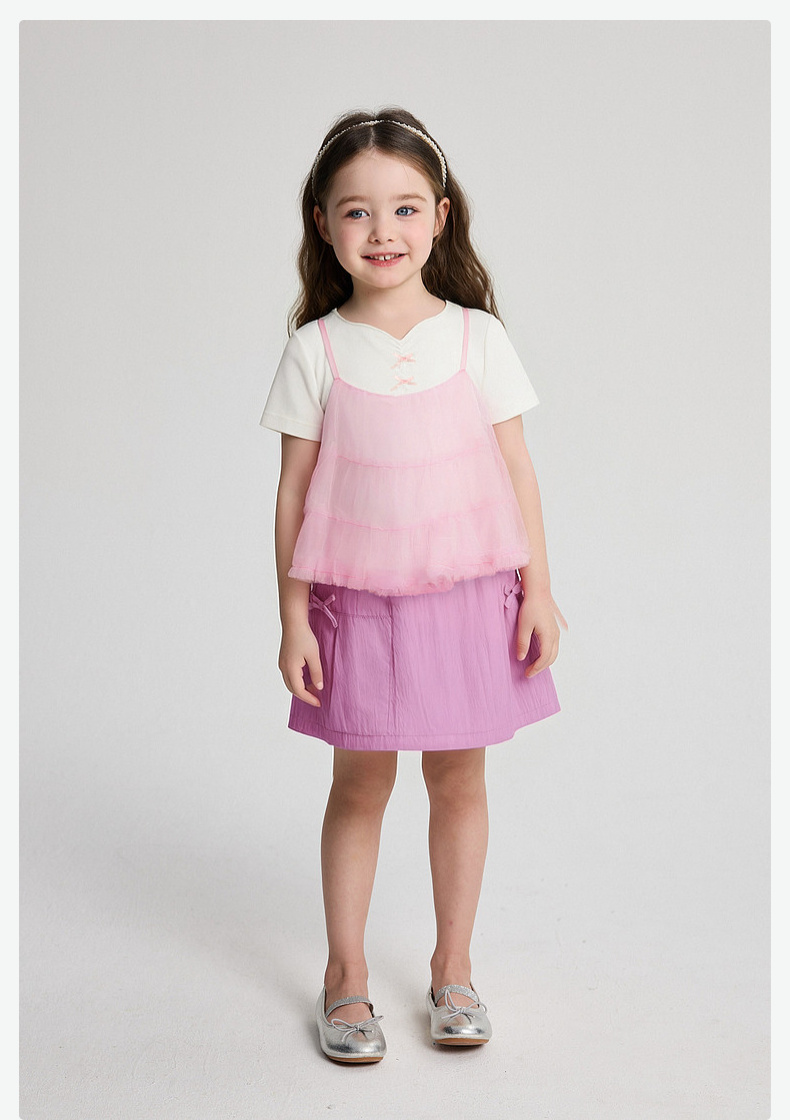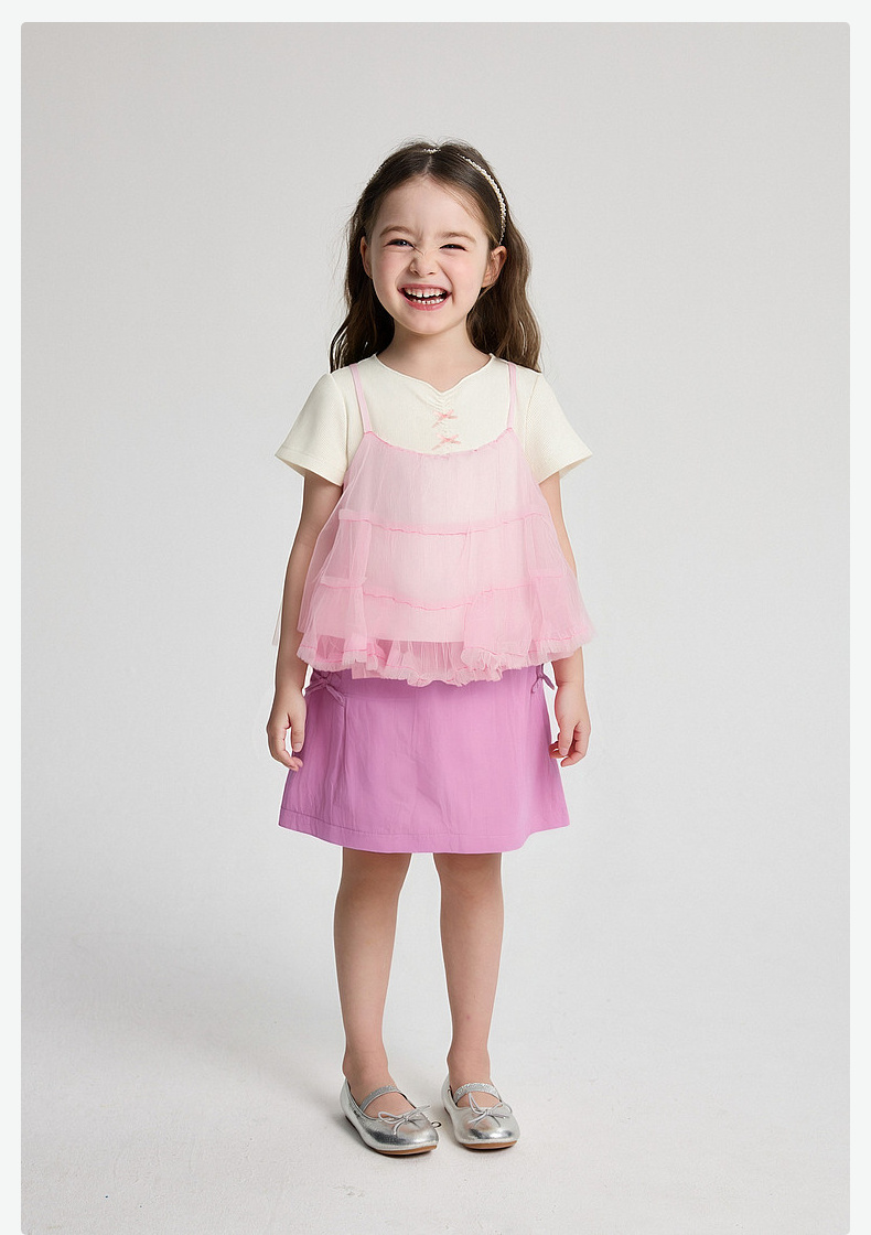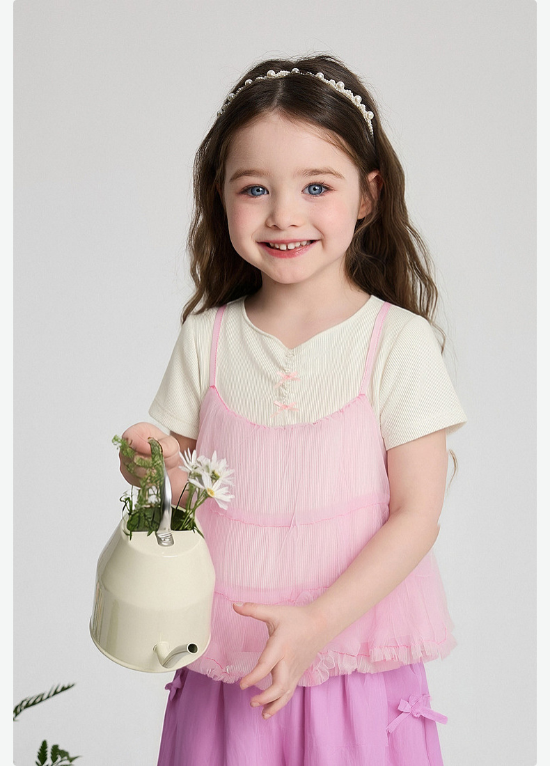 笛莎Deesha 2026年夏季新款小童女童假两件TT恤