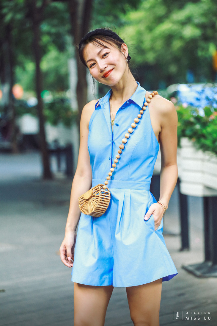 AtelierMissLu / Doris-海风蓝挂脖衬衫连体裤