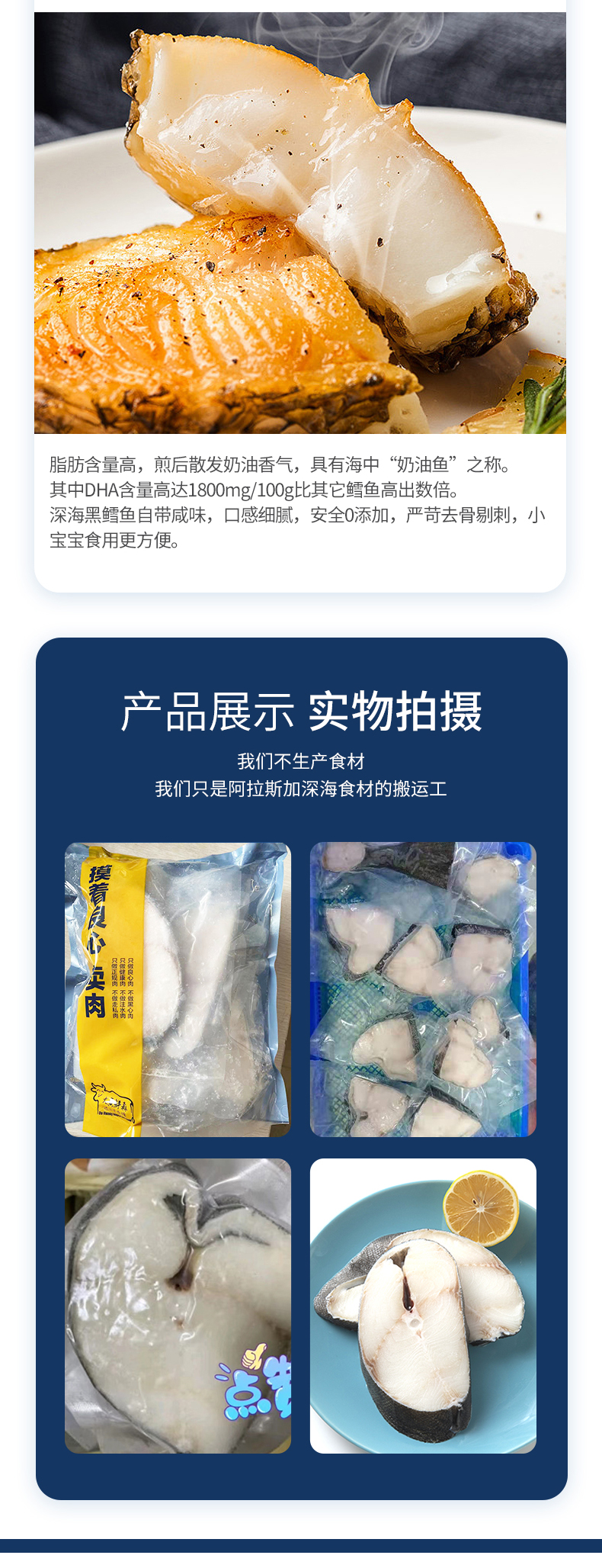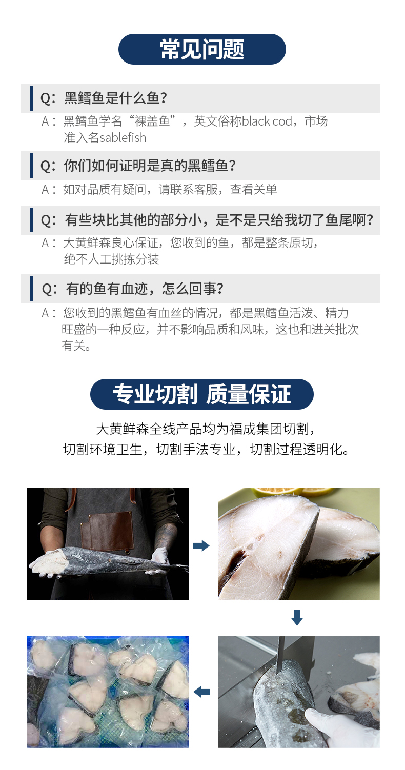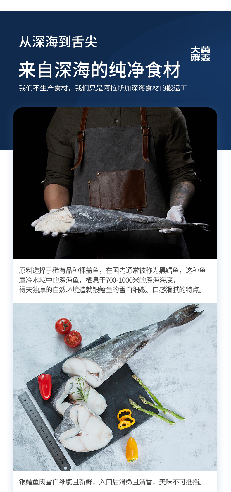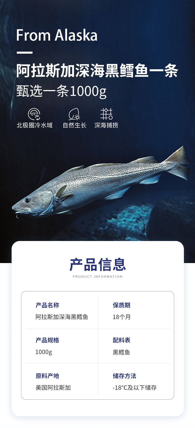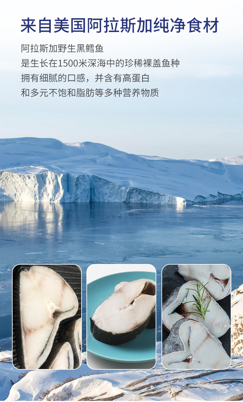 大黄鲜森 阿拉斯加黑鳕鱼整条 1000g