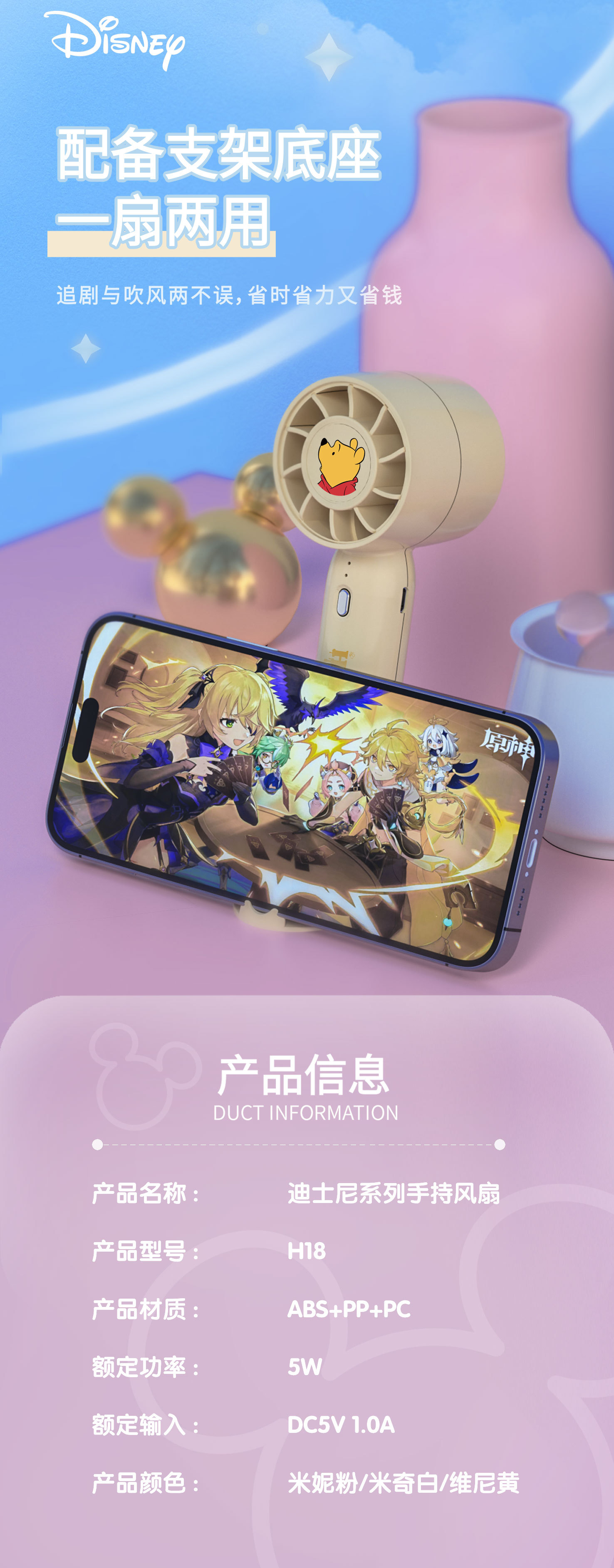 迪士尼DISNEY[迪士尼手持风扇]升级款便携小风扇,超大风力一扇两用 可当手机支架