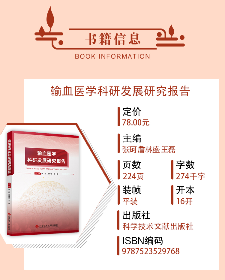 输血医学科研发展研究报告 张珂 詹林盛 王磊 主编 系统梳理了全球输血医学领域2020-2022年度部分科研进展等 科学技术文献出版社