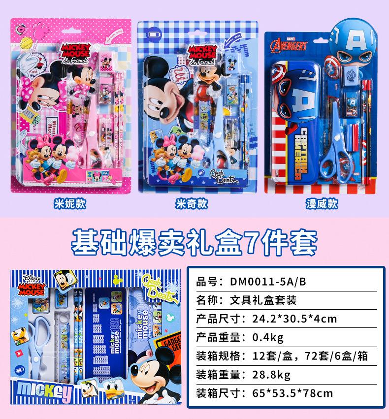 迪士尼学生文具用品学习套装礼盒开学季礼物卡通米奇儿童奖品礼品