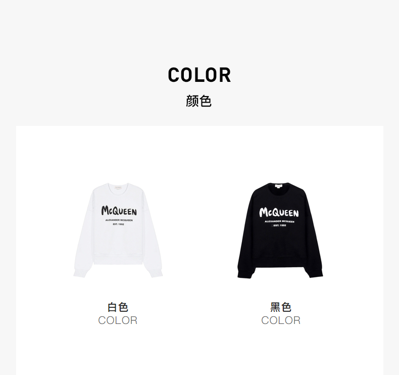 ALEXANDER MCQUEEN 亚历山大.麦昆 2023春夏新品 男士McQueen Graffiti涂鸦圆领卫衣 白色 701285 QTZ11 0900