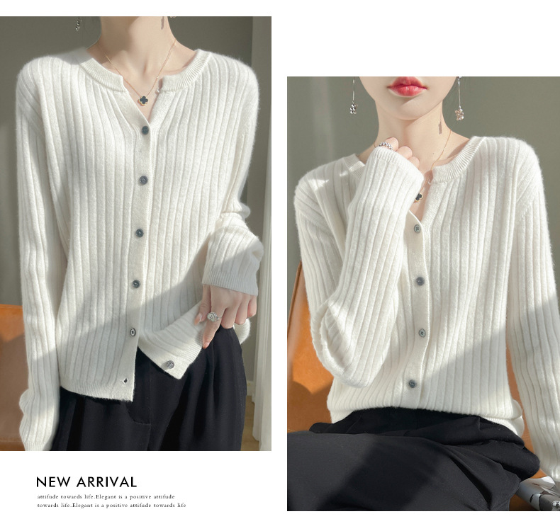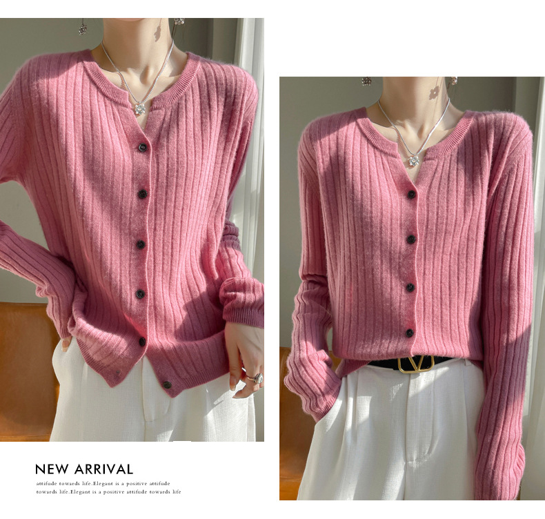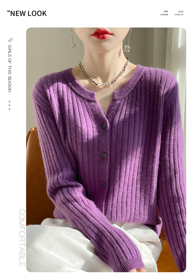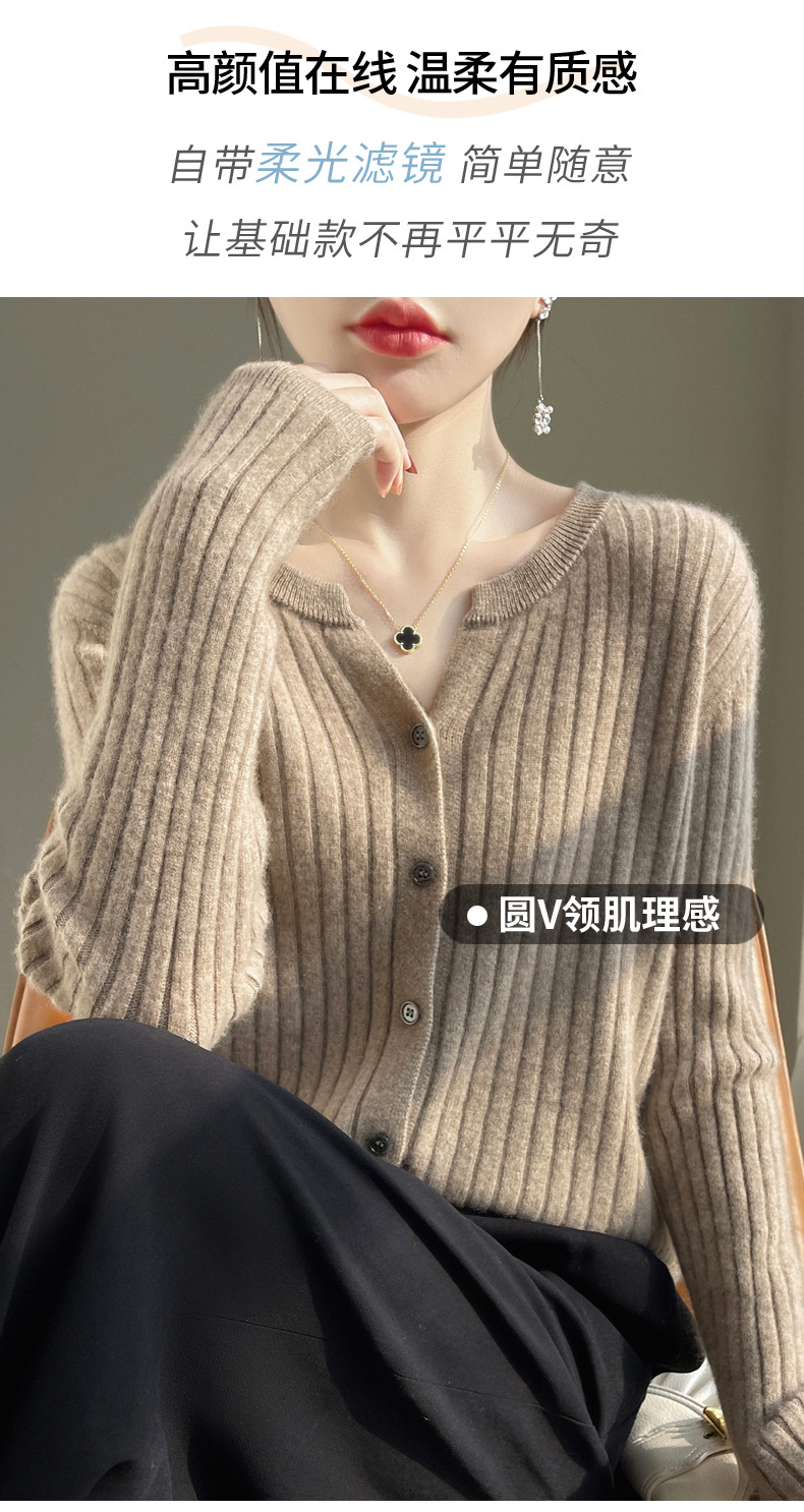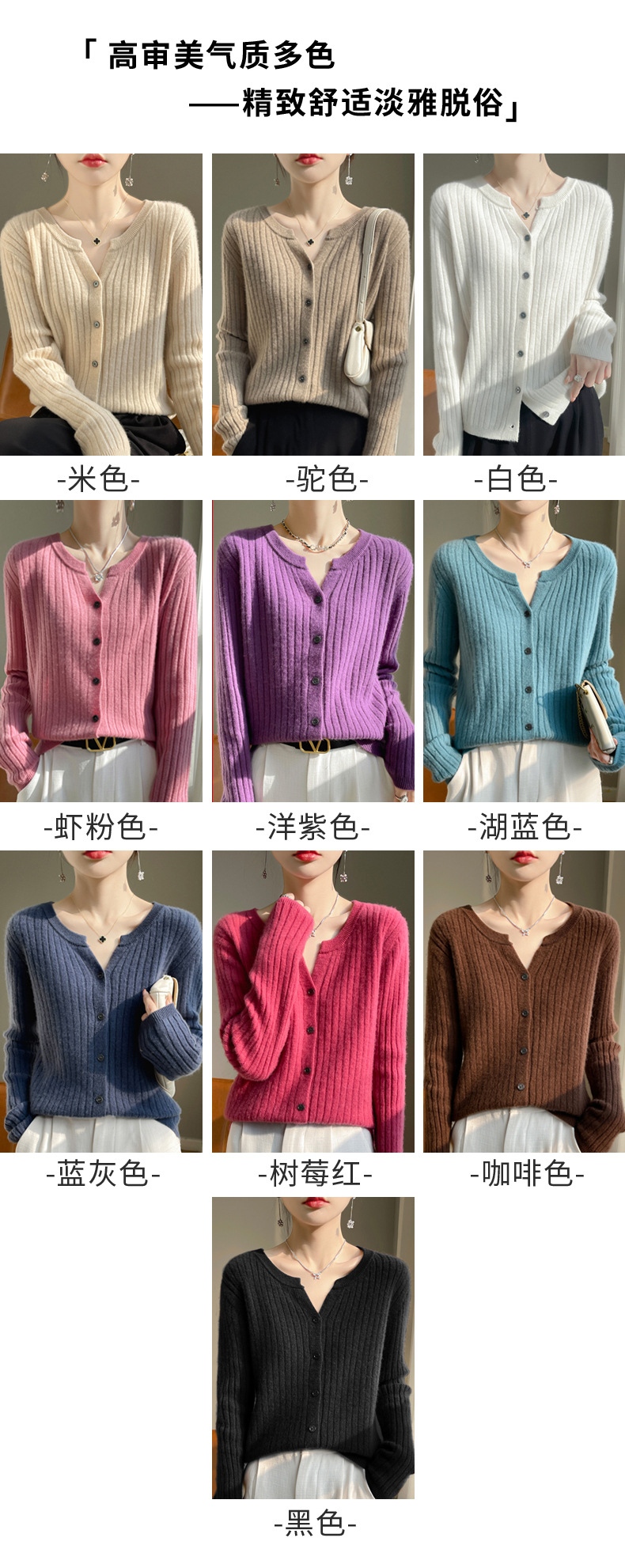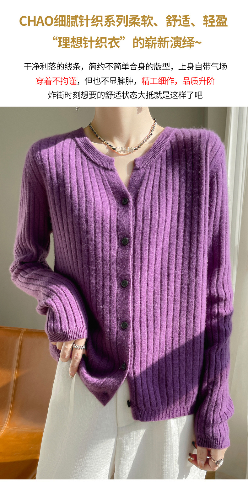 秋季针织衫长袖开衫 韩版气质圆领开衫毛衣外套