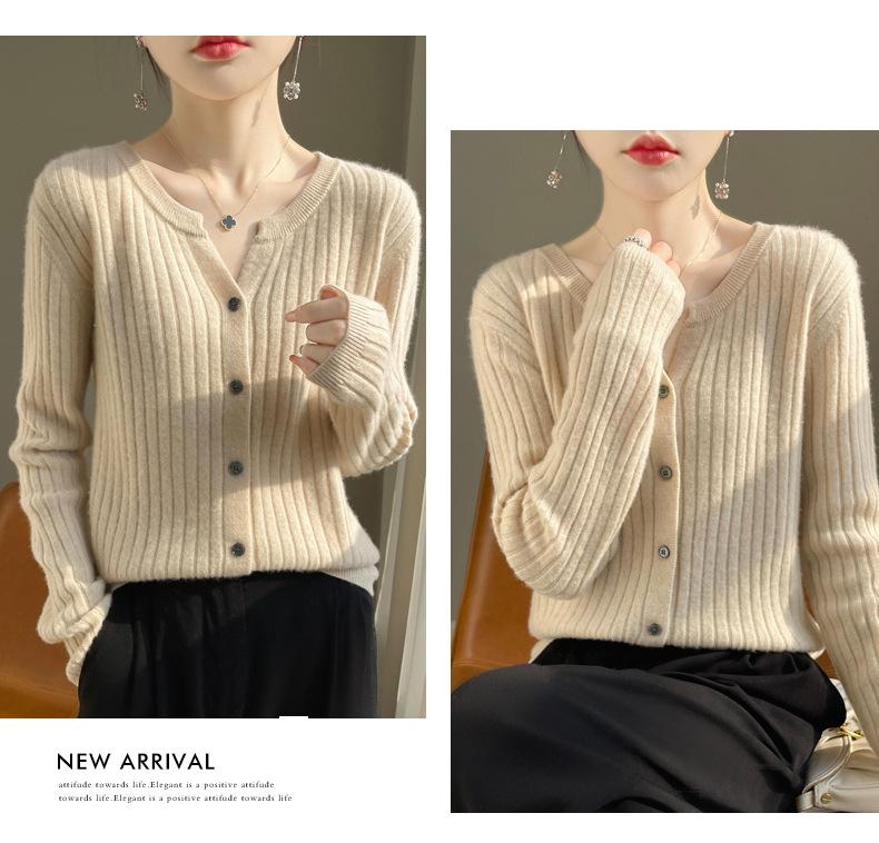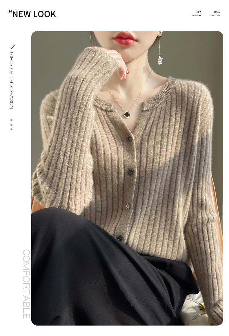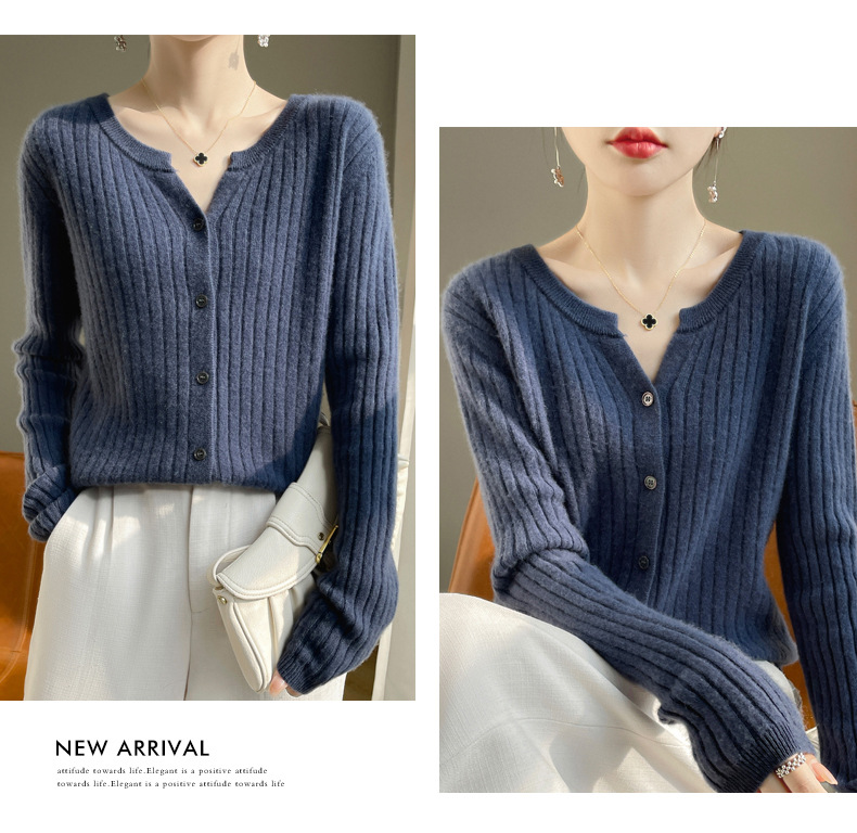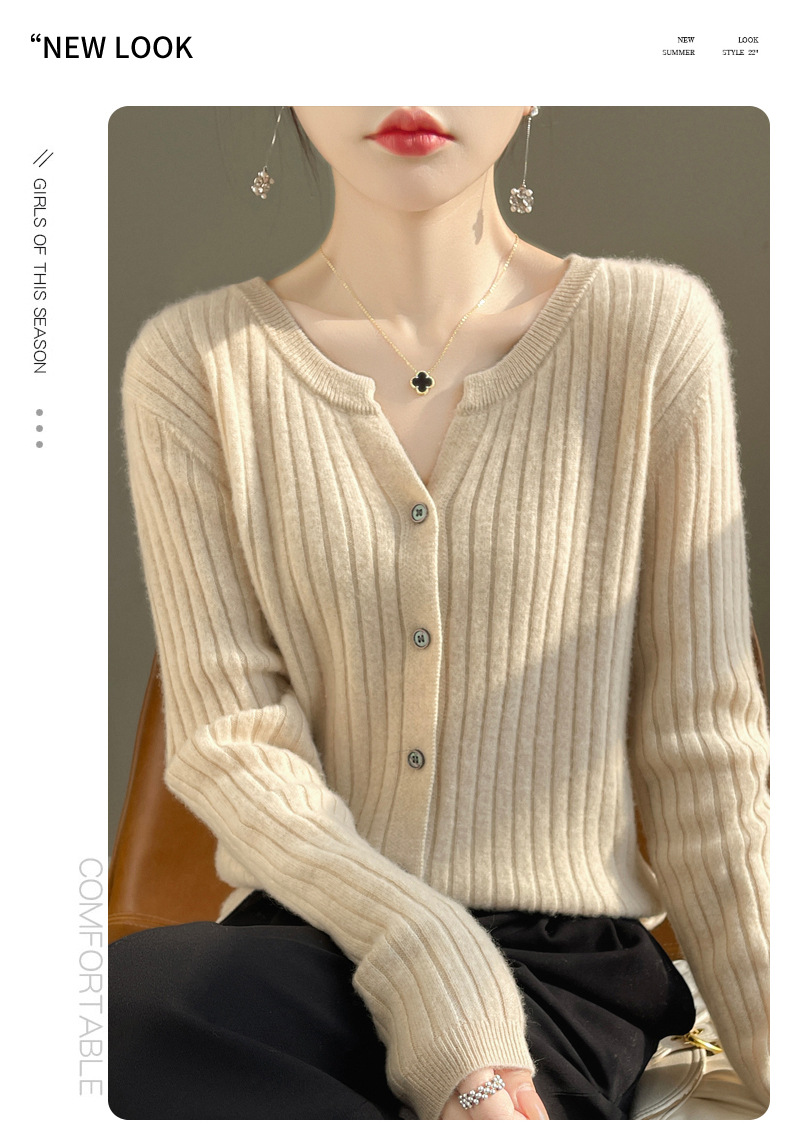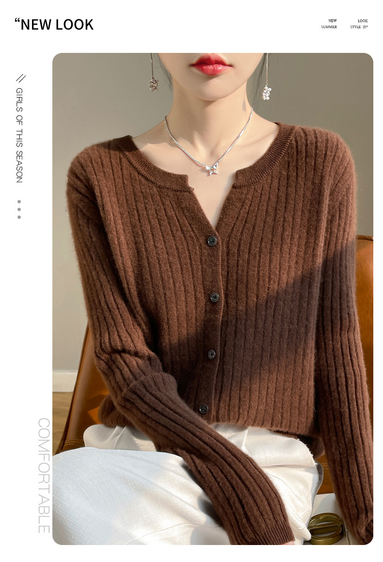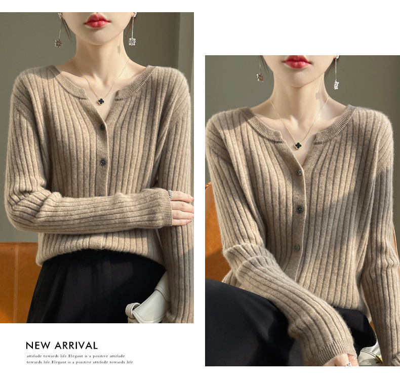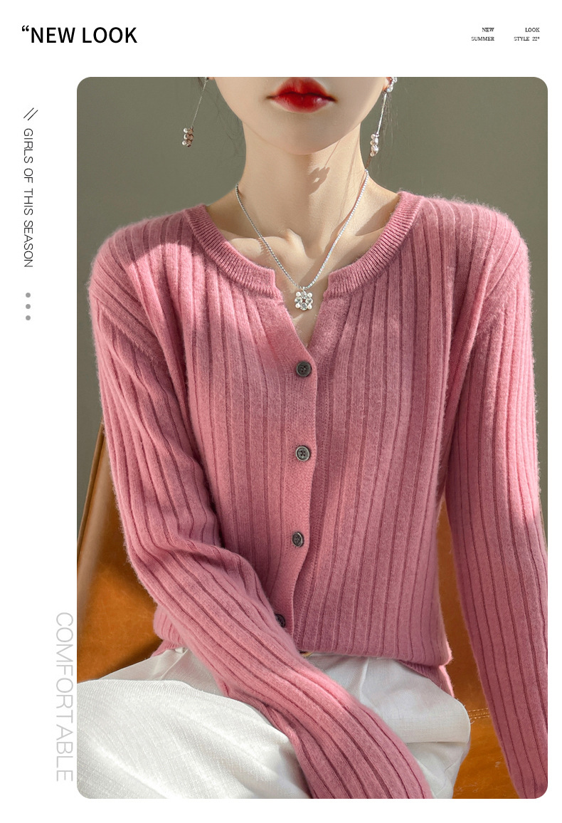 秋季针织衫长袖开衫 韩版气质圆领开衫毛衣外套