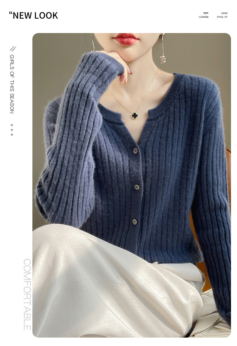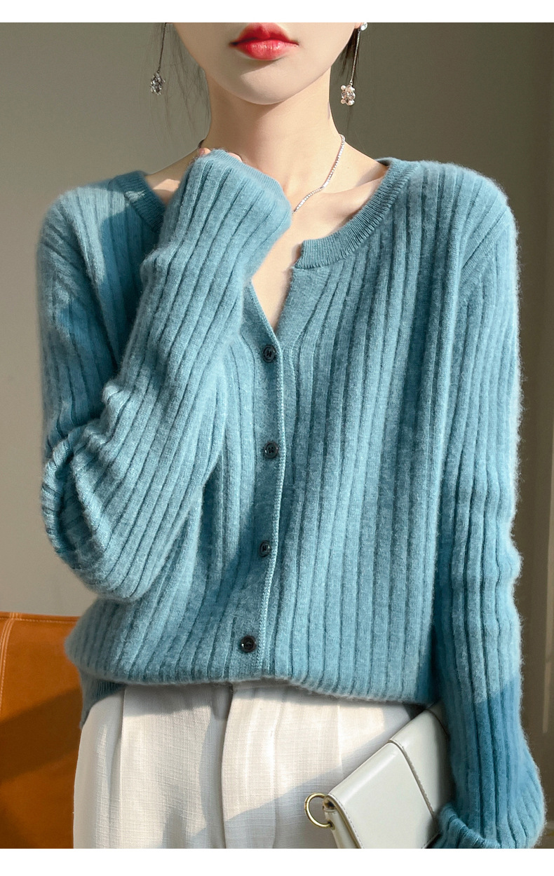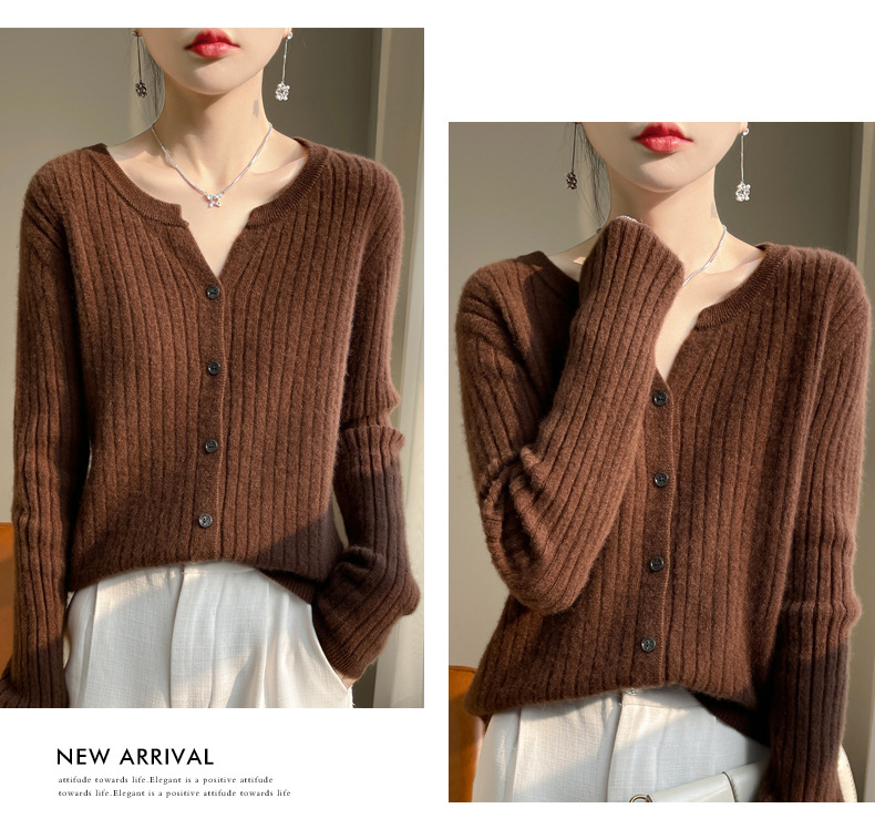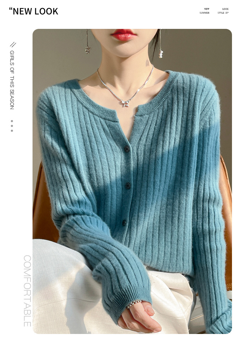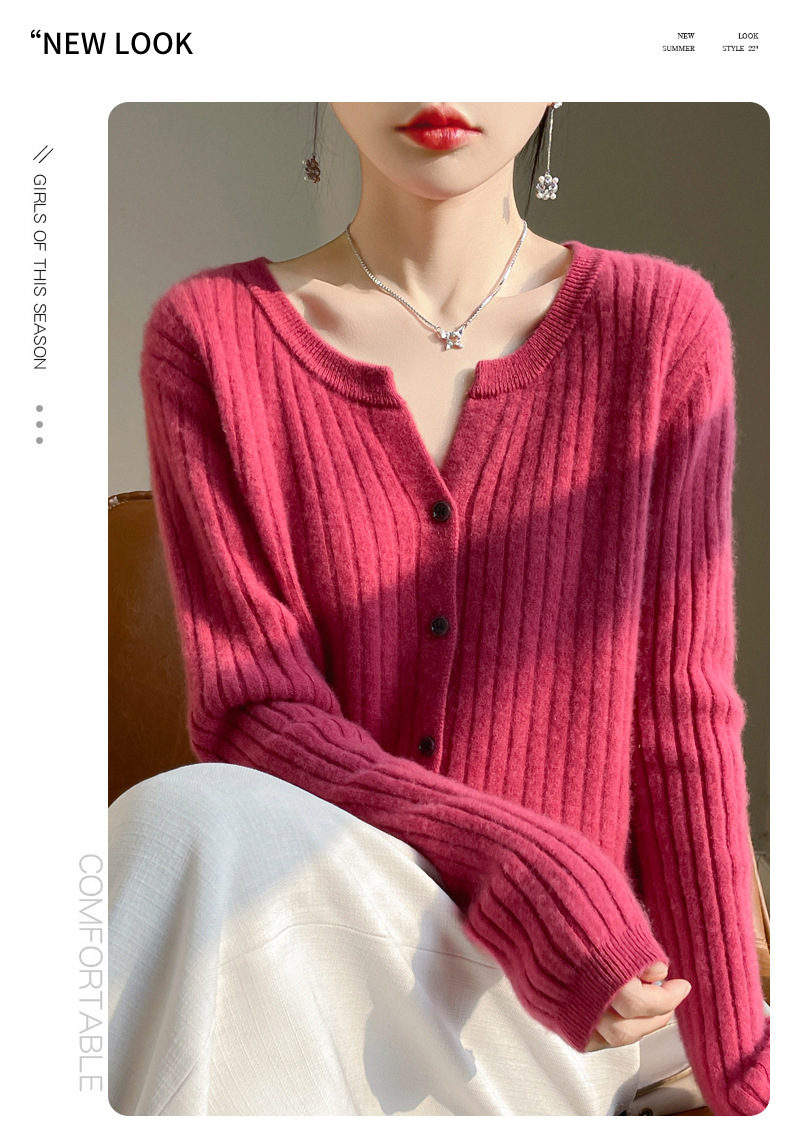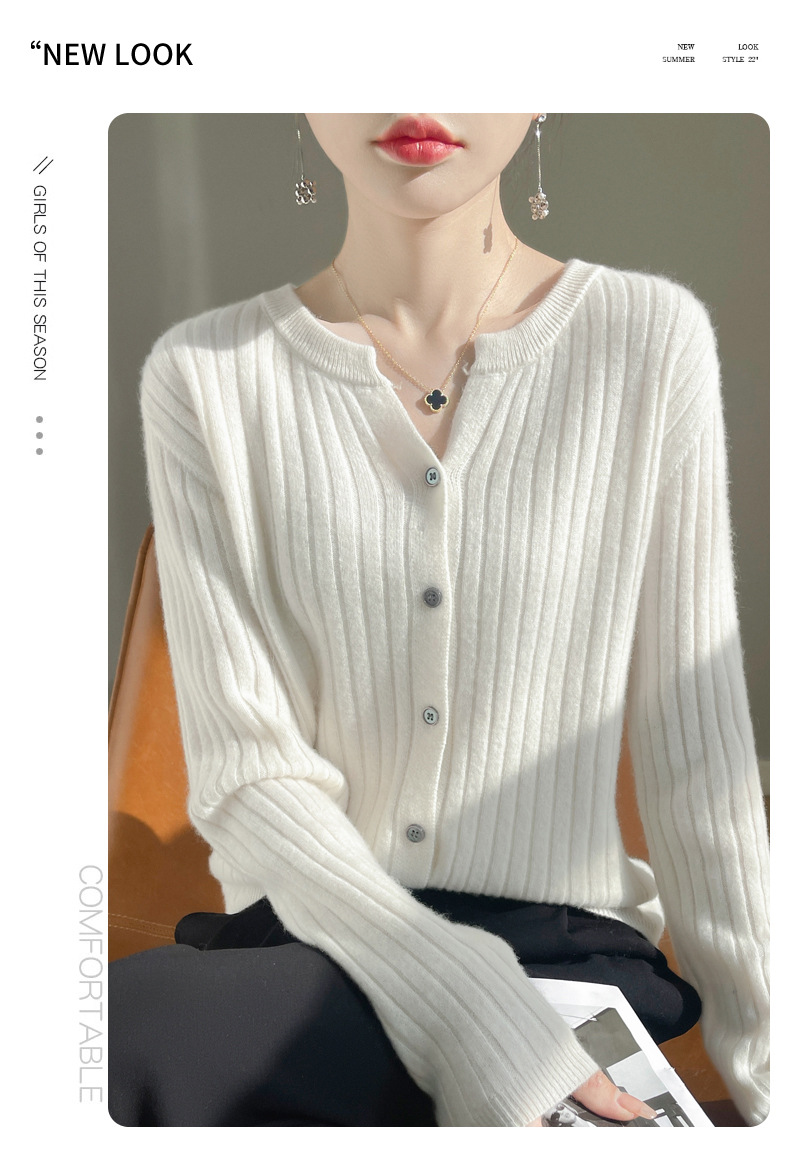 秋季针织衫长袖开衫 韩版气质圆领开衫毛衣外套