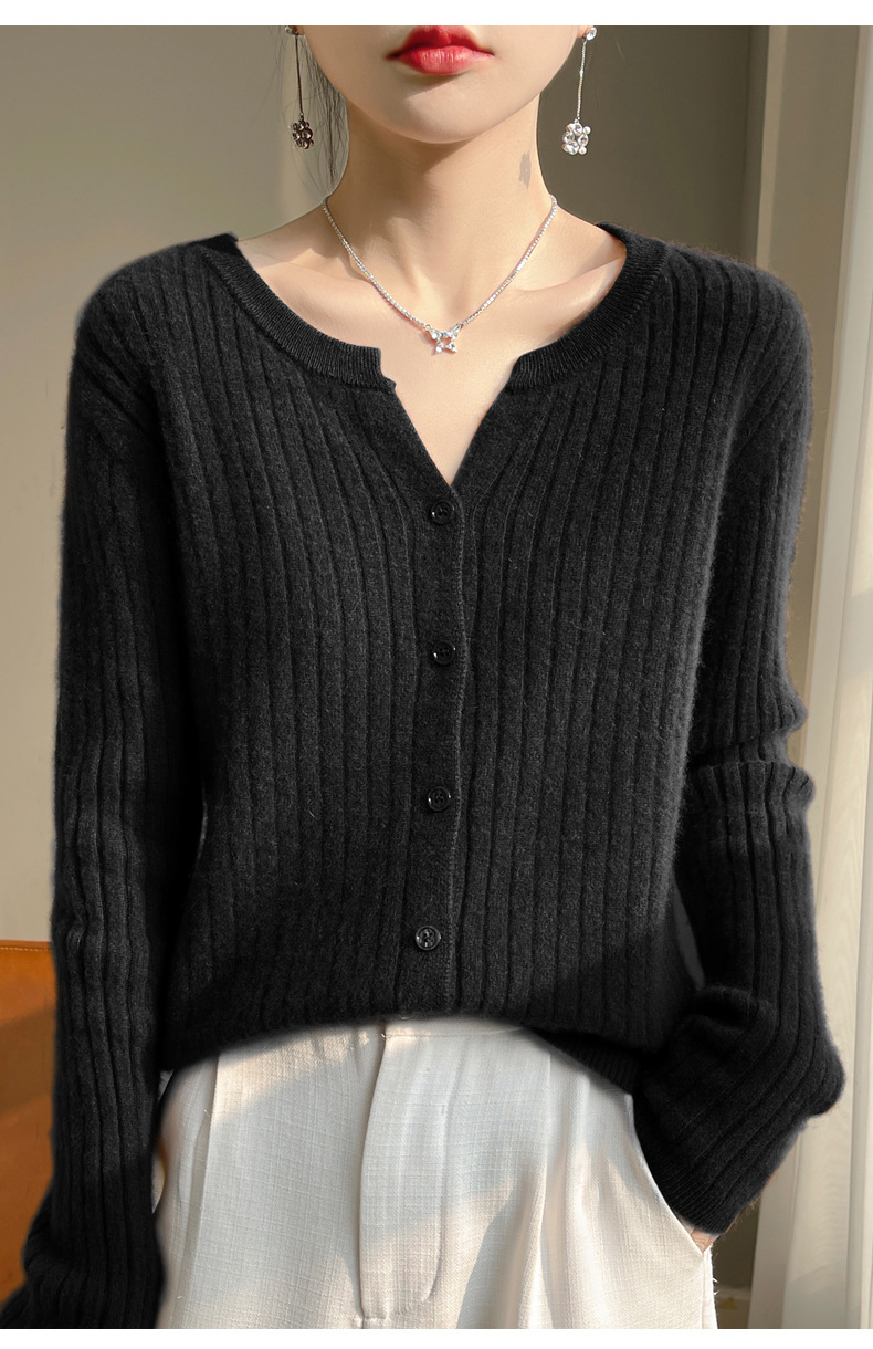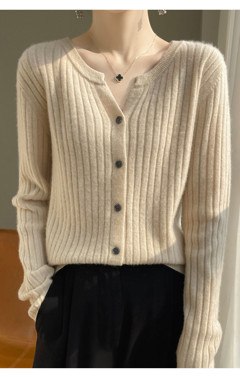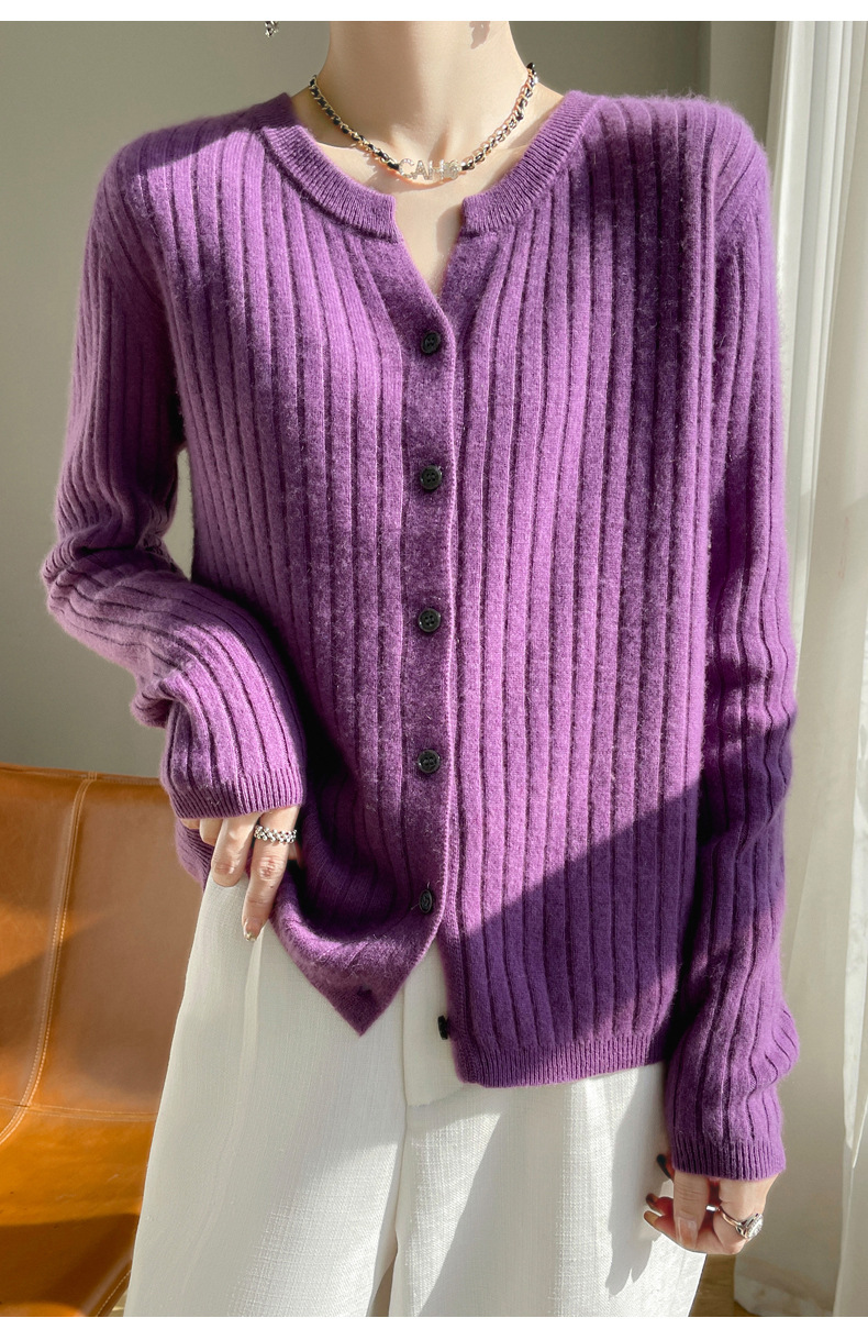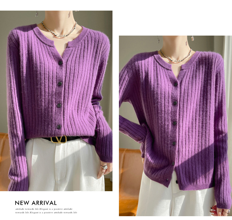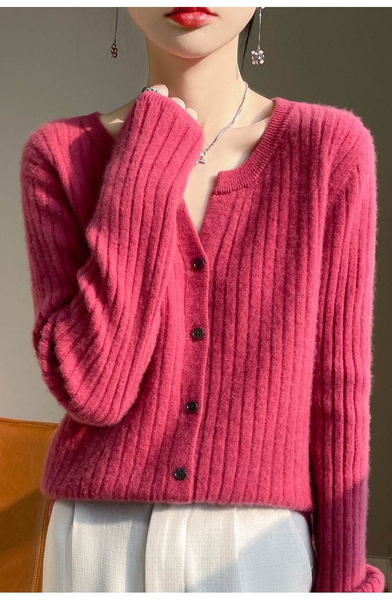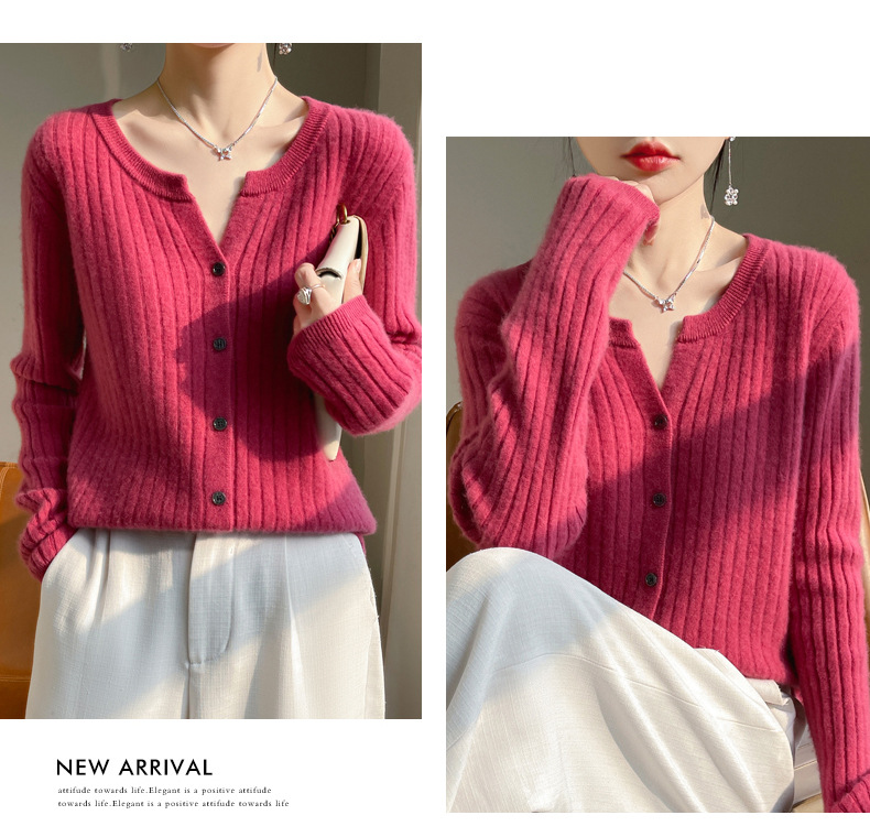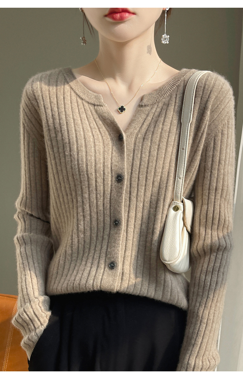 秋季针织衫长袖开衫 韩版气质圆领开衫毛衣外套